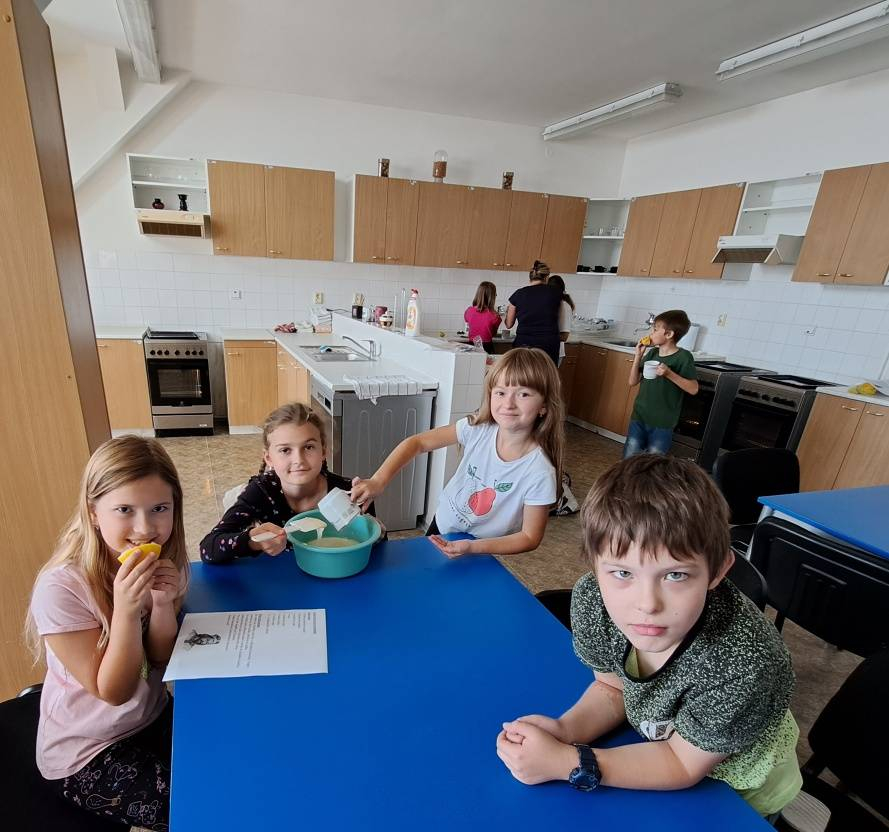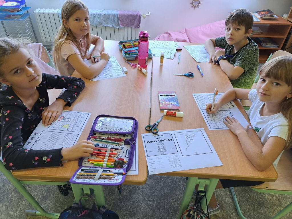V úvodu nás čekalo vyprávění o životě sv. Václava, během kterého jsme si vytvořili zápich. Následovalo čtení textu, které nám sloužilo k utříbení informací. Využily jsme je při skládání puzzle s příběhem. Pracovali jsme ve třech týmech. Dalším úkolem bylo rozpracovat si některé pracovní listy z FLIPBOOKU. Po přestávce jsme se přesunuli do kuchyňky, kde nás čekalo pečení. Každá skupina dostala pracovní postup na výrobu SVATOVÁCLAVSKÝCH HROMÁDEK. Žáci si podle receptu vytvořili těsto a naplnili košíčky. Během pečení jsme pokračovali v práci na FLIPBOOKU. Upečené hromádky ozdobili šlehačkou, nastrouhanou čokoládou a přidali zápich. Všichni si moc pochutnali.