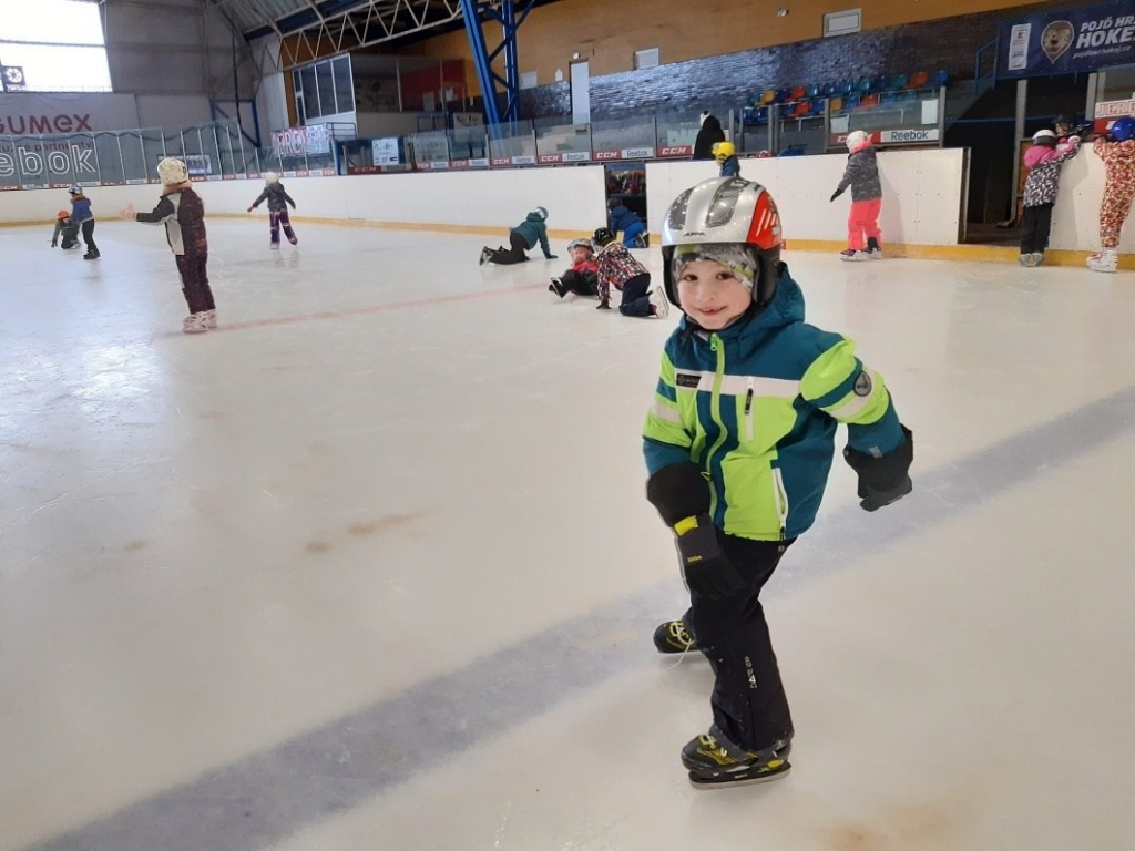 Ve čtvrtek 13. 1. 2022 jsme se podruhé vydali na zimní stadion v Rosicích. Tentokrát už jsme na led vjížděli bez obav, náramně se nám dařilo a bruslení pro nás bylo velkou zábavou. Jsme trošku leštiči ledu, hadi, pejsci, plavci :-), ale někteří šviští už jako draci. Nakonec jsme všichni zvládli alespoň základní klouzavý pohyb vpřed, a tak jsme se začali nazývat bruslaři :-).