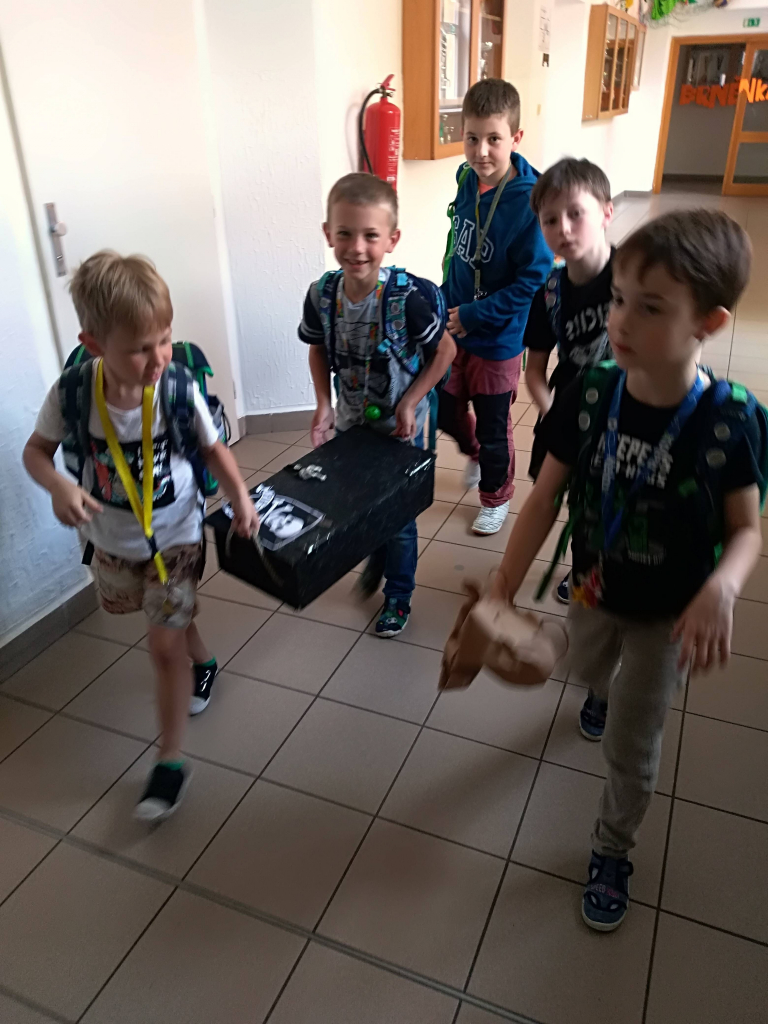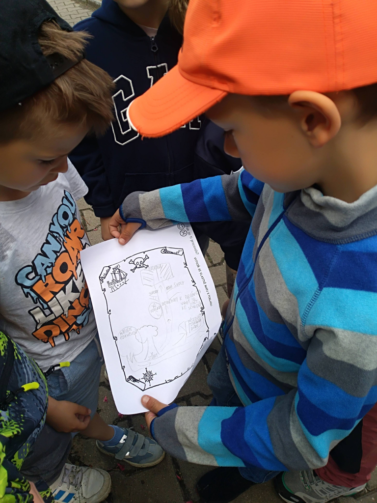 Hledání pokladu jsem nechala tentokrát v samotné režii žáků. Sami si vytvořili plán mapy s místem ukrytí pokladu (kluci dělali mapu pro holky a holky zase pro kluky), vyrobili si sami truhly na poklady. Samotné hledání pokladů bylo pro žáky velkým dobrodružstvím, dokonce si vymysleli i plnění úkolů během hledání. Děti jsou moc šikovné, schopné spolupracovat v týmech a na všem se domluvit, z čehož mám radost.