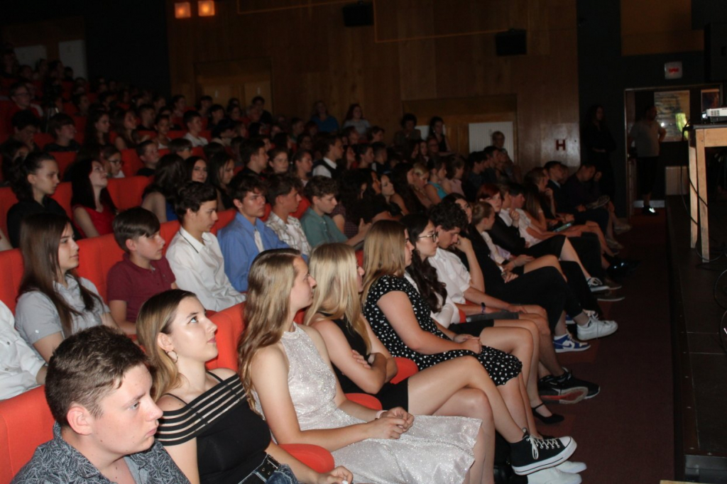 V úterý 28. 6. se v kině Réna uskutečnilo slavnostní rozloučení s žáky 9. ročníku. Celým programem provázela Taťána Doupovcová a Ondřej Penčák z IX. C.