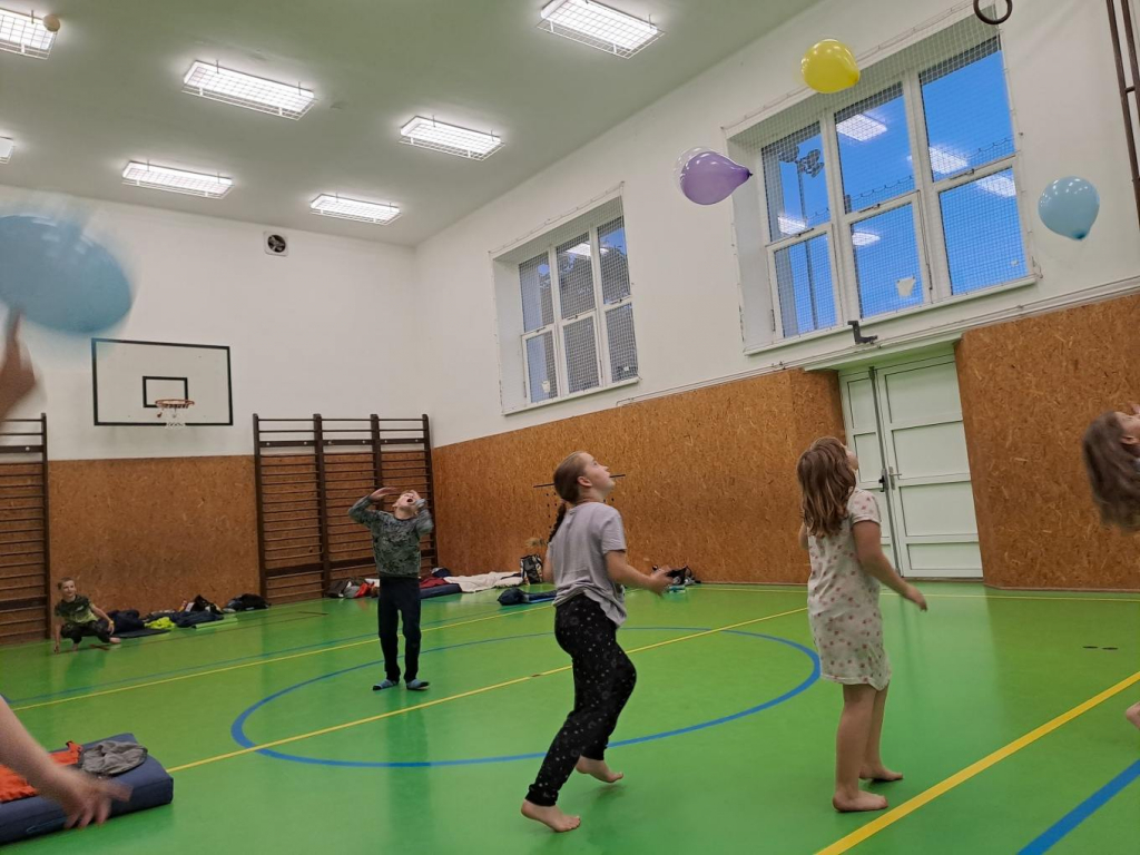 Po večerce se chlapci a děvčata zavrtali do spacáků, ale ještě nějakou dobu trvalo, než všichni usnuli. Ráno jsme společně posnídali, uklidili družinu a tělocvičnu a po 9 hodině se děti rozcházely domů.