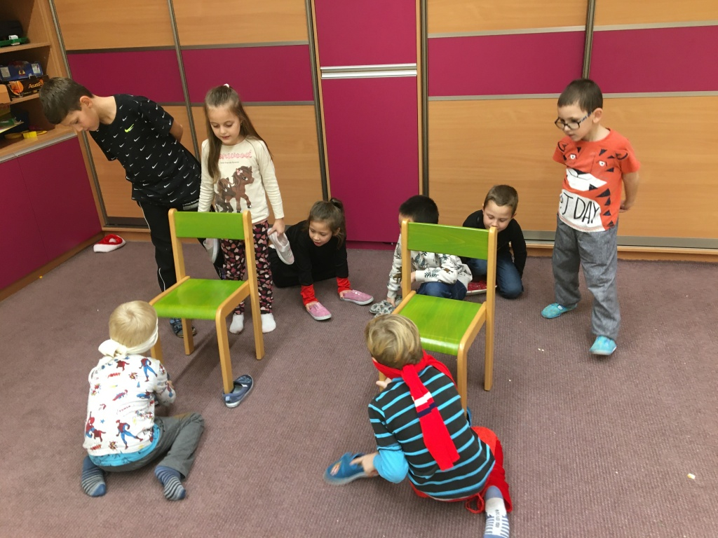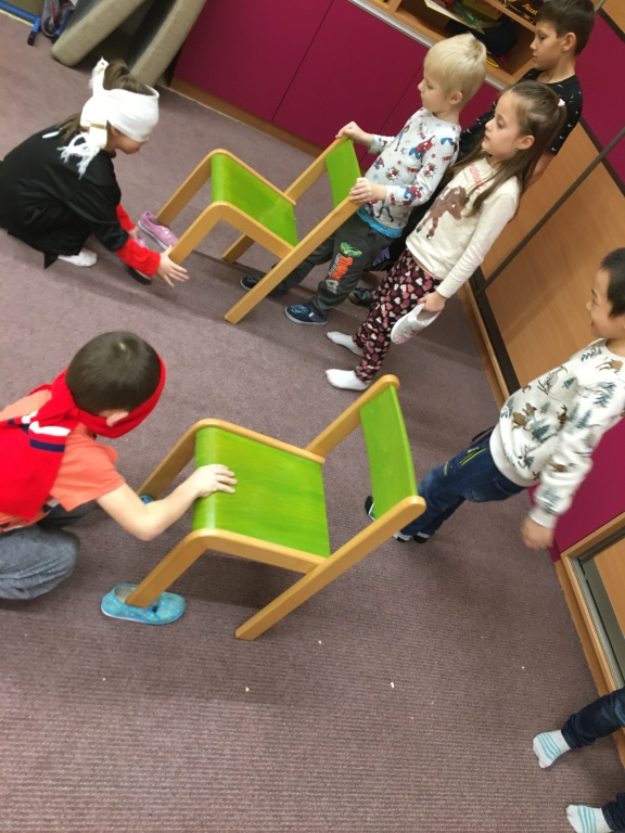 Na chodbě na ně čekala stezka plná úkolů, kterou děti plnily spolu dětmi z oddělení Delfínů.