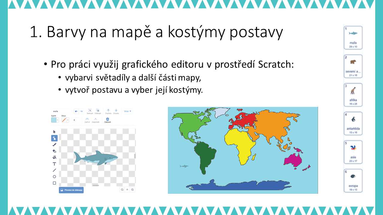 • do scény si vlož obrázek mapy světa - mapa vybarvená nebo mapa nevybarvená