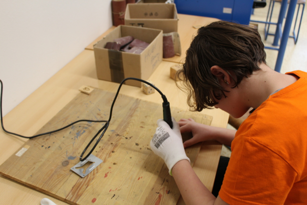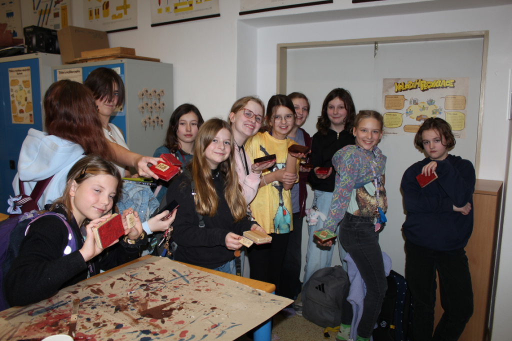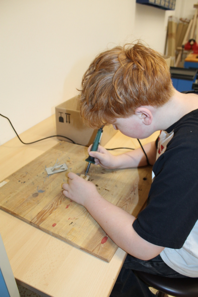 Ještě před Vánocemi stihla většina žáků vyrobit několik hracích kostek různých velikostí nebo dřevěnou klíčenku, do níž si mohli pájedlem vypálit vlastní motiv.
