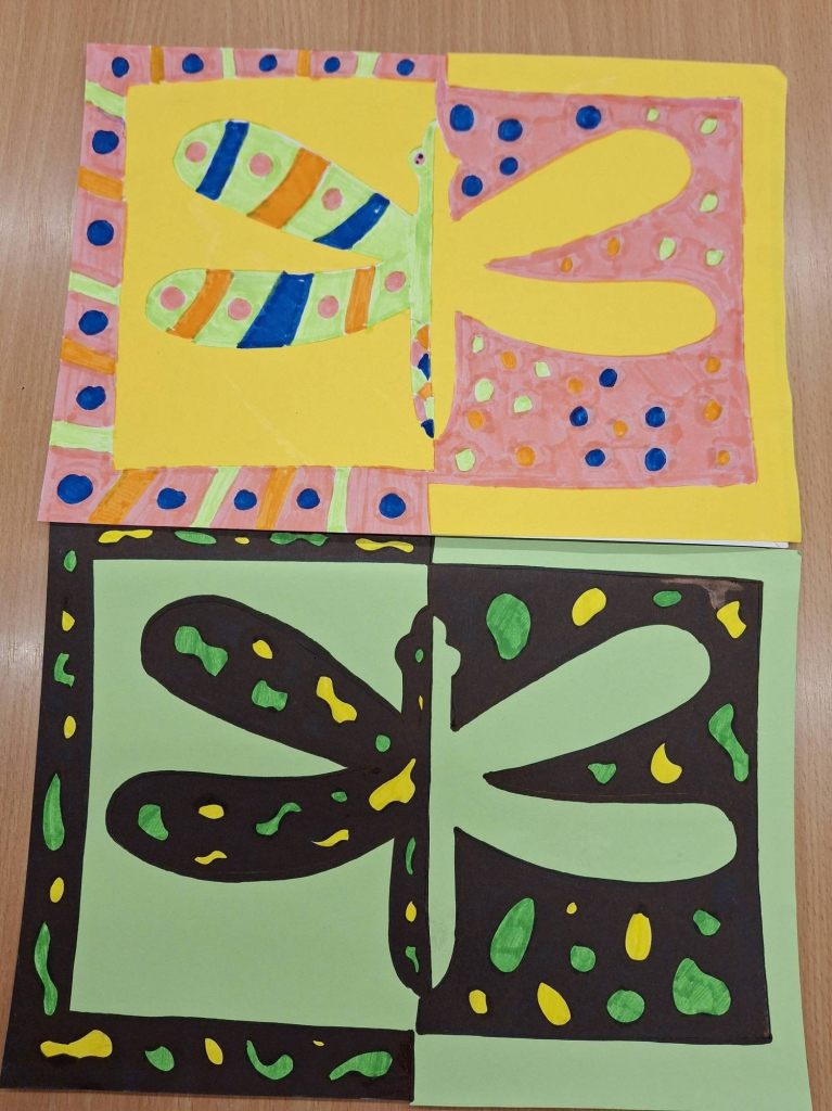 Projekt „Hmyz“ byl nejen výtvarnou aktivitou, ale také cestou k objevování krásy a rozmanitosti přírody. Děti si vyzkoušely experimentovat, upevnily i své vědomosti z matematiky o osové souměrnosti.