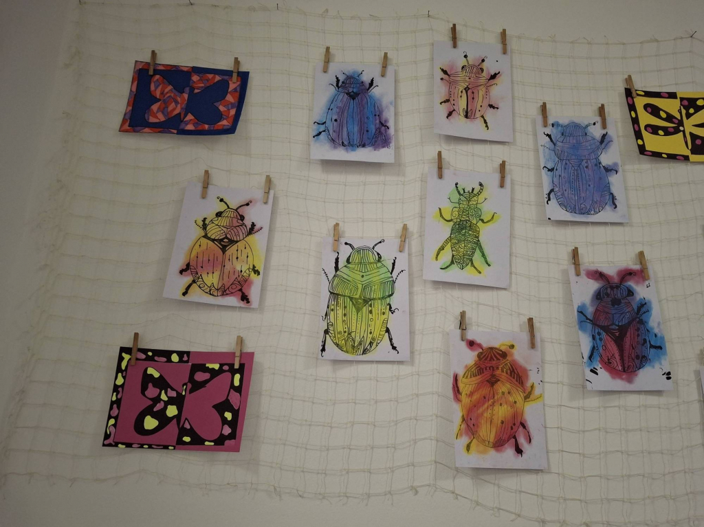Žáci 4. A se během březnových hodin výtvarné výchovy ponořili do fascinujícího světa hmyzu. Téma zpracovali dvěma odlišnými výtvarnými postupy – technikou pozitiv–negativ a kresbou tuší, následně jemně vystínovanou suchým pastelem. Obě techniky umožnily dětem nejen rozvíjet kreativitu, ale také se blíže seznámit se zástupci hmyzu.