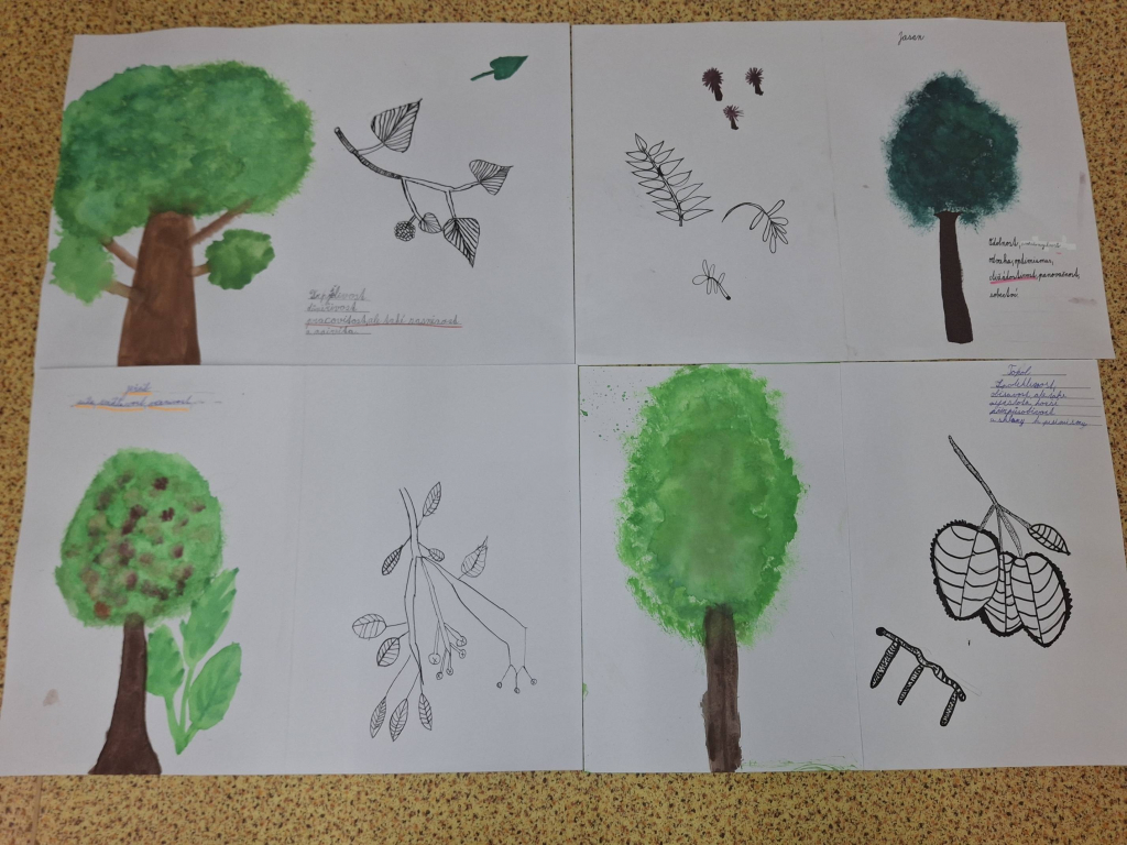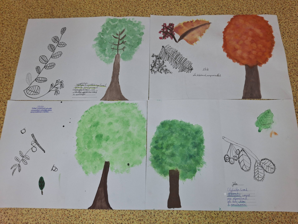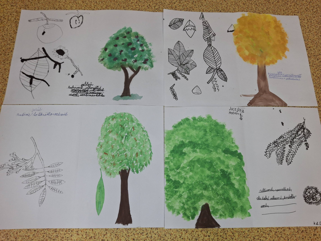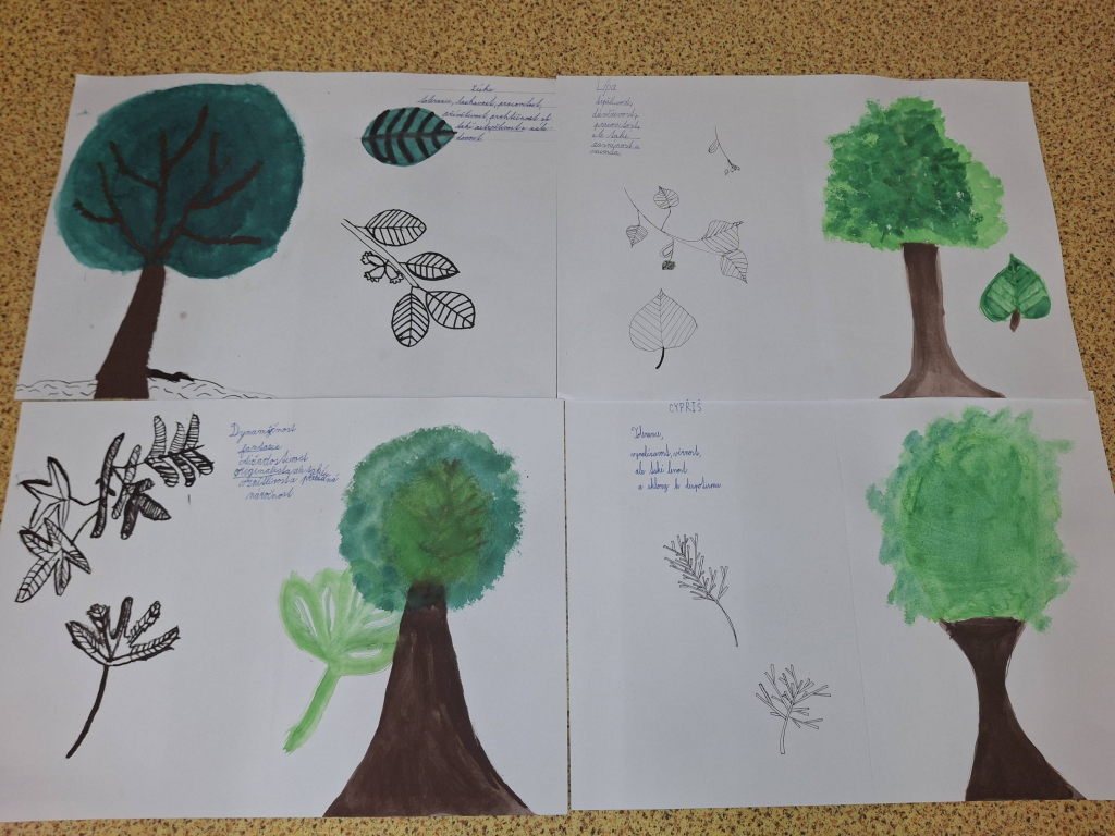 Prvním bylo malování korun stromů, kde žáci pracovali s barvami a tvary. Snažili se vystihnout charakter vybraného stromu. Druhým úkolem byla kresba plodu a listu tuší. Vyžadovala pečlivé pozorování detailů a jemnou práci s linií.