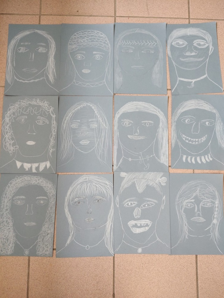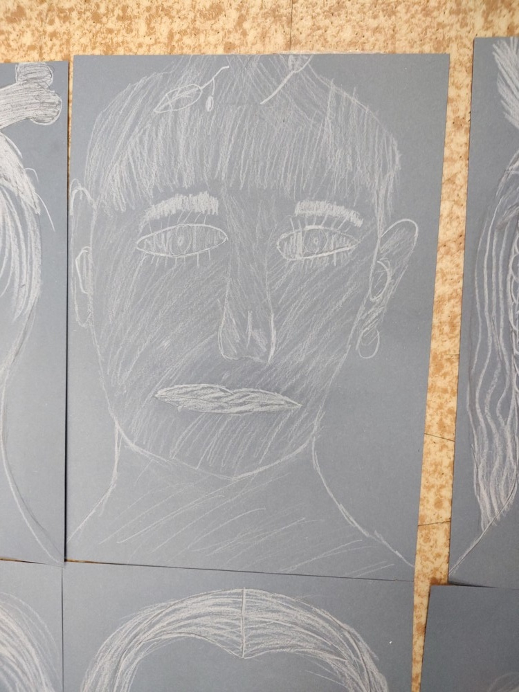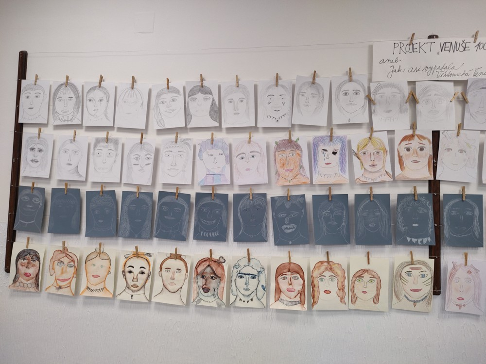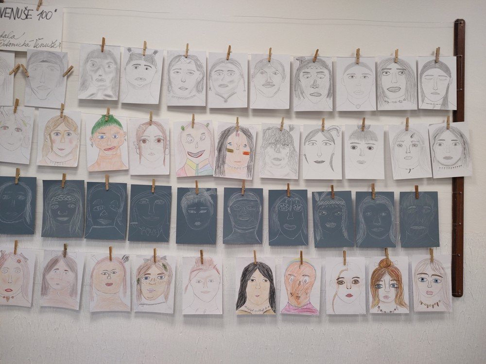 V každém ročníku tak vznikla přehlídka portrétů, přičemž každý ročník měl k dispozici jinou výtvarnou techniku: šesťáci kreslili pastelkami, sedmáci dostali jen jednu - bílou, osmáci experimentovali s akvarelovými fixami a deváťáci pracovali s obyčejnou tužkou.
