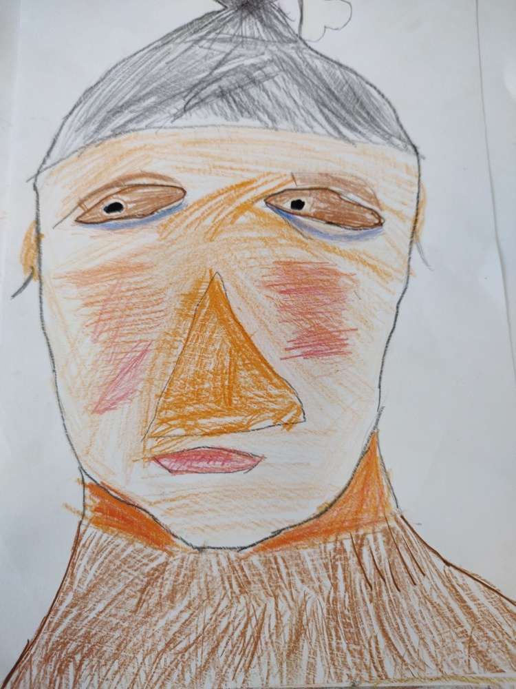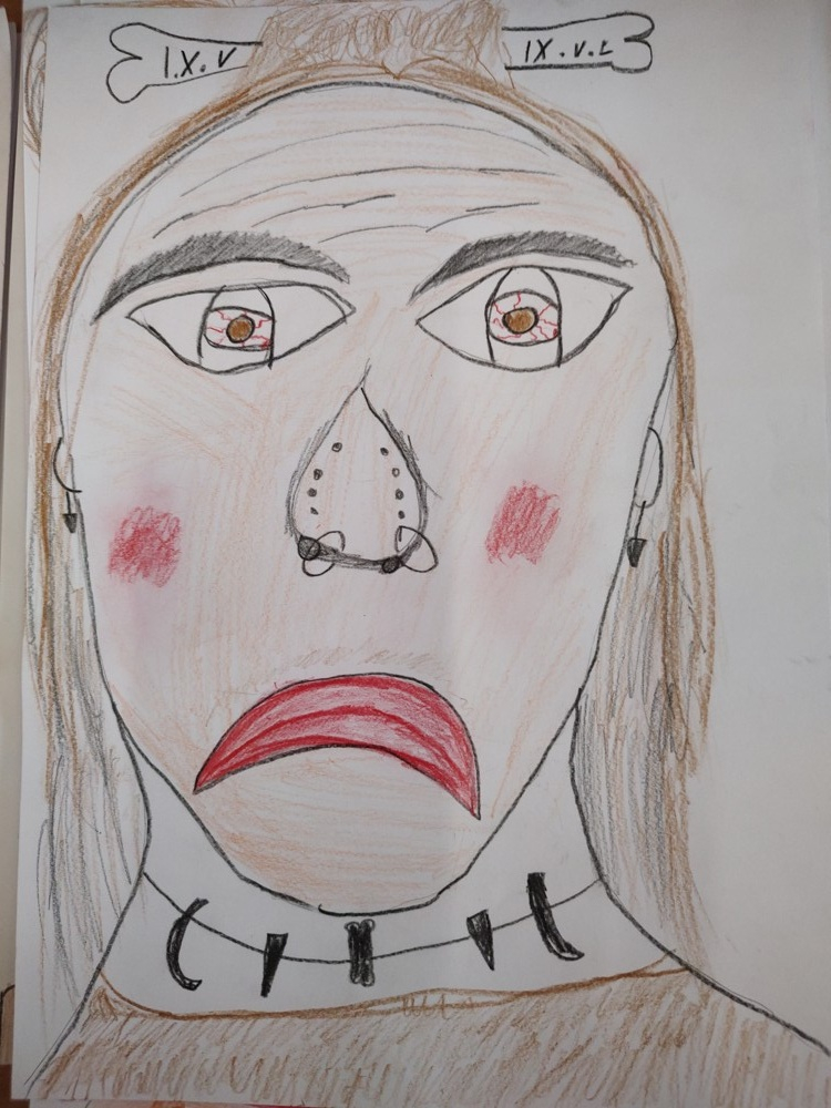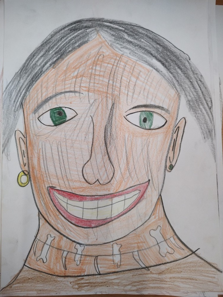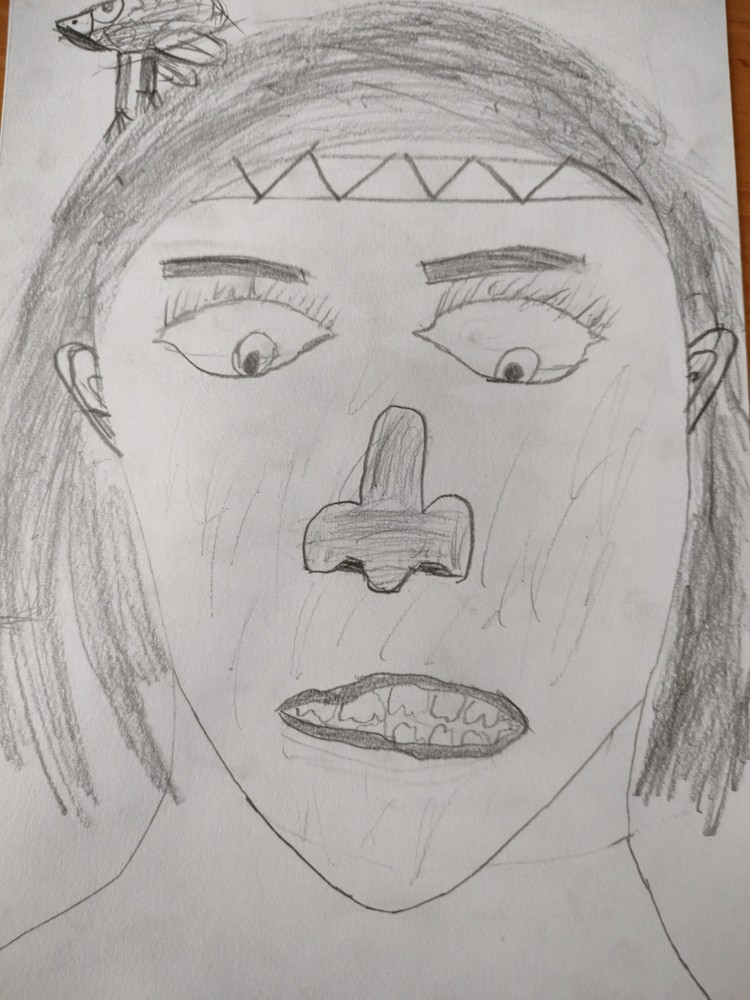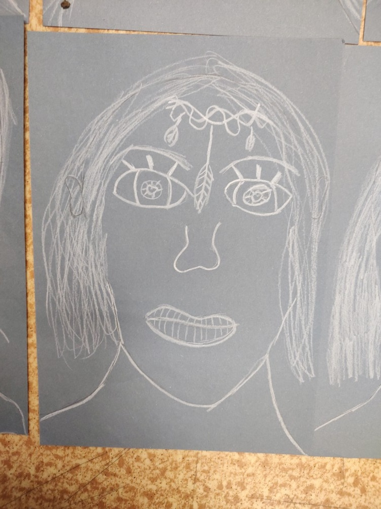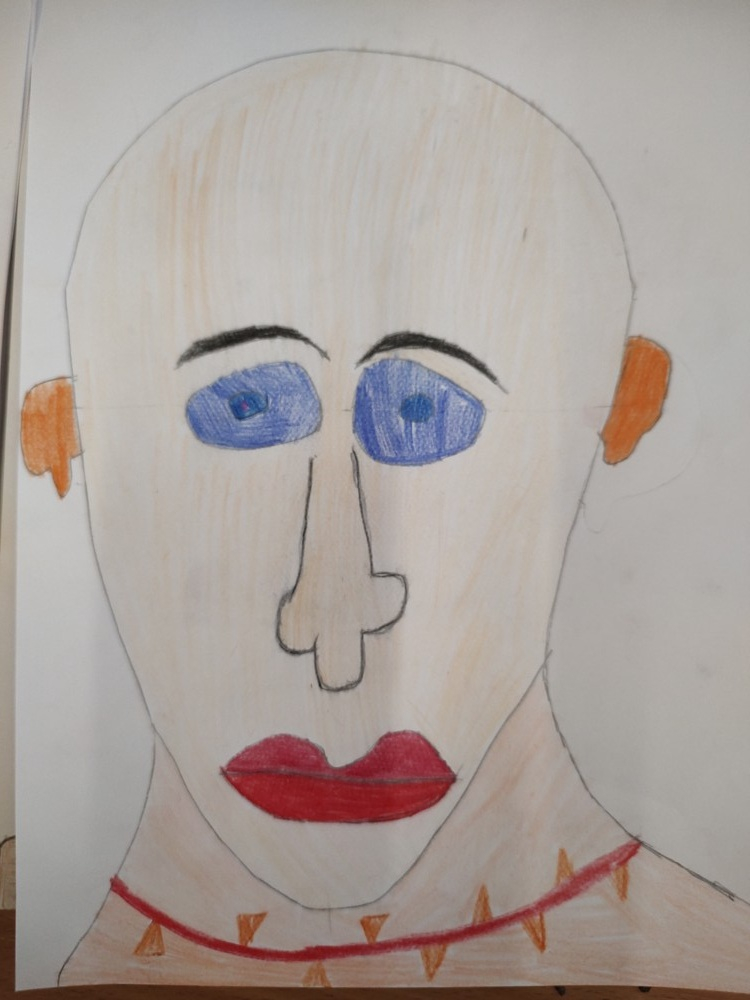 A protože se jedná o neběžnou událost, připomněli jsme si ji i v hodinách výtvarné výchovy ve všech ročnících 2. stupně. Přemýšleli jsme o tom, proč a jak vznikla, zkoumali jsme zvětšené fotografie sošky, abychom zjistili, jak přesně vypadá. A zjistili jsme, že soška vlastně nemá obličej.