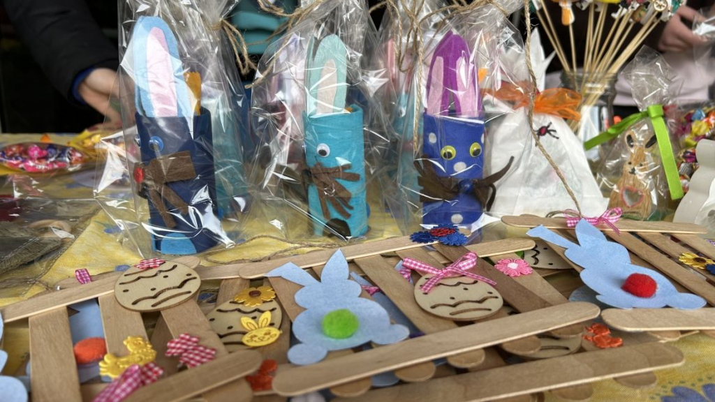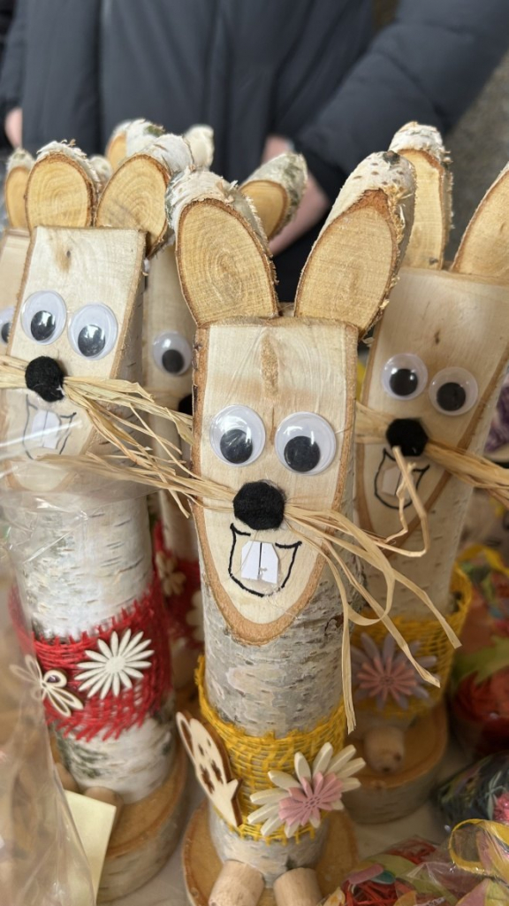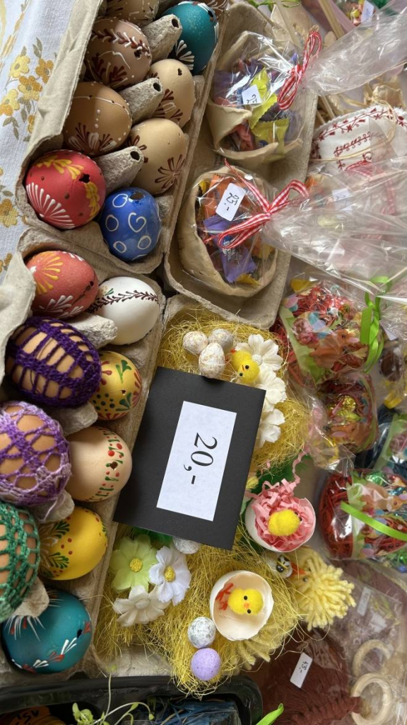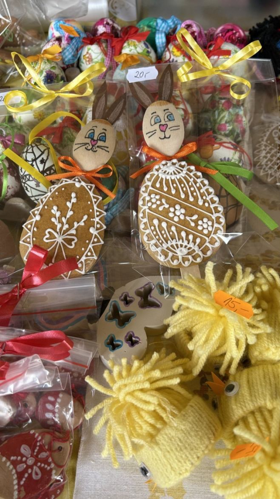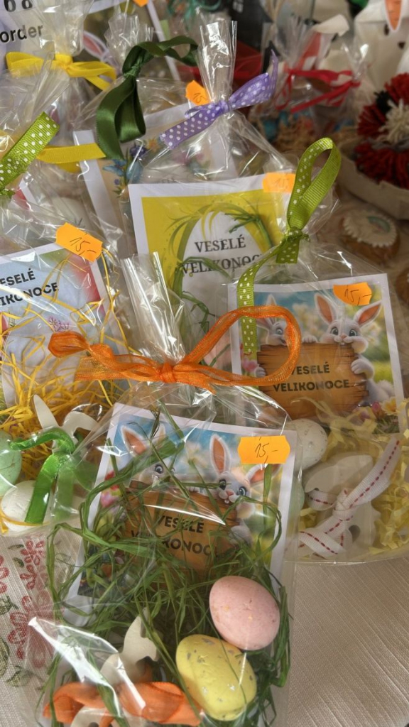 Na stáncích se prodávaly výrobky žáků, učitelů i rodičů. K zakoupení byly různé jarní dekorace a zápichy, perníčky, sušenky, štěstíčka s překvapením, kraslice a jiné.