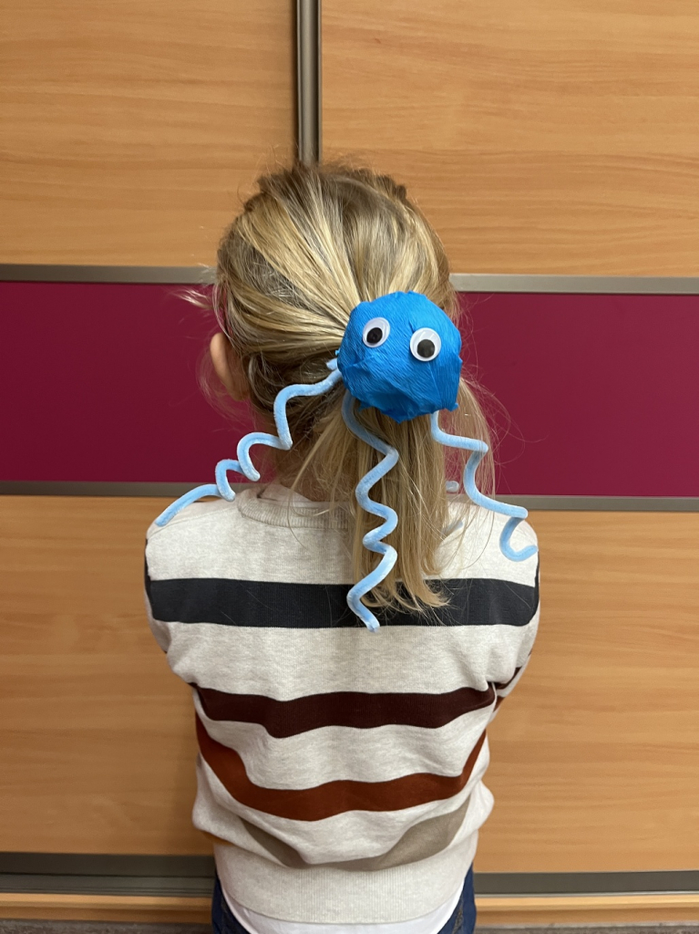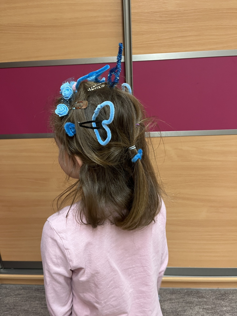 Děti si vyrobily účesy, které by rozhodně upoutaly pozornost každého. Někdo měl ve vlasech duhu, jiný dokonce plyšové zvíře, další překvapil barevnými balonky zapletenými do culíků. Objevily se také zapletené tužky a další originální tvořivosti.