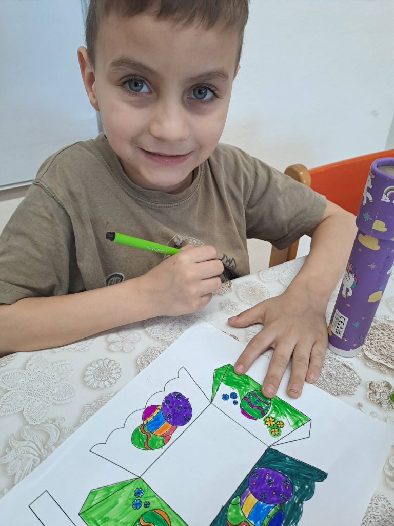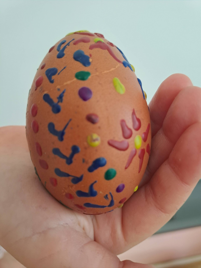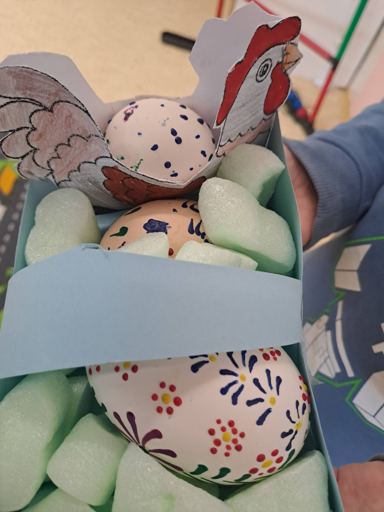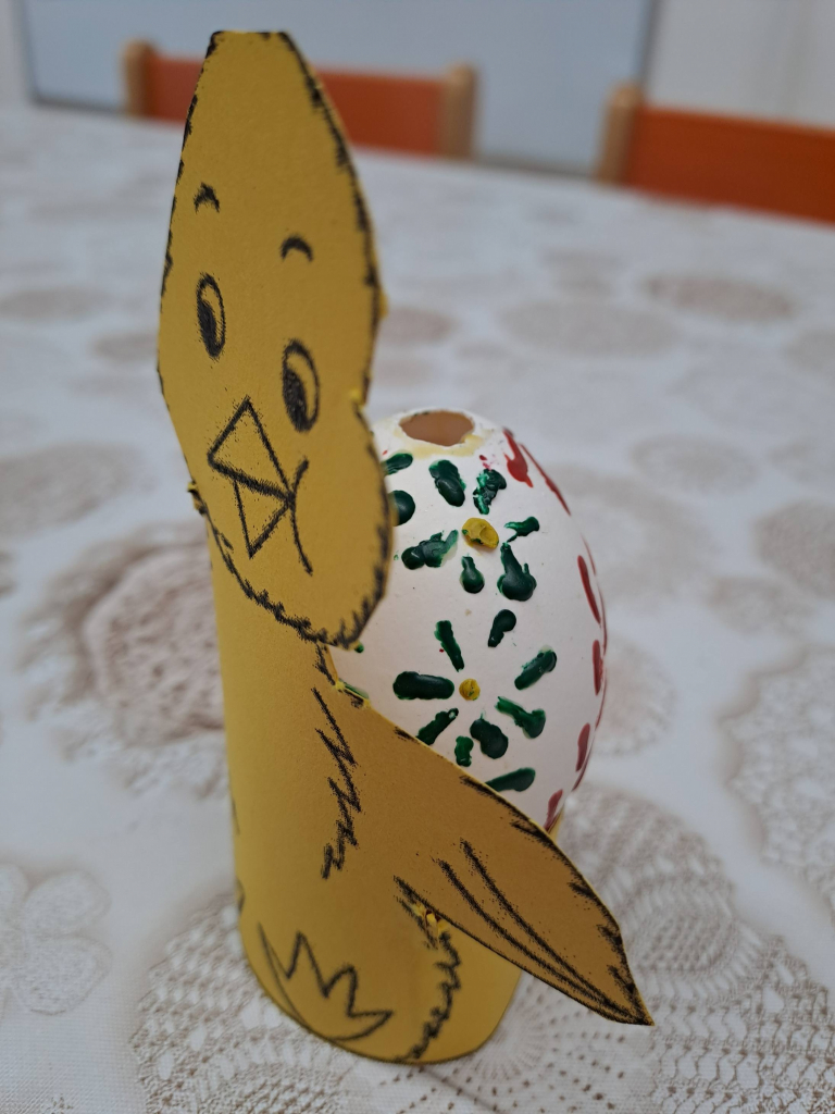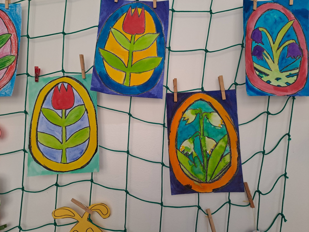 Konec března a začátek dubna jsme věnovali velikonočnímu tvoření. Děti si vyrobily originální košíčky ve tvaru zajíčků a slepiček a vyzkoušely si také tradiční malování vajíček voskem. Tato technika je velmi zaujala, práce s voskem je bavila a vznikly krásné velikonoční výrobky.