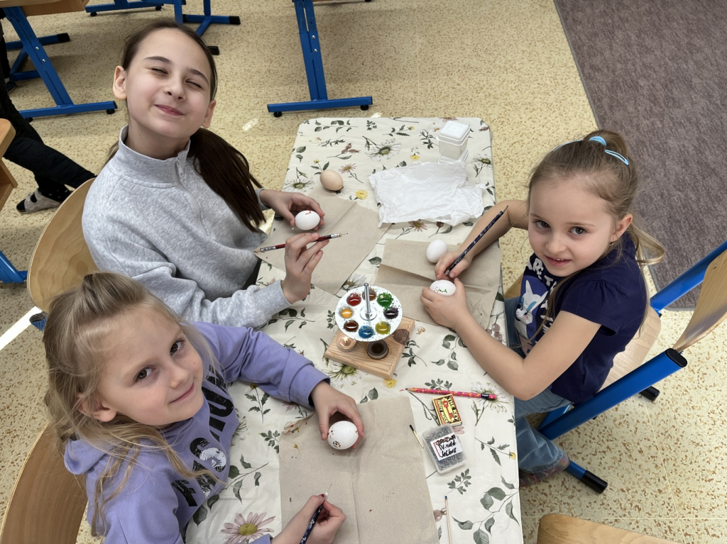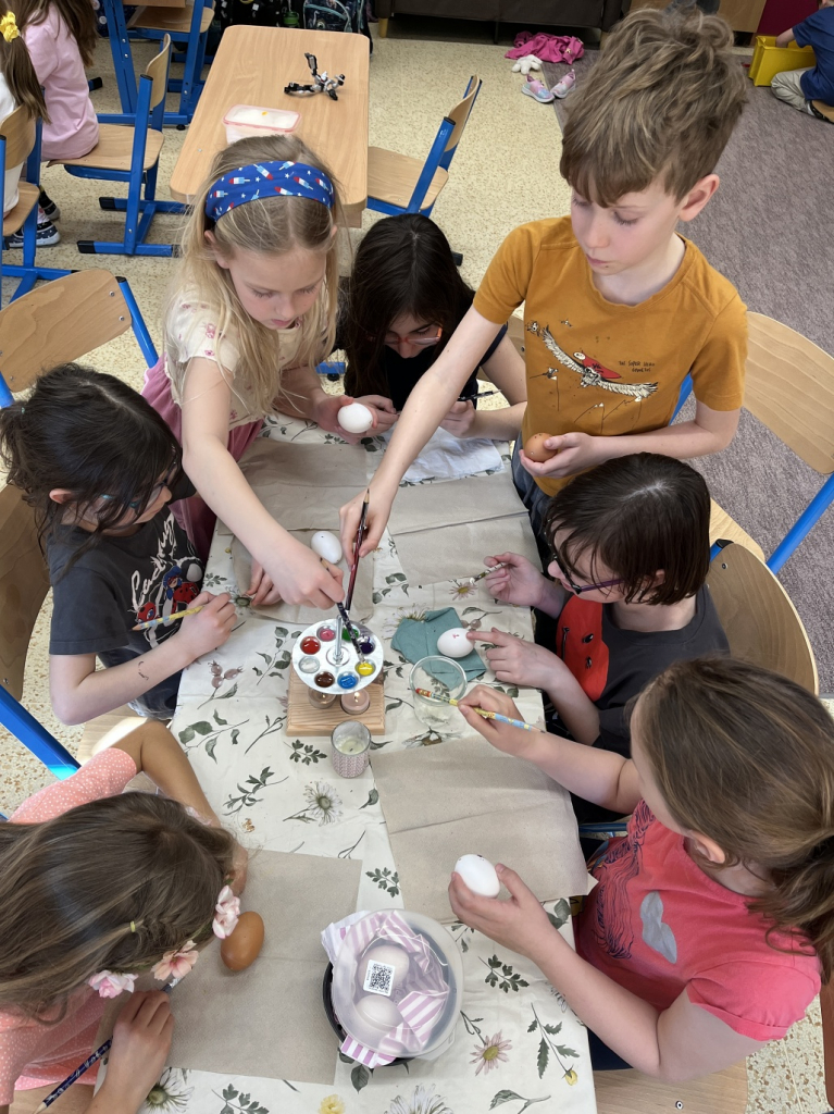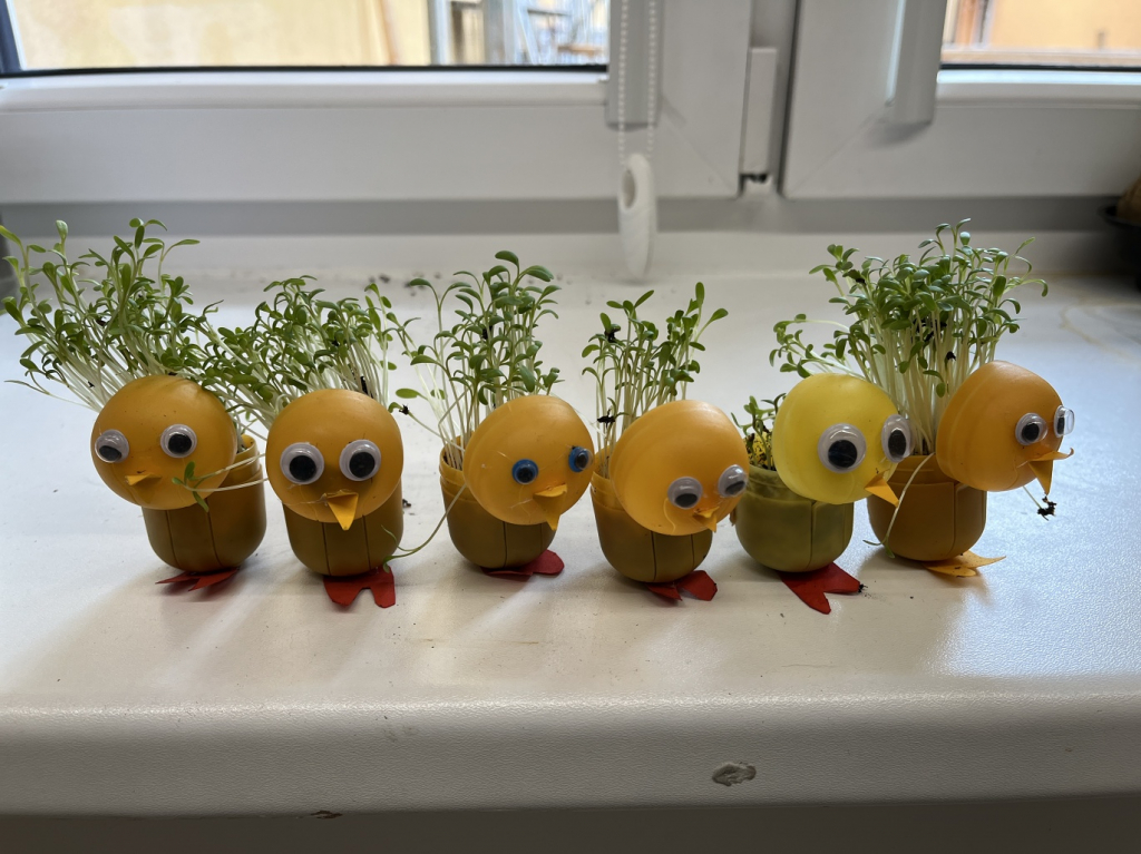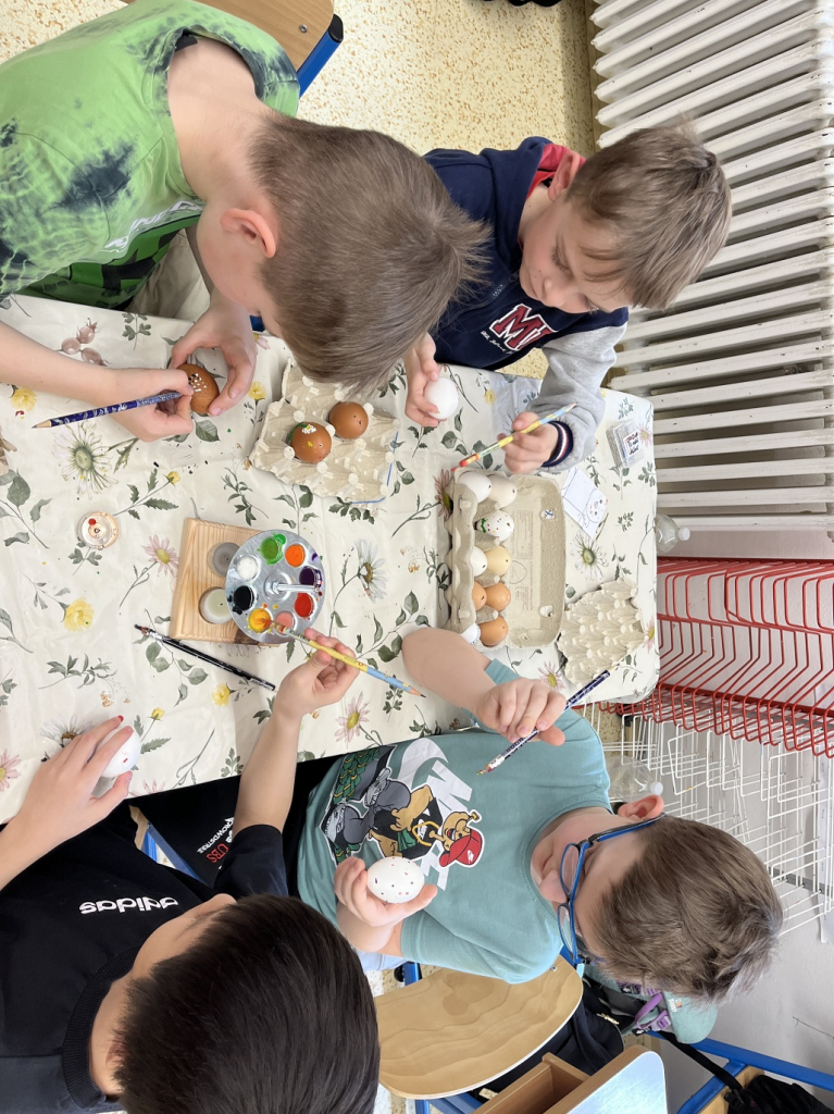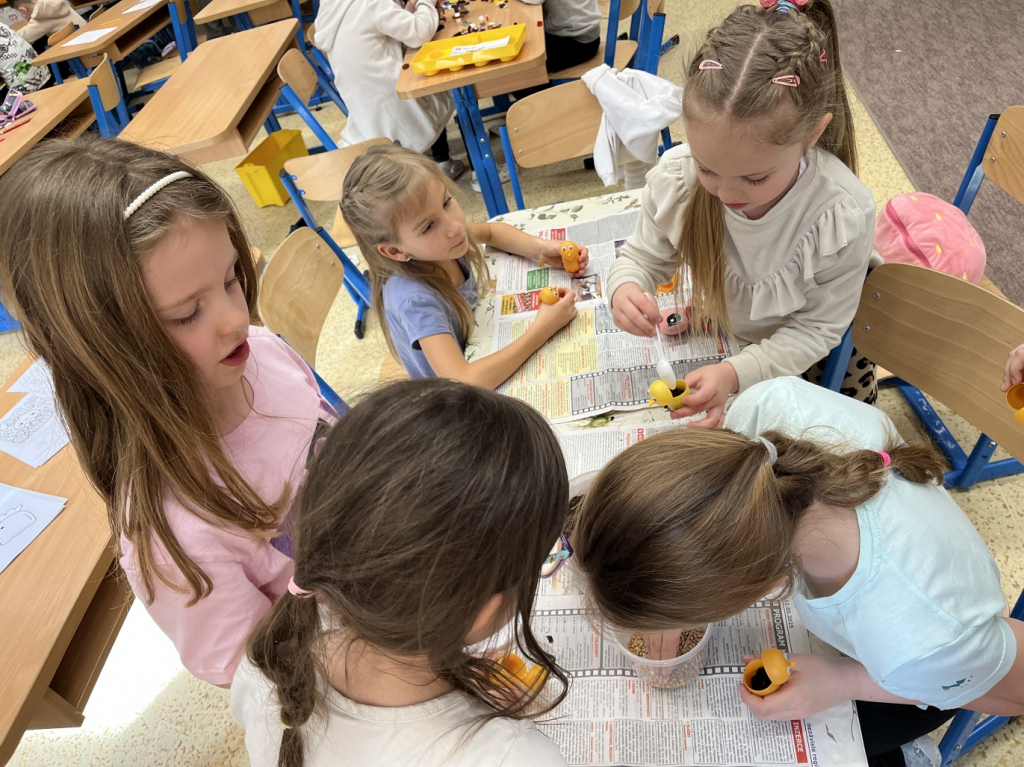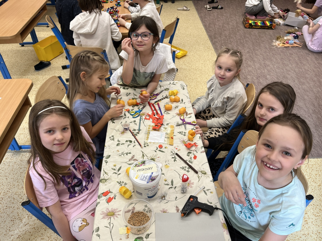 V březnu jsme v družině prožili spoustu tvořivých a veselých chvil. Děti si společně hrály a vyráběly dekorace na velikonoční jarmark i pro sebe. Vytvořily roztomilá kuřátka, panáčky s hlavami, kterým narostly vlasy z trávy, a také kuřátka z kinder vajíček. Sázeli jsme řeřichu, malovali kraslice a vyráběli košíčky na vajíčka. Nechybělo ani malování sádrových odlitků, které děti velmi bavilo. Když bylo pěkné počasí, trávili jsme čas venku na hřišti, kde si děti užily pohyb a hry na čerstvém vzduchu.