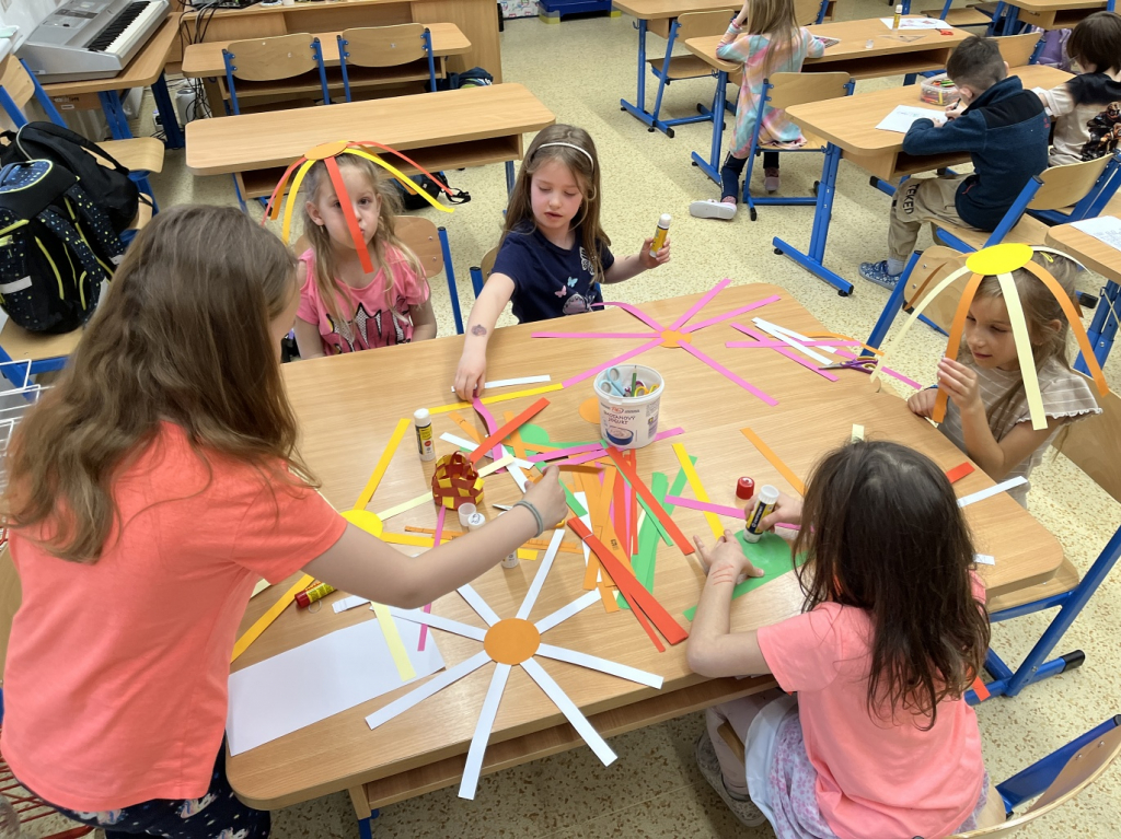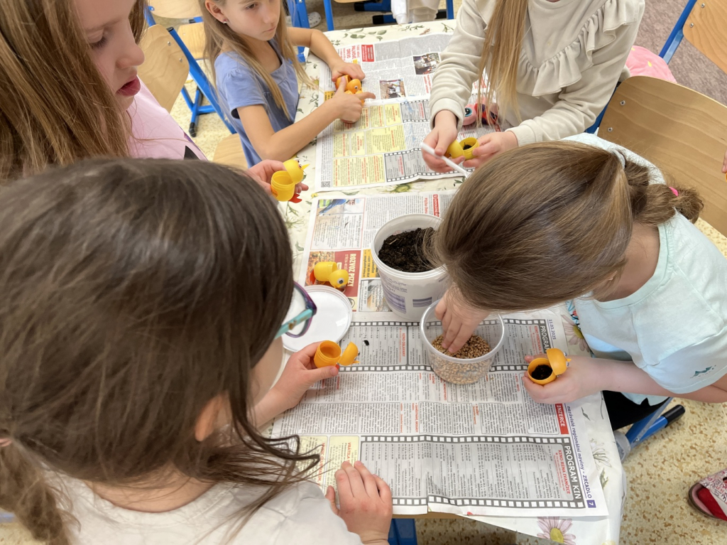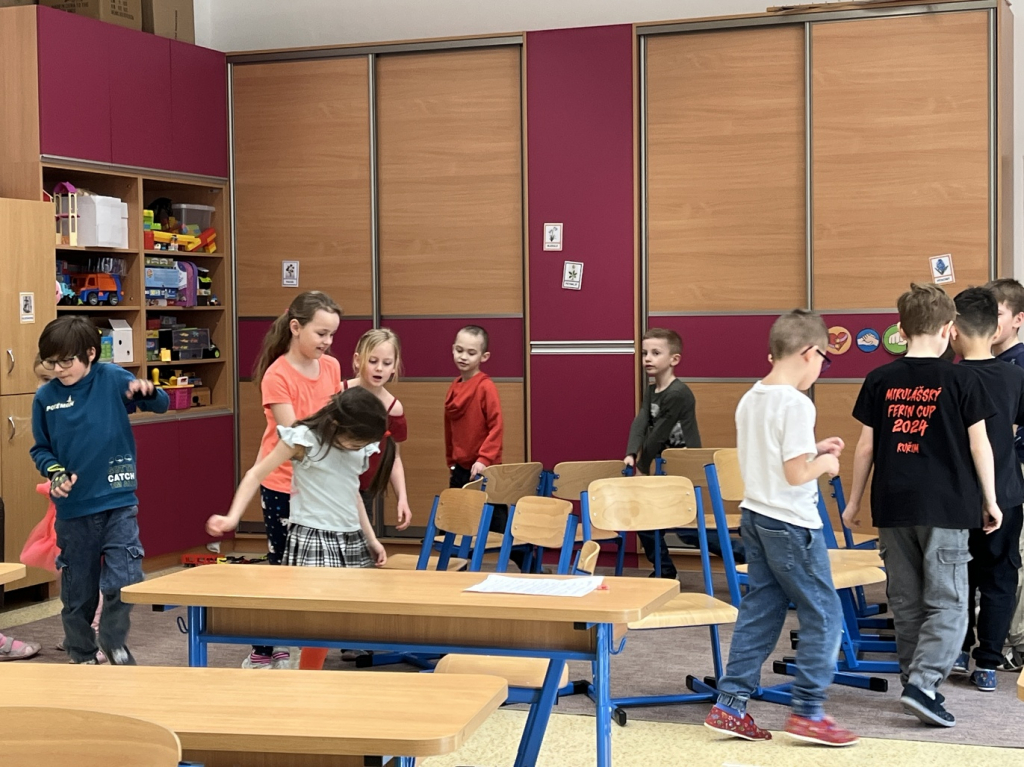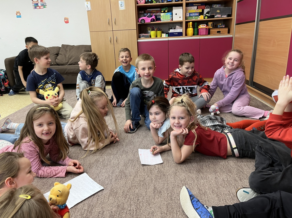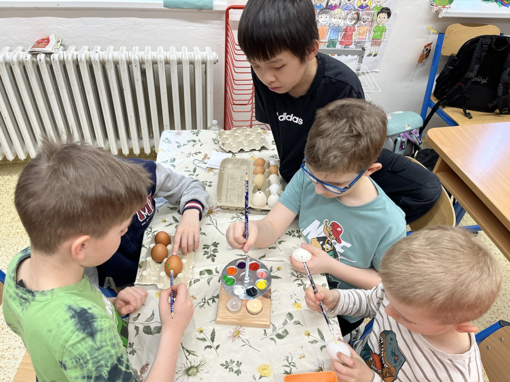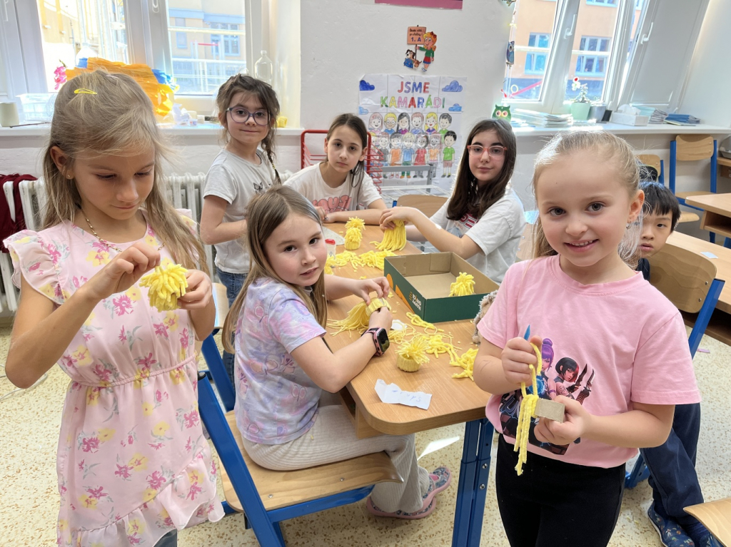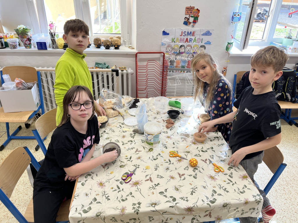 V březnu jsme v družině prožili spoustu tvořivých a veselých chvil. Děti si společně hrály a vyráběly dekorace na velikonoční jarmark i pro sebe. Vytvořily roztomilá kuřátka, panáčky s hlavami, kterým narostly vlasy z trávy, a také kuřátka z kinder vajíček. Sázeli jsme řeřichu, malovali kraslice a vyráběli košíčky na vajíčka. Nechybělo ani malování sádrových odlitků, které děti velmi bavilo. Když bylo pěkné počasí, trávili jsme čas venku na hřišti, kde si děti užily pohyb a hry na čerstvém vzduchu.