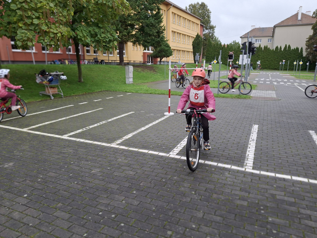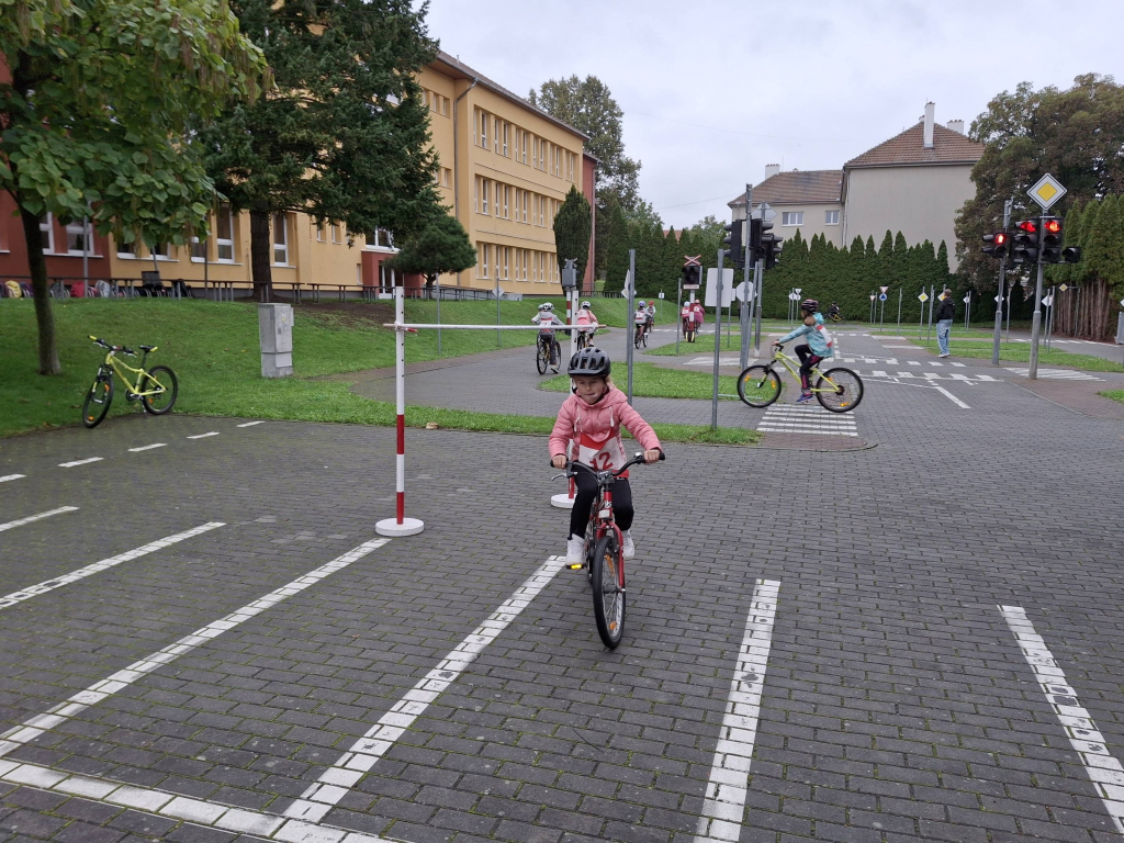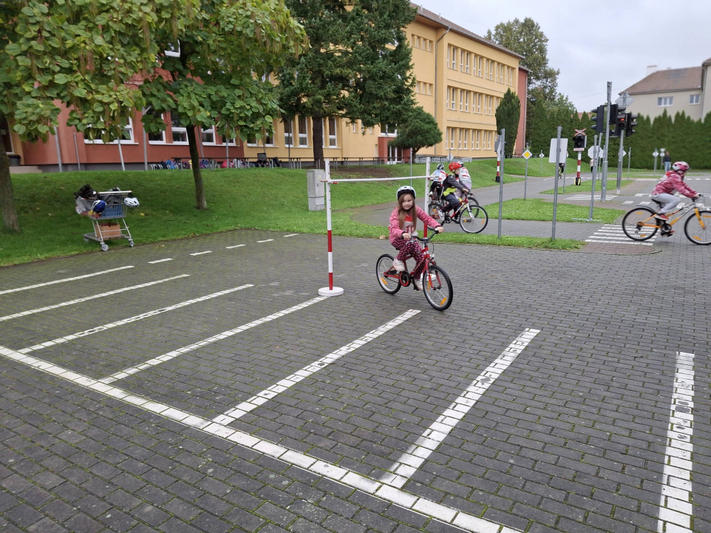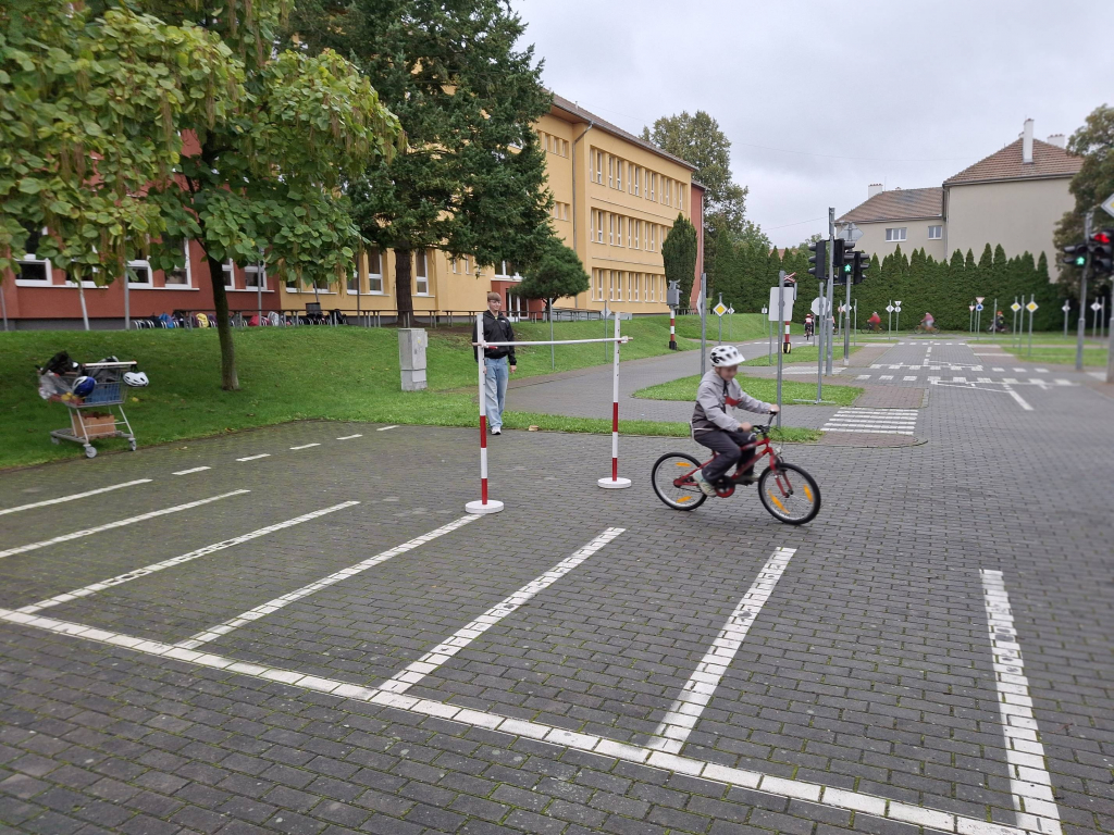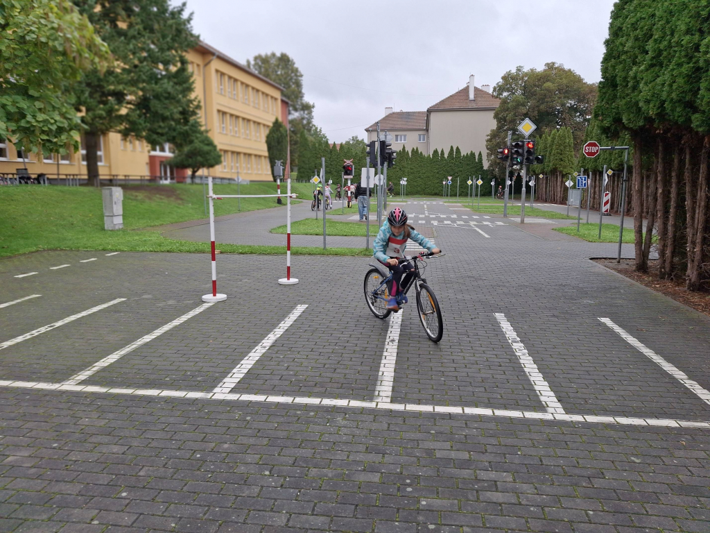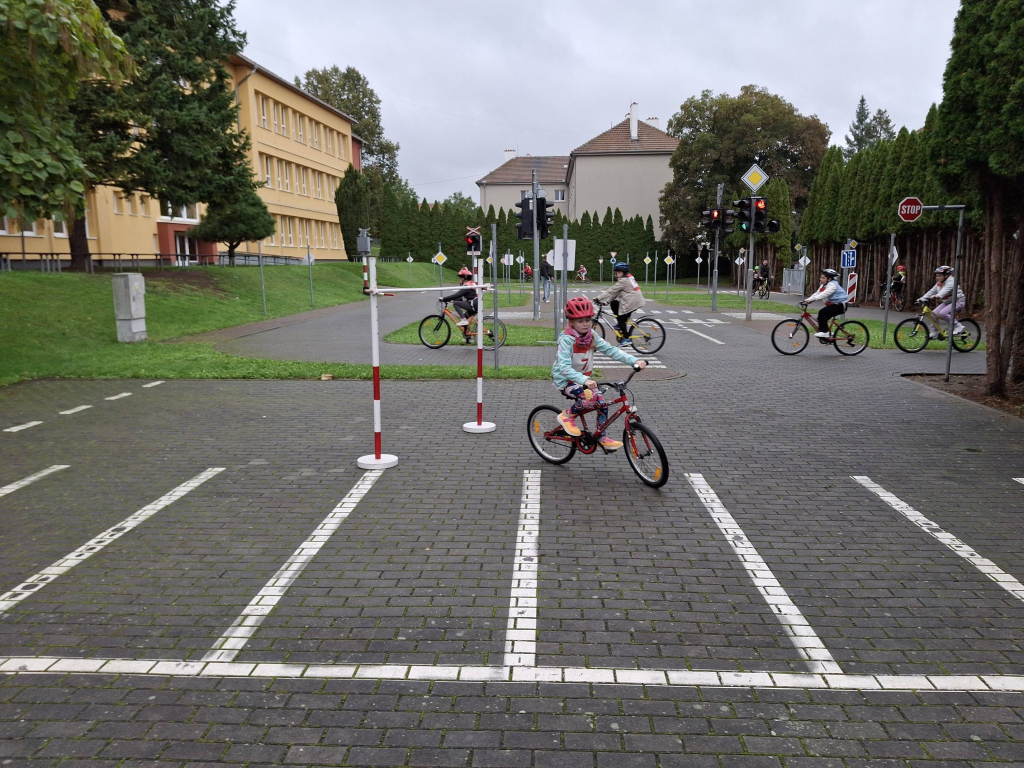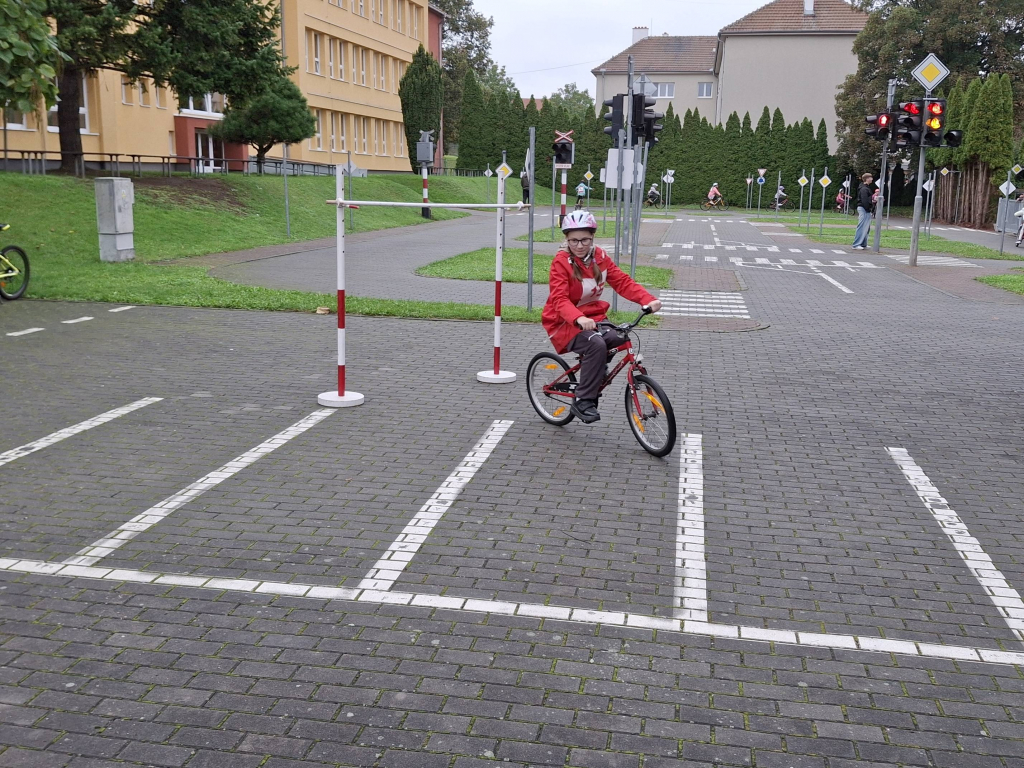 Všichni nakonec absolvovali i jízdu na kole na dopravním hřišti. Jezdit podle dopravních předpisů, sledovat značky, semafory a chodce, nebylo vůbec snadné. Na dopravním hřišti jsme se pěkně zapotili, ale bylo to zapotřebí. Nyní se budeme cítit na kole bezpečněji.