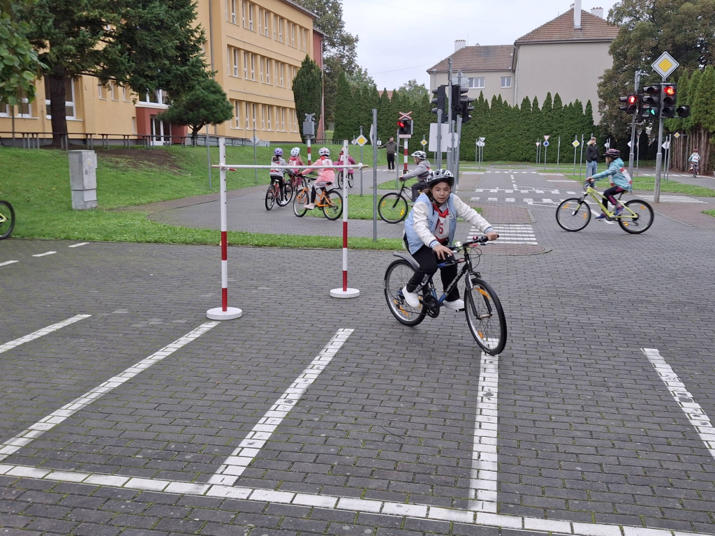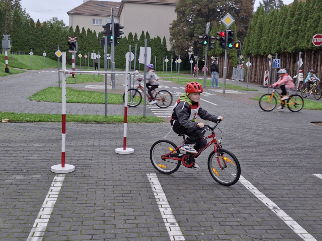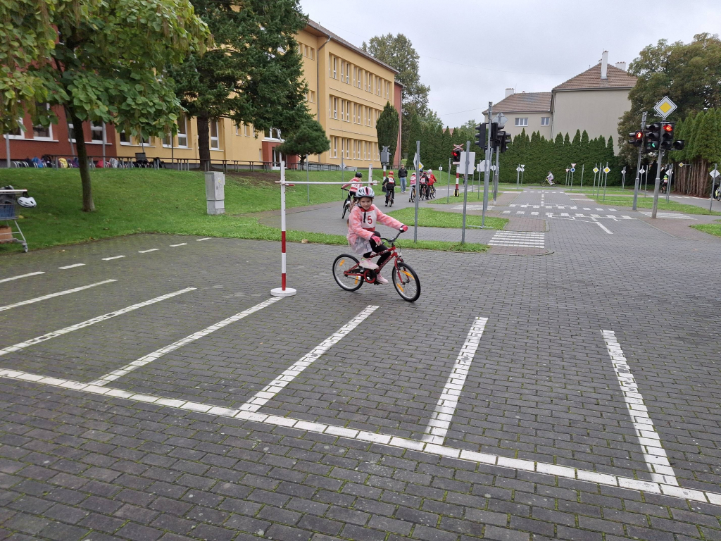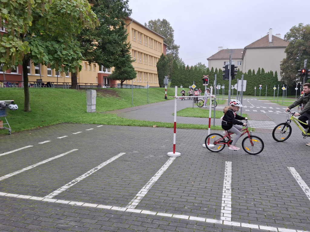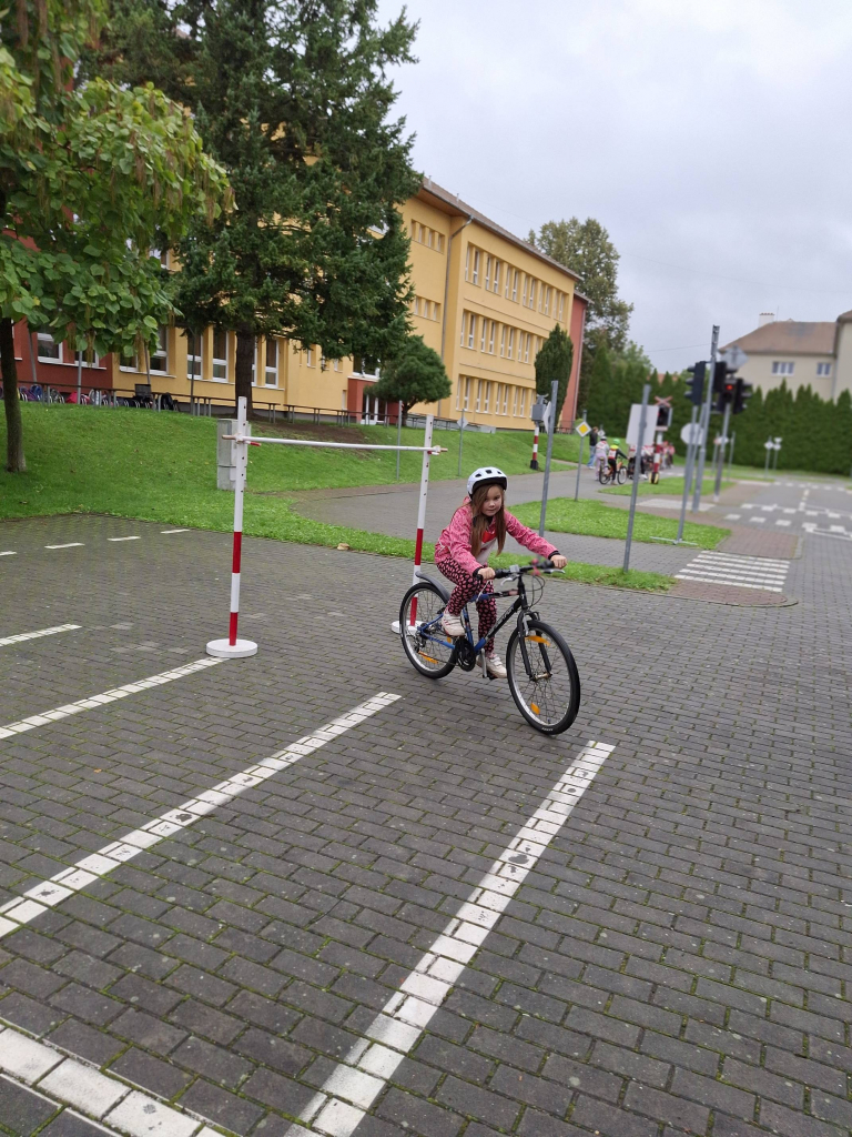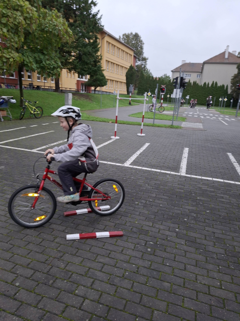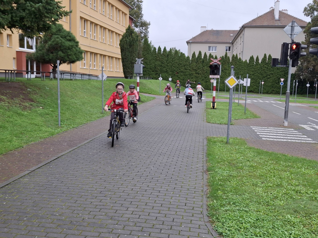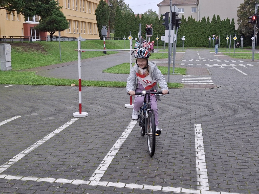 Všichni nakonec absolvovali i jízdu na kole na dopravním hřišti. Jezdit podle dopravních předpisů, sledovat značky, semafory a chodce, nebylo vůbec snadné. Na dopravním hřišti jsme se pěkně zapotili, ale bylo to zapotřebí. Nyní se budeme cítit na kole bezpečněji.