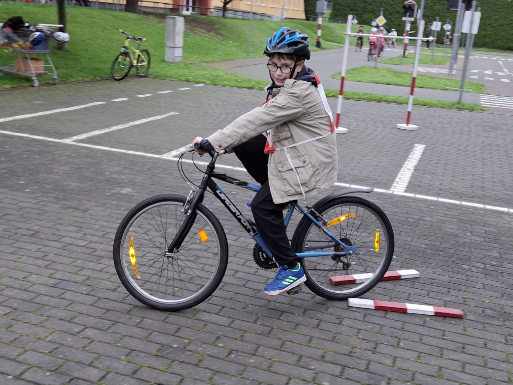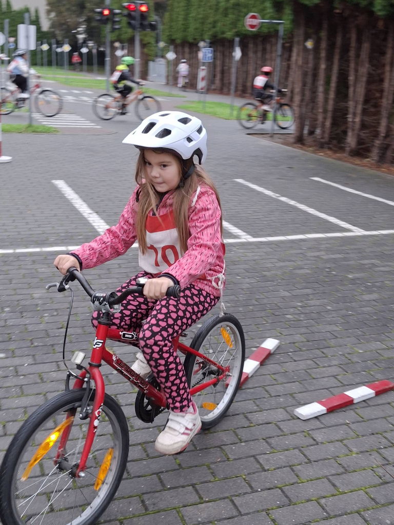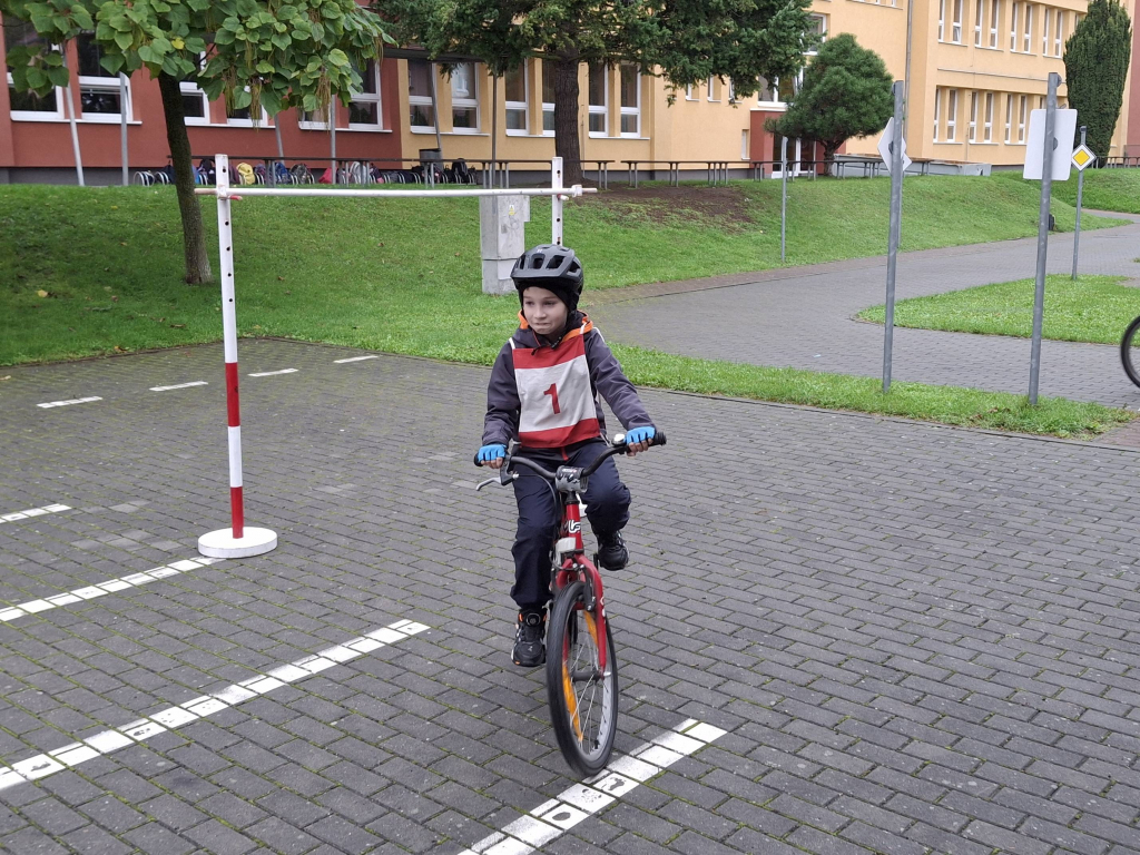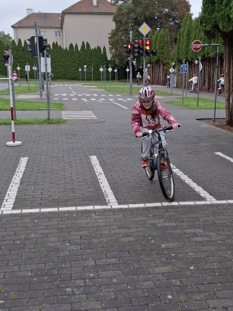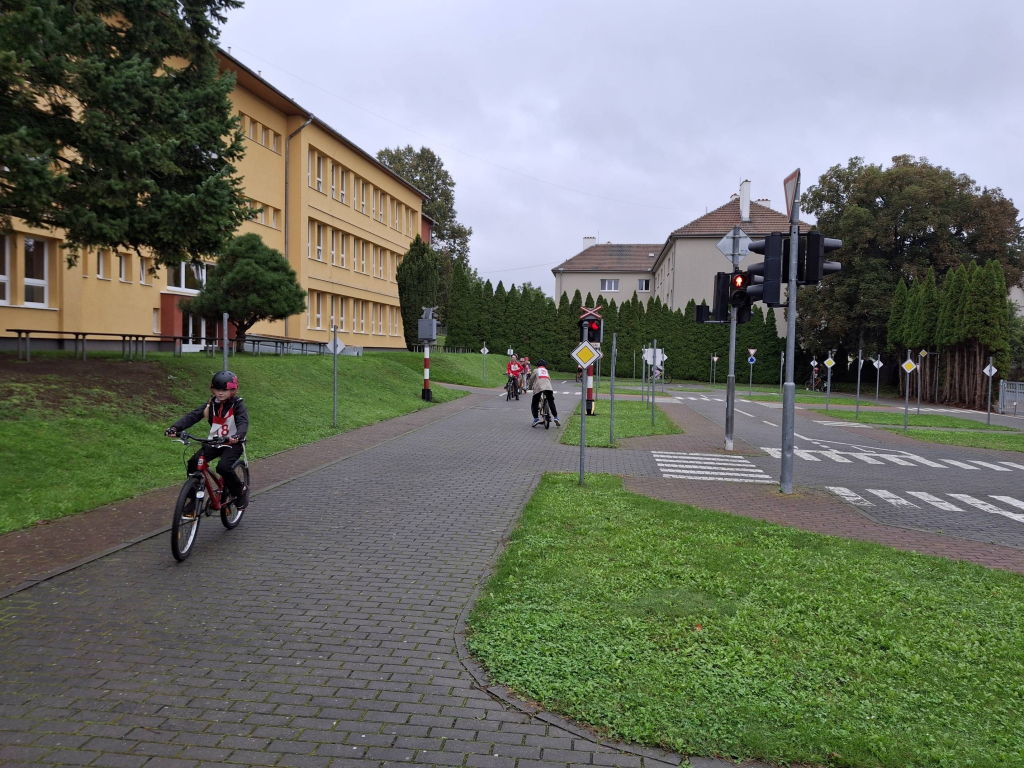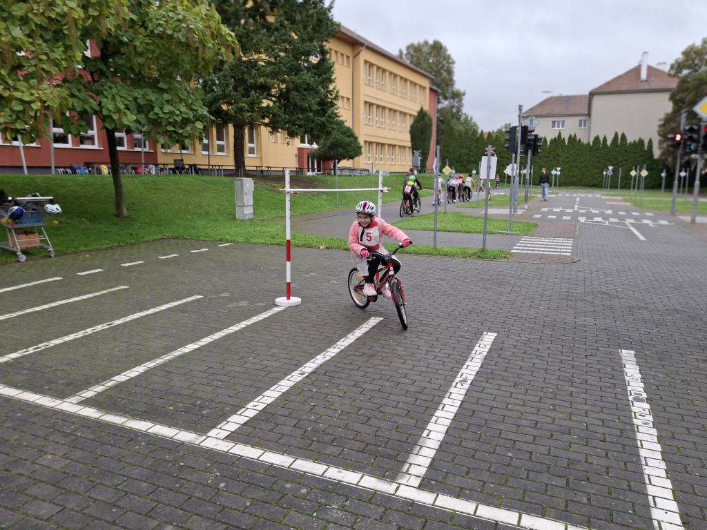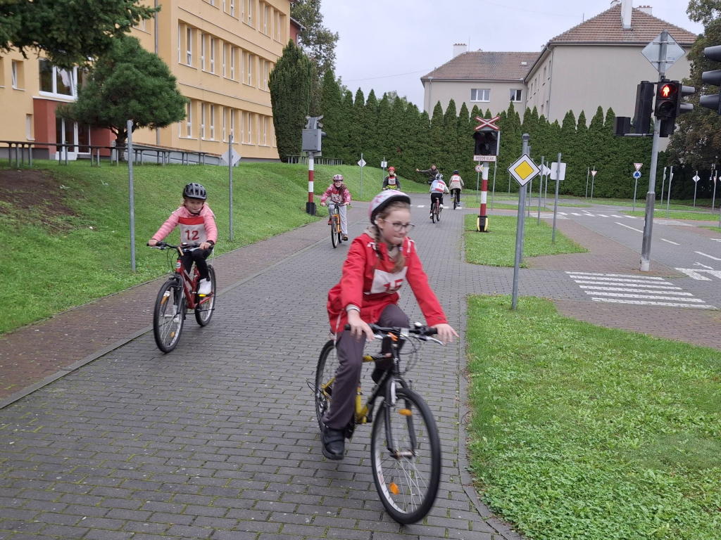 Všichni nakonec absolvovali i jízdu na kole na dopravním hřišti. Jezdit podle dopravních předpisů, sledovat značky, semafory a chodce, nebylo vůbec snadné. Na dopravním hřišti jsme se pěkně zapotili, ale bylo to zapotřebí. Nyní se budeme cítit na kole bezpečněji.