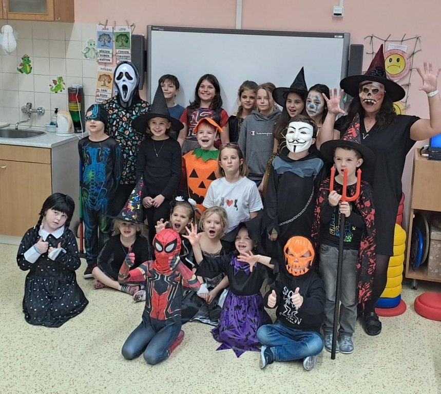 Poslední říjnový den se školní družina proměnila v pestrou přehlídku masek, kostýmů a strašidelných postaviček. Děti si užily odpoledne plné zábavy, her a soutěží, které jsme pro ně připravili v duchu Halloweenu.