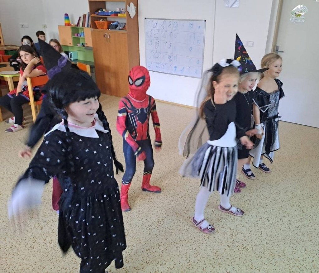 Nechyběla módní přehlídka kostýmů, při které se děti s nadšením předváděly v originálních převlecích – od čarodějnic a duchů až po superhrdiny. Společně jsme si zatancovali, zasoutěžili a užili si spoustu legrace.