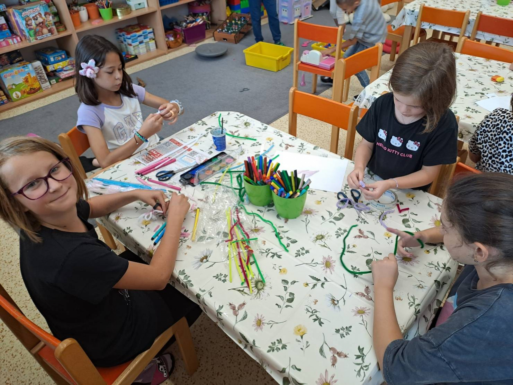 V průběhu září jsme se pustili do tvořivých aktivit – vyráběli jsme veselé podzimníčky, barevný pastelníček a další výtvarné projekty inspirované podzimní přírodou. Nechyběly ani pohybové a společenské hry, soutěže a aktivity podporující spolupráci a radost ze sdíleného času.