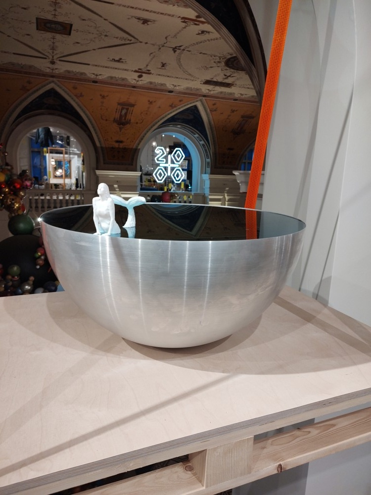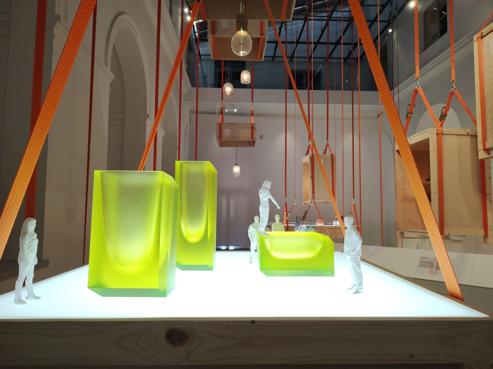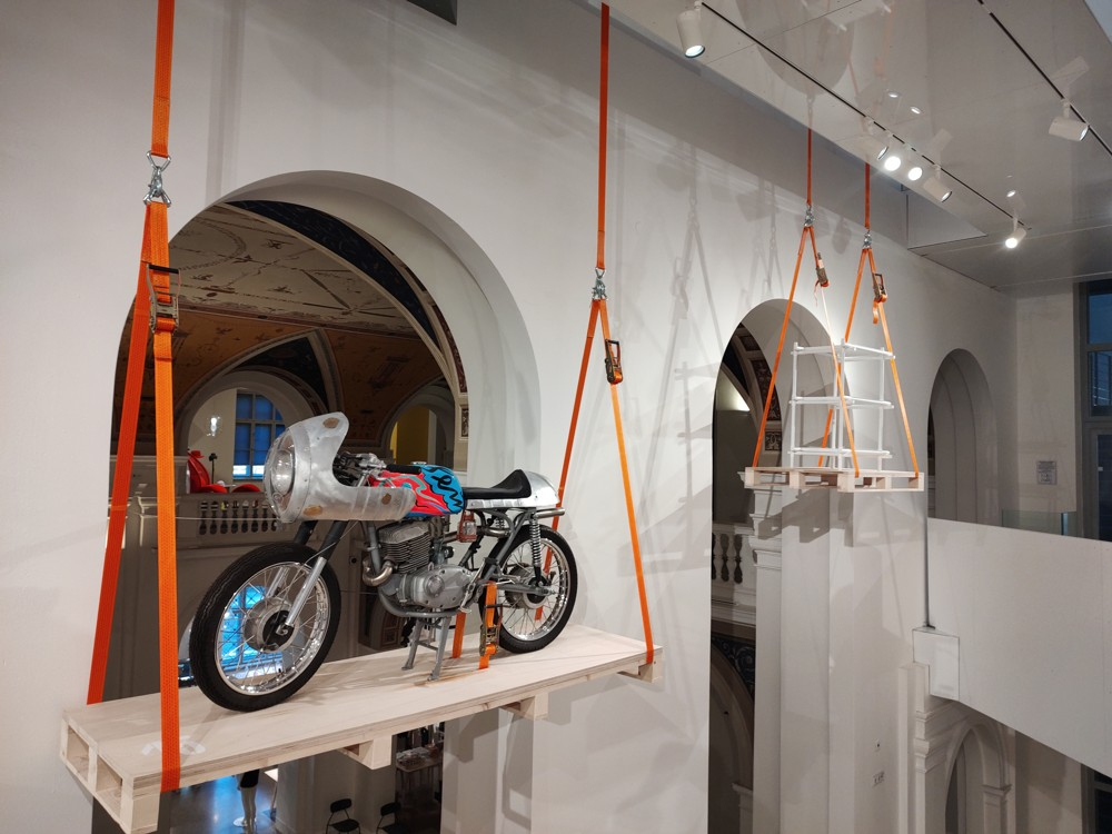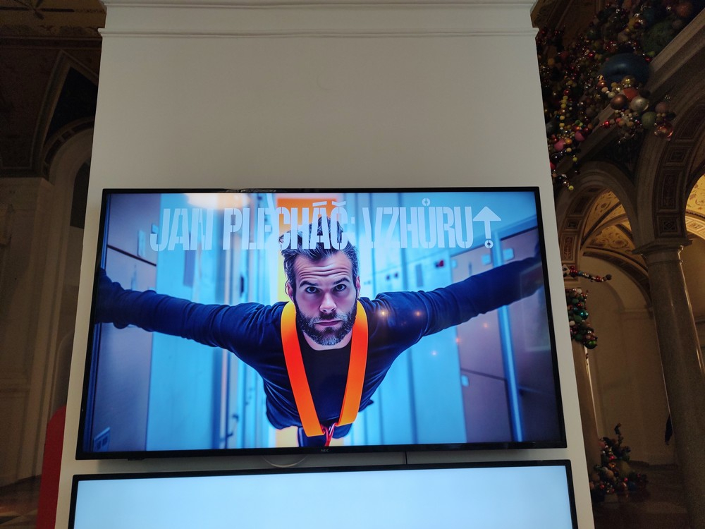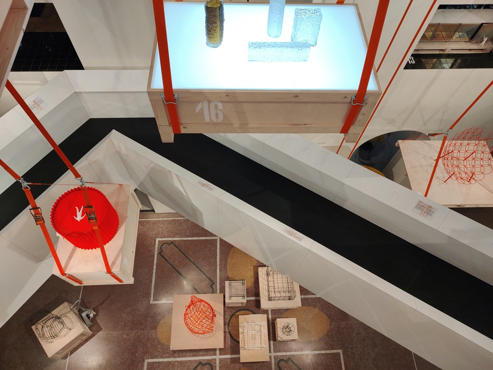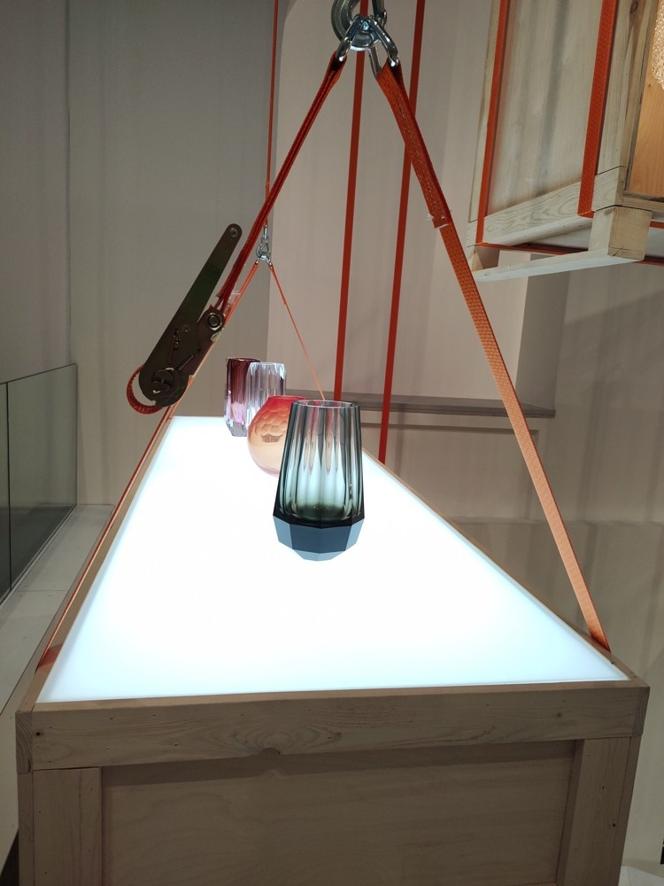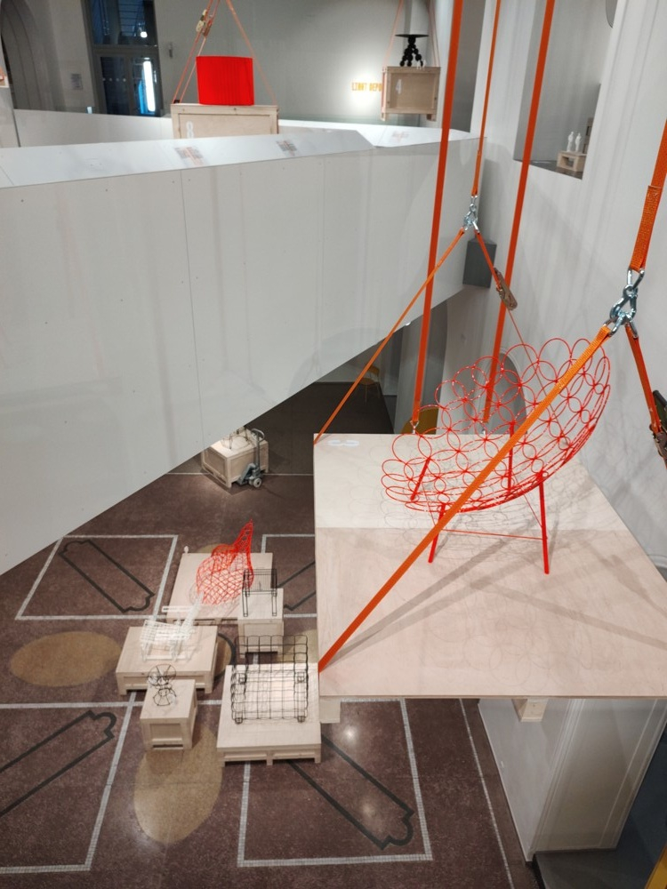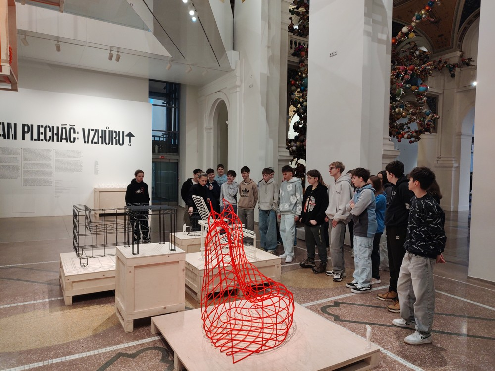 Naším cílem byla výstava Vzhůru! českého designéra Jana Plecháče instalovaná ve vnitřním prostoru galerie, kde se doslova vznášela přehlídka celé jeho dosavadní tvorby: drátěný nábytek, motorka, svítidla, skleněné vázy..., to vše doplněno o malé figurky z 3D tiskárny znázorňující lidi, které Jana Plecháče v jeho profesním životě provázejí - rodina, přátelé, kolegové, učitelé...