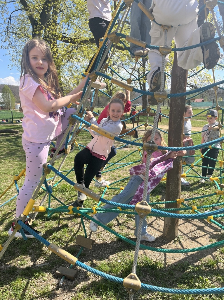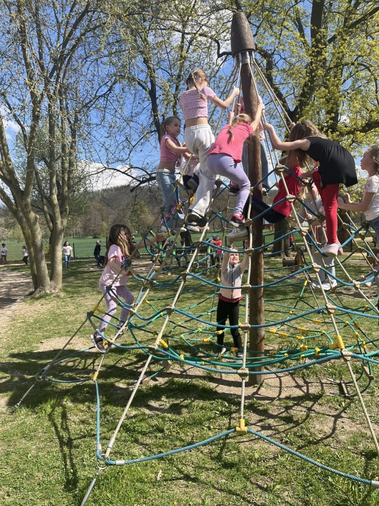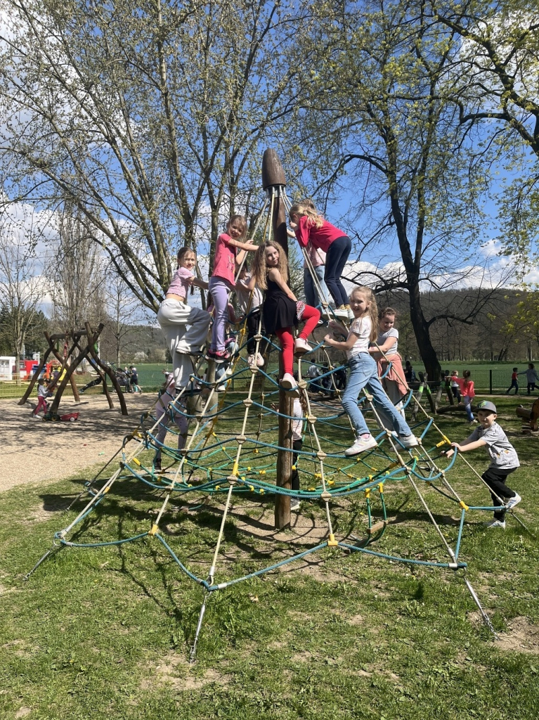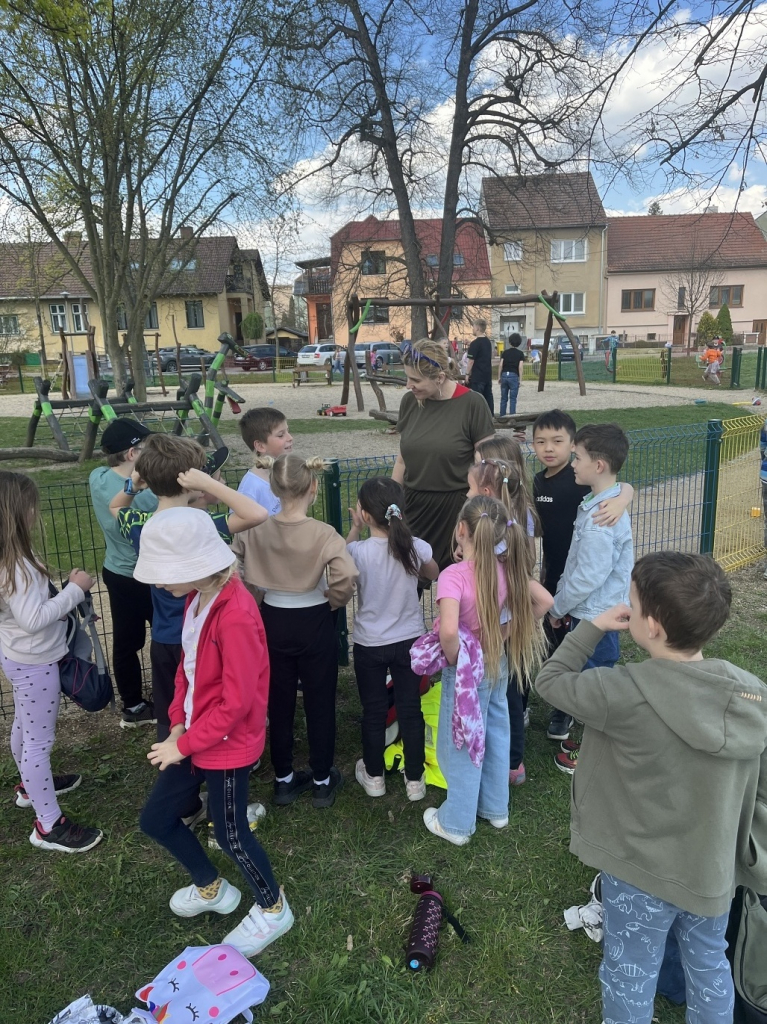 Na konci procházky děti dostaly poslední úkoly, které společně plnily a luštily indicie, které je postupně dovedly až k pokladu. Radost a nadšení bylo obrovské ve chvíli, kdy se jim poklad podařilo najít. Zasloužená odměna je neminula. Krásným zakončením celé procházky byla návštěva dětského hřiště, kde si děti krásně vyhrály. Využily herní prvky, běhaly, houpaly se a společně trávily čas venku.