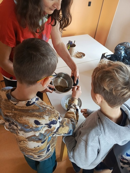 Každý z nás si vytvořil vlastní receptář. Na závěr jsme se proměnili v malé přírodní lékárníky a vyrobili jsme si hojivou měsíčkovou mast, kterou jsme si odnesli domů.