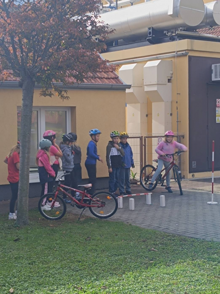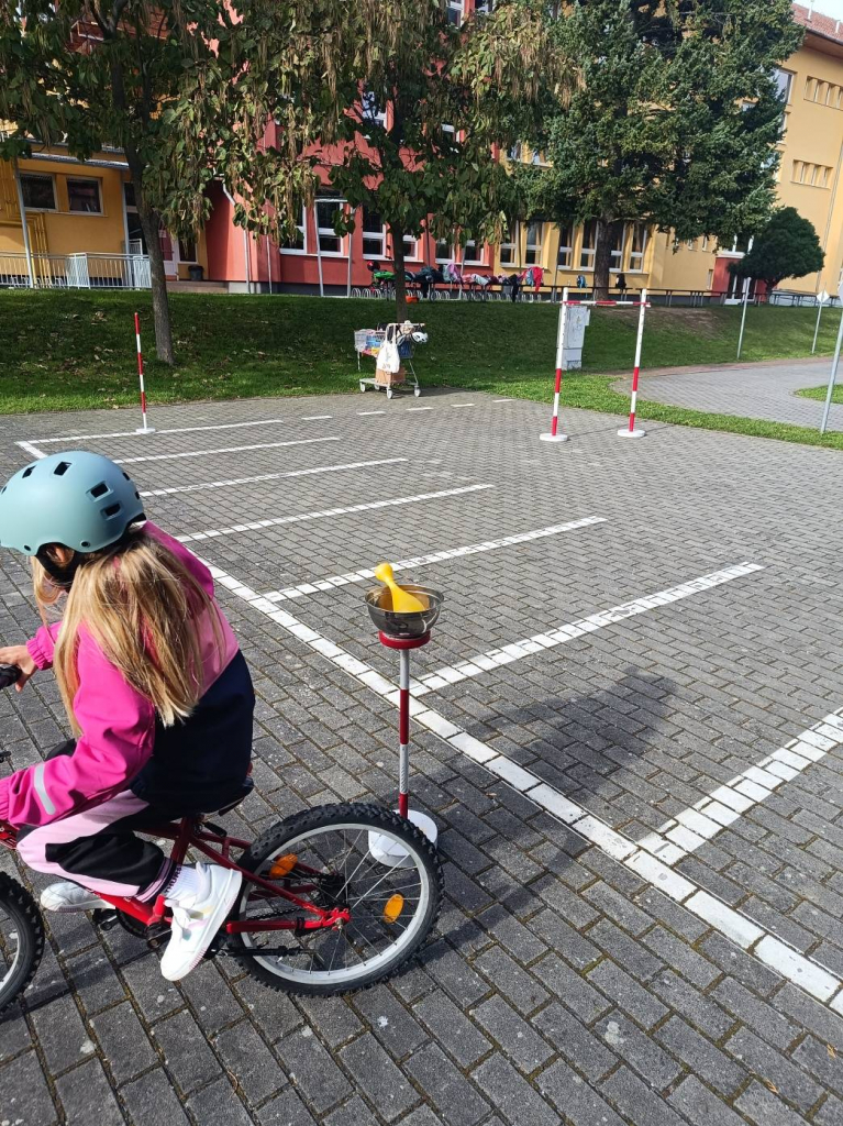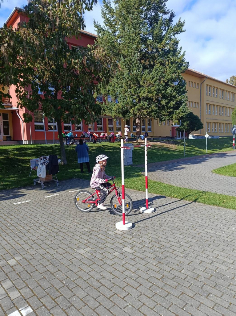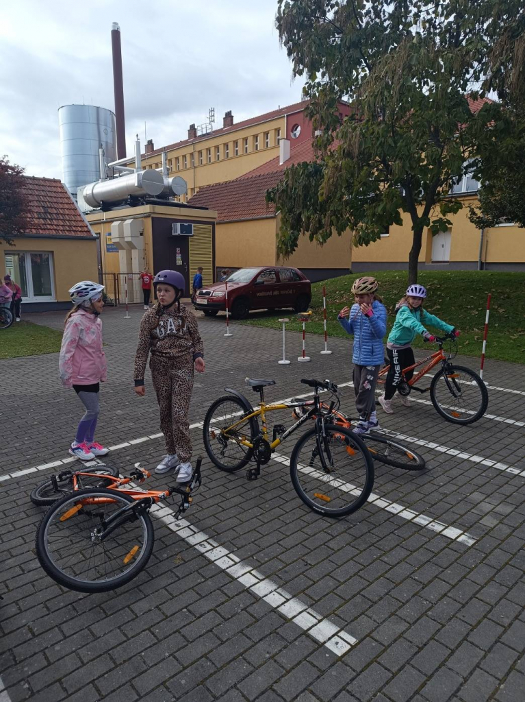 V první části se žáci seznámili s dopravními předpisy, značkami a pravidly pro jízdu na kole. Ve druhé části si každý vyzkoušel jízdu zručnosti a jízdu na dopravním hřišti. Po celou dobu je naše lektorky neustále opravovaly a připomínaly naučená pravidla. Jízda na kole musí být bezpečná pro cyklisty, ale i pro všechny účastníky silničního provozu.