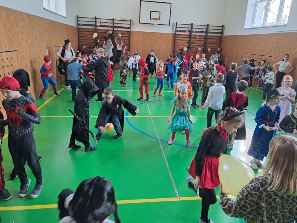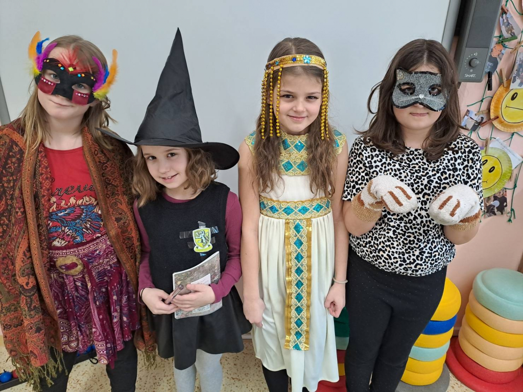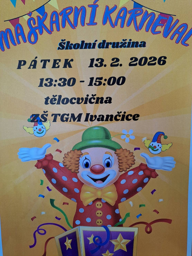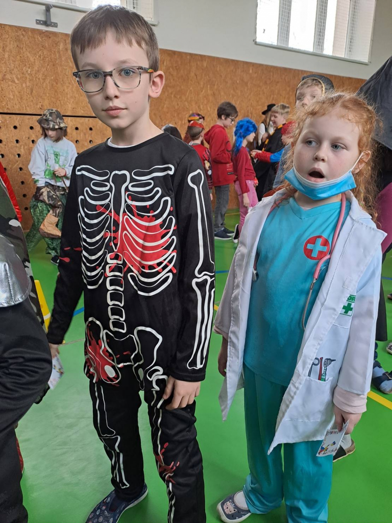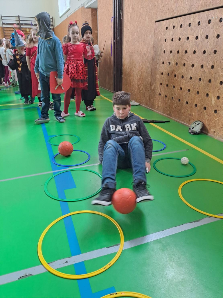 Dne 13. 2. 2026 se tělocvična naší školy proměnila v barevné království masek. Děti ze školní družiny přišly s úsměvem, plné očekávání – a hlavně v úžasných převlecích! Od princezen přes Harryho Pottera a kovboje až po jednoho opravdu přesvědčivého dinosaura.