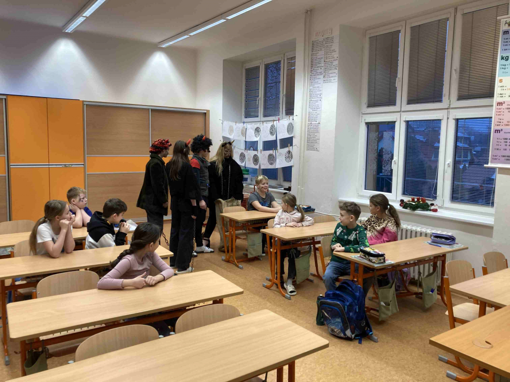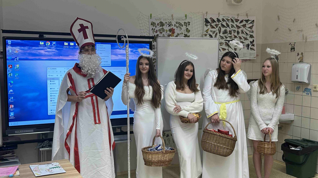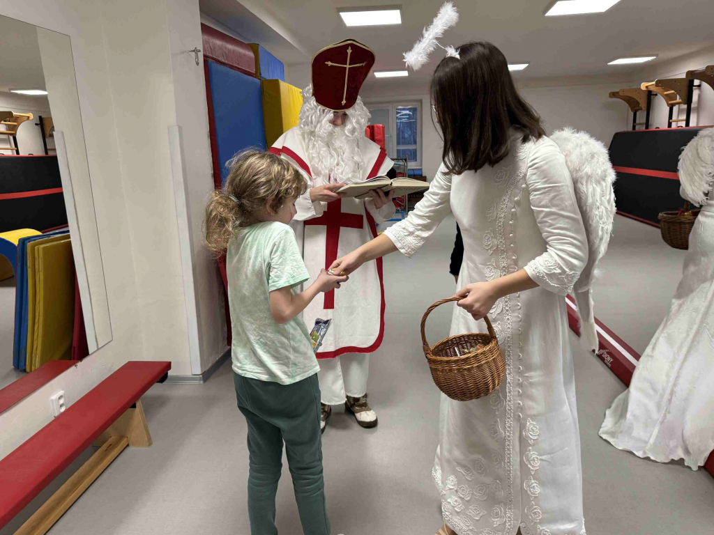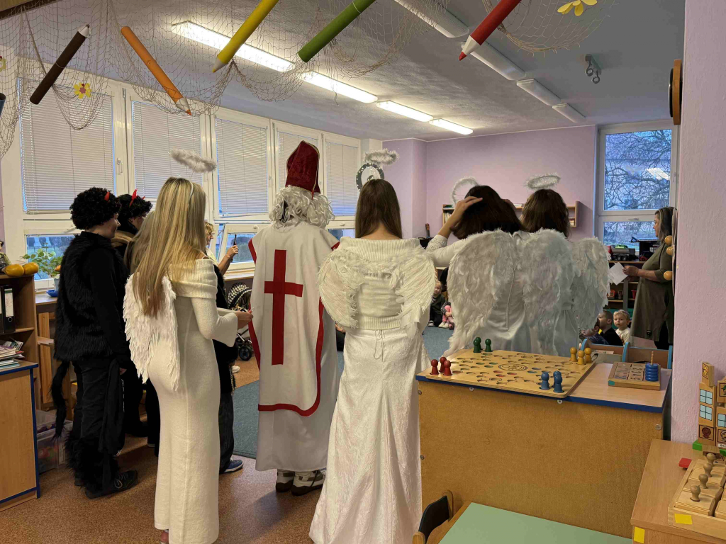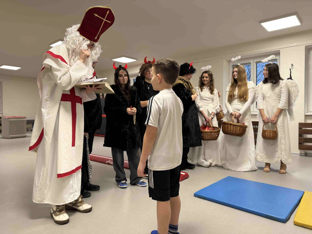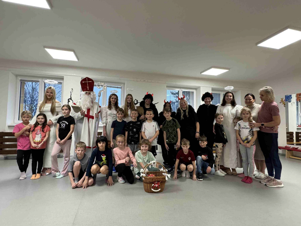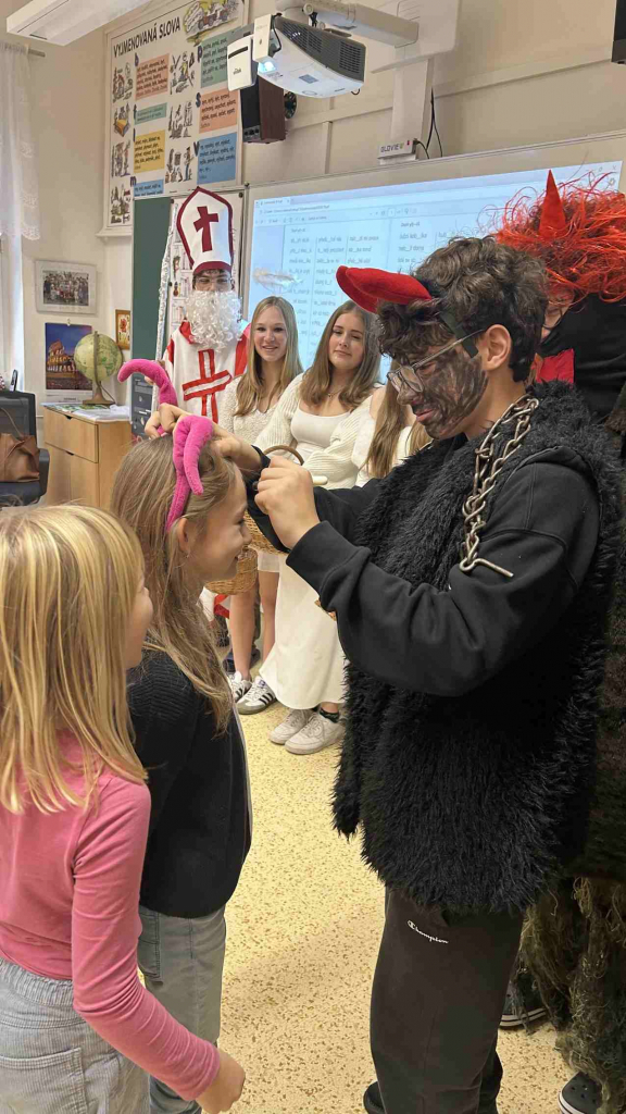 První adventní týden tradičně patří nebeským a pekelným bytostem – Mikulášovi, andělům a čertům. Na 1. stupni se hned od rána rozezněl cinkot zvonků, řinčení řetězů a ťukání mikulášské berly. Přišel čas sečíst hříchy za minulý rok. A že měly některé děti nahnáno.