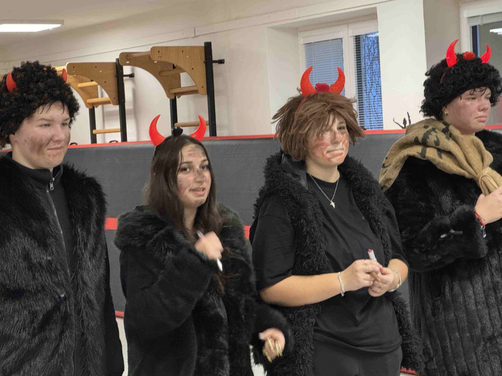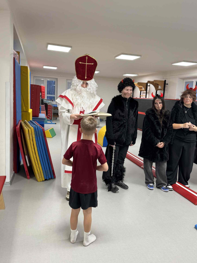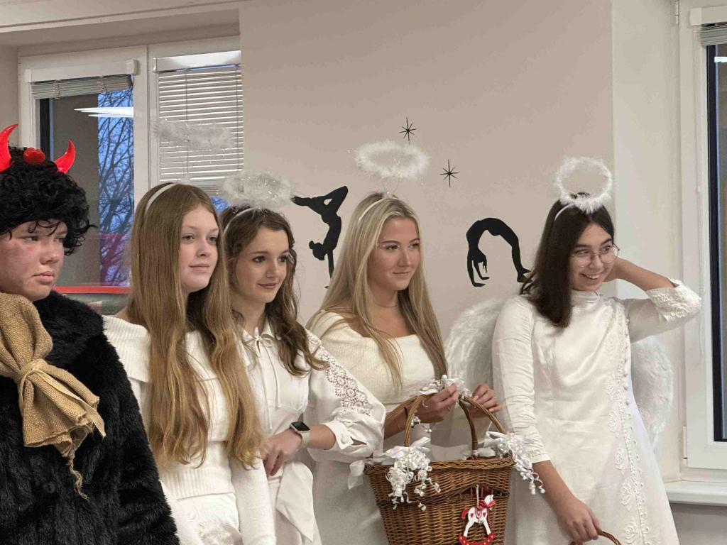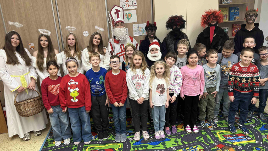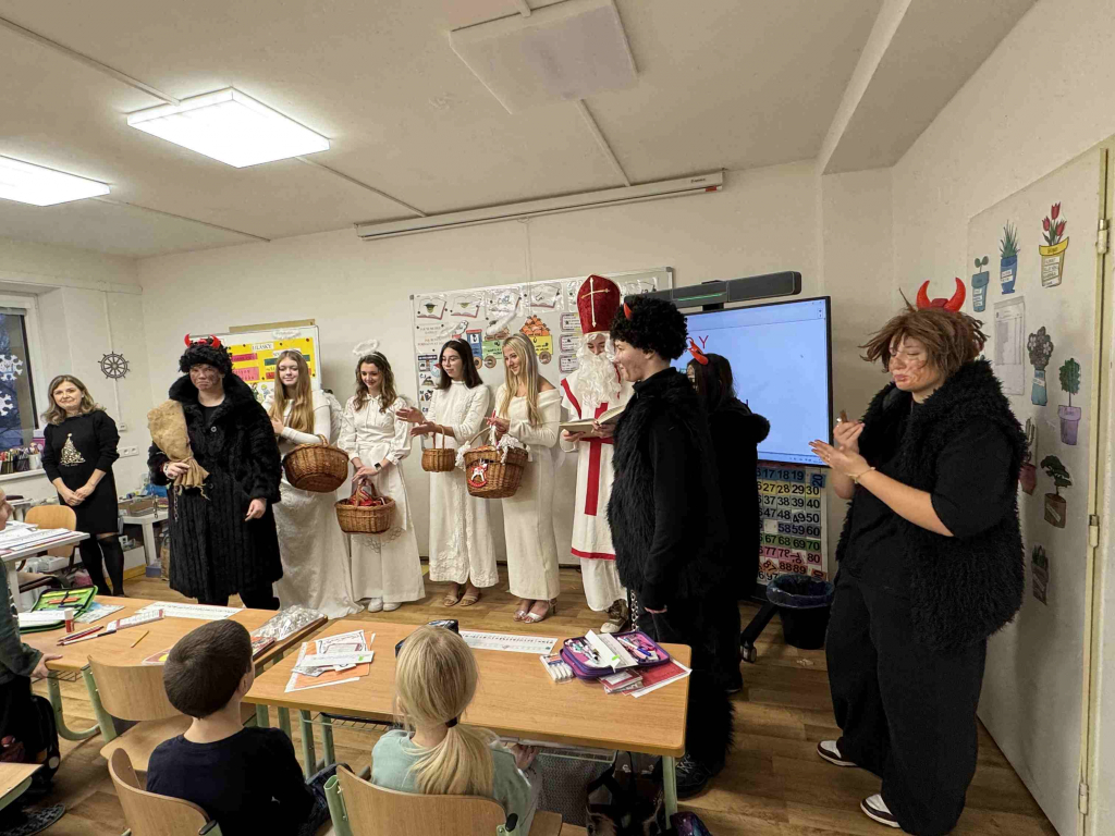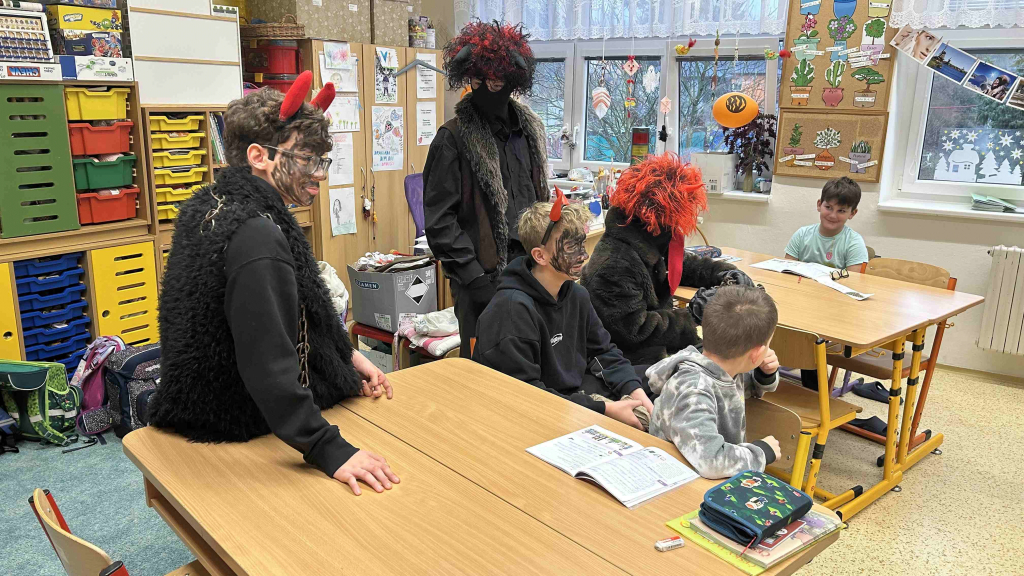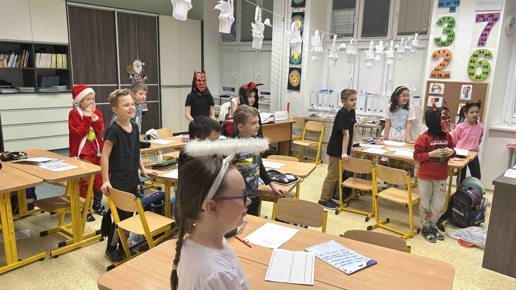První adventní týden tradičně patří nebeským a pekelným bytostem – Mikulášovi, andělům a čertům. Na 1. stupni se hned od rána rozezněl cinkot zvonků, řinčení řetězů a ťukání mikulášské berly. Přišel čas sečíst hříchy za minulý rok. A že měly některé děti nahnáno.