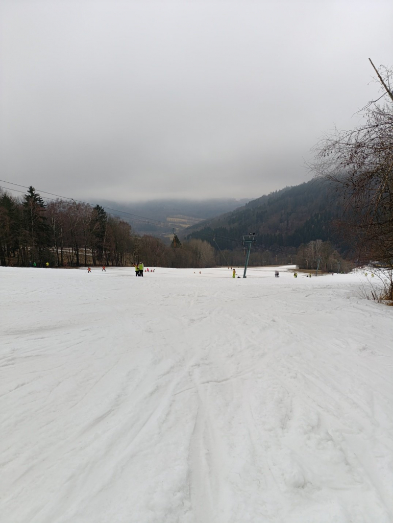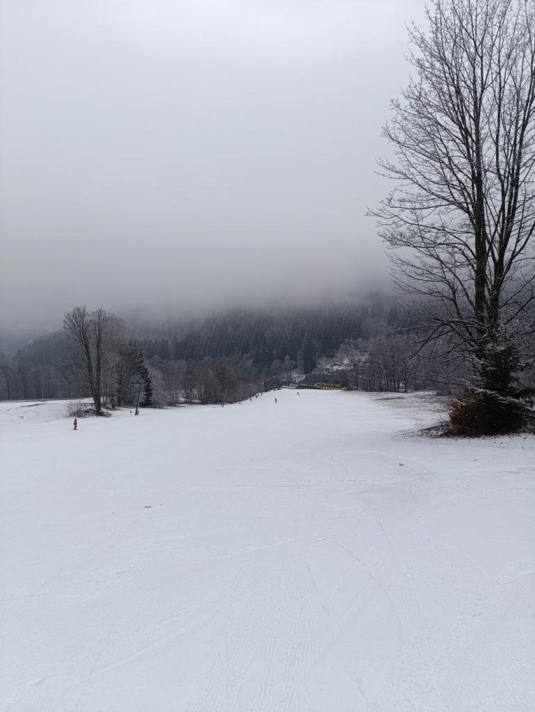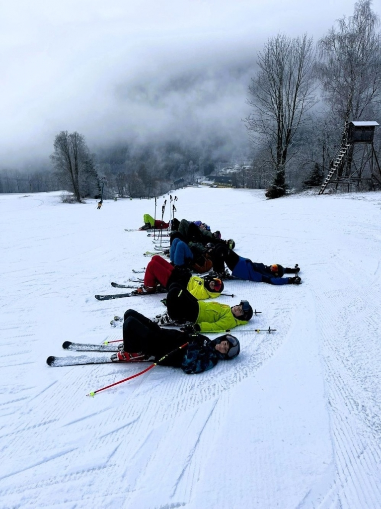 Když jsme nakládali lyže do autobusu, někteří z nás doufali v opalovačku na svahu. Hory ve Vernířovicích měly ale jiný plán – nasadily režim „mlha, že by se dala krájet“ a občas nás zasypaly sněhem, abychom nezapomněli, že nejsme v Karibiku. Ale i když jsme sluníčko viděli maximálně na displeji mobilu, třídy 7. B a 7. C (v celkovém počtu 37 kusů) ukázaly, že je jen tak něco nerozhází. Naším hlavním stanem se stala chata Brněnka, kde bylo naštěstí tepleji než venku.