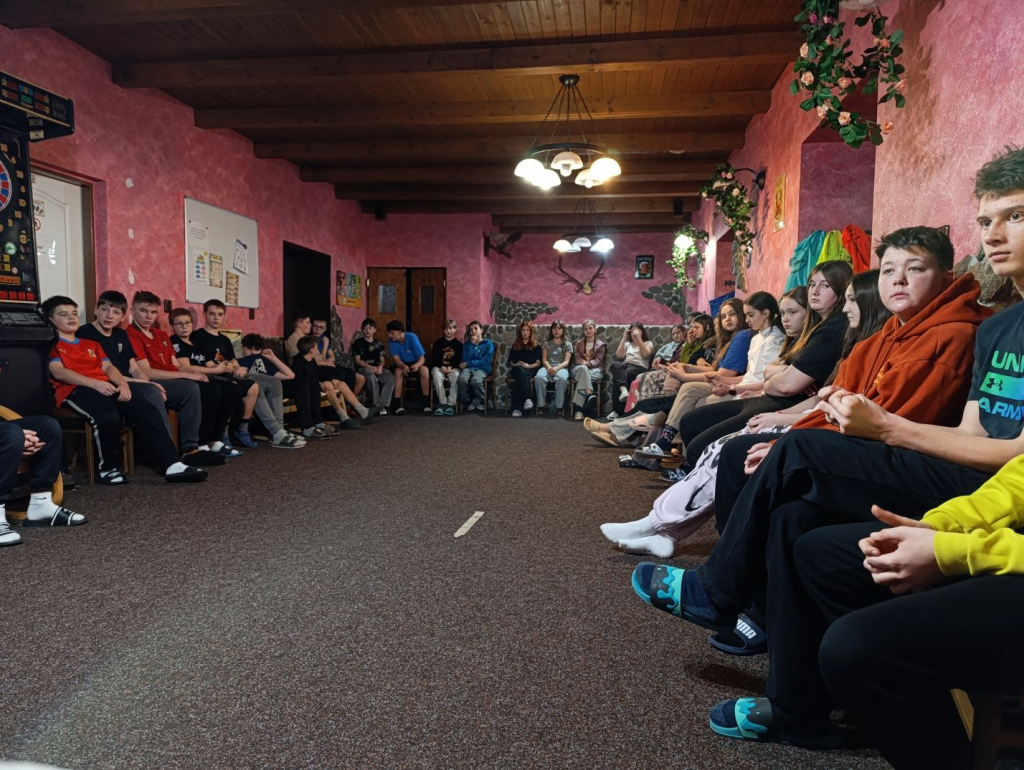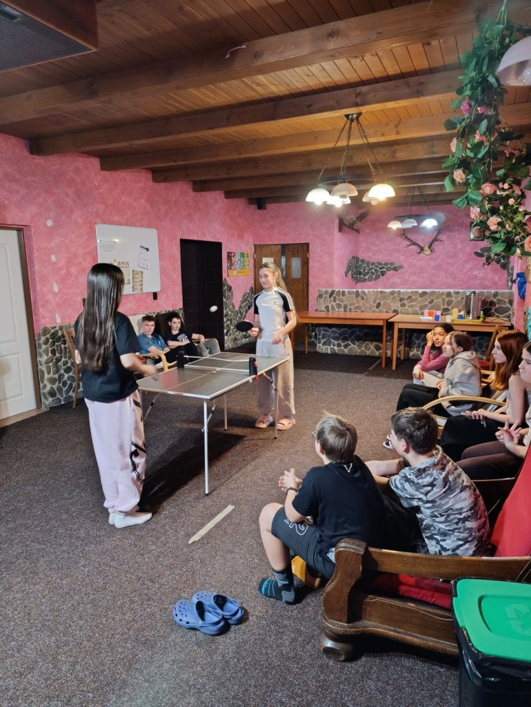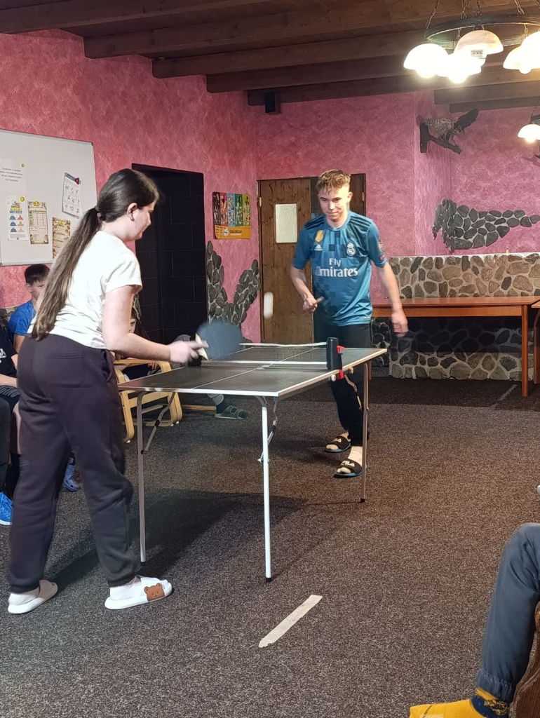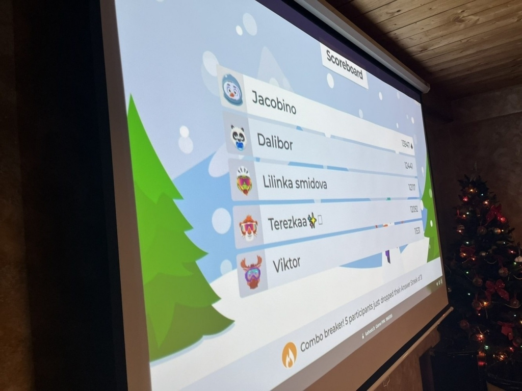 Večery na Brněnce rozhodně nebyly o spaní v devět. Rozjeli jsme maraton kvízů, her a ping-pongových bitev, kde se pálky jen míhaly. Všechno to pak bouchlo poslední večer na závěrečné diskotéce. Taneční kreace některých spolužáků (i učitelů!) by zasloužily vlastní dokument na Netflixu.