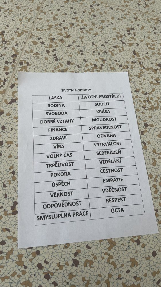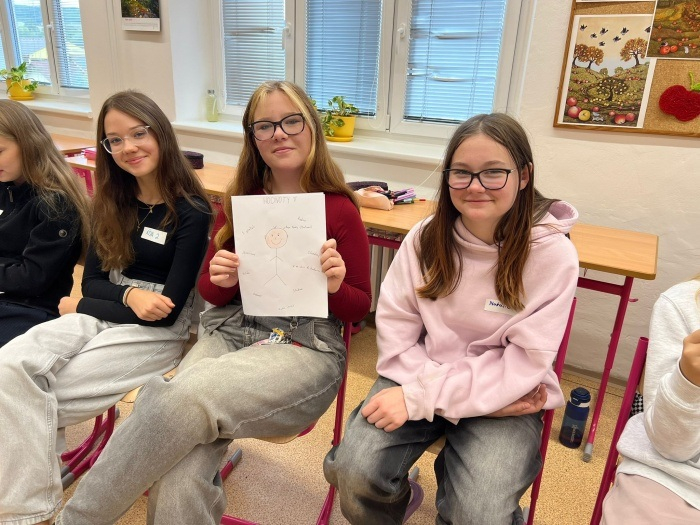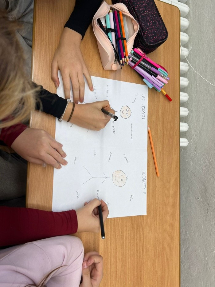 Paní lektorky zapojily žáky do mnoha aktivit, které je vedly k zamyšlení se nad hodnotami člověka, jak vidí osobu bez hodnot a s hodnotami, co je pro ně nejdůležitější hodnota atpod.