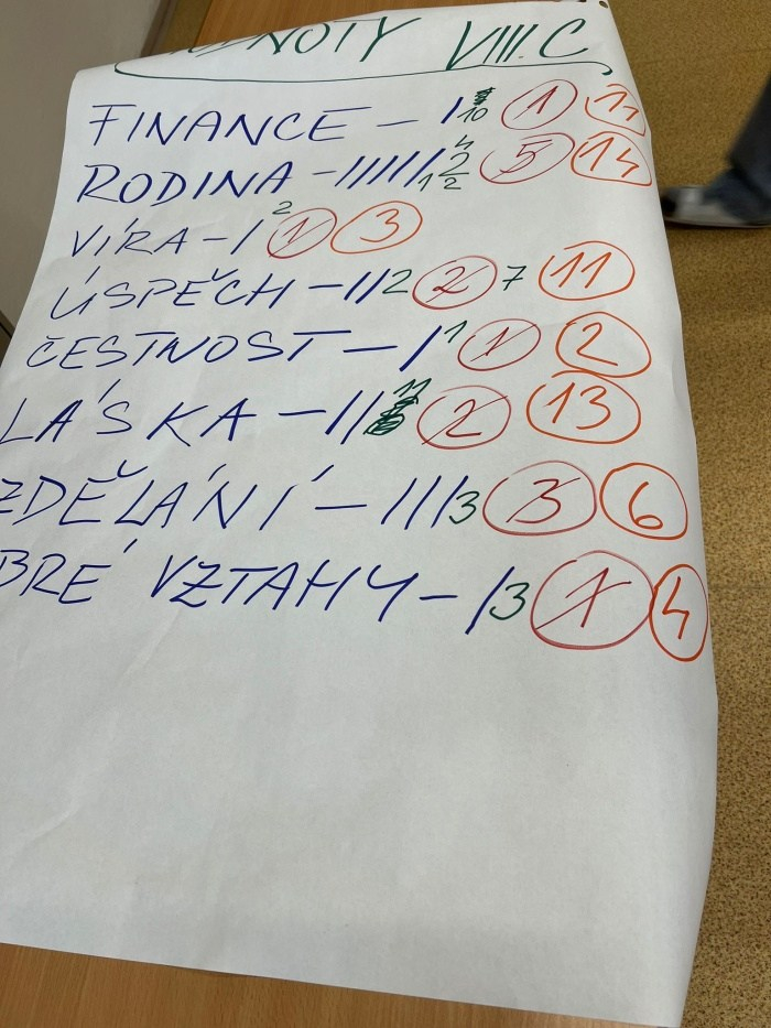 V pondělí 6. října a v úterý 7. října se v osmém ročníku uskutečnil preventivní program na téma "Hodnoty, na kterých stojí můj život".