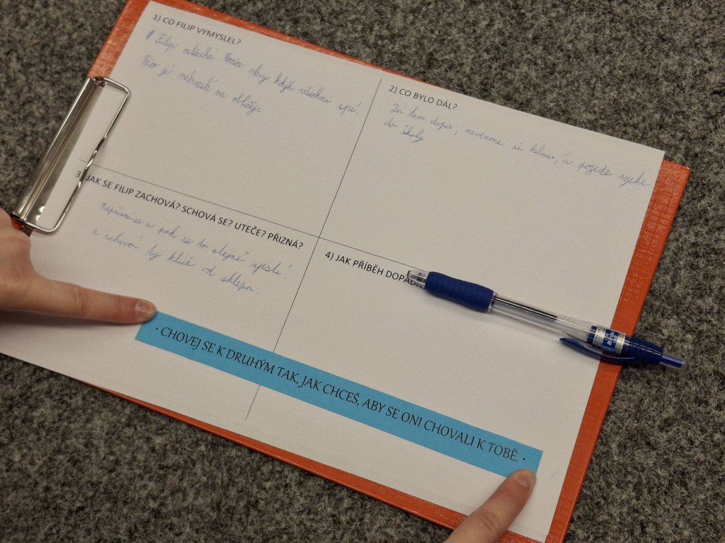 Děti předvídaly, co Filip na Moniku vymyslel, jak se zachoval, když měl jeho neuvážený čin vážné následky, i jak příběh dopadl. Čtení v nich vyvolalo silné emoce a vedlo je k otevřené diskusi o tom, jak jejich chování může ovlivňovat ostatní.
