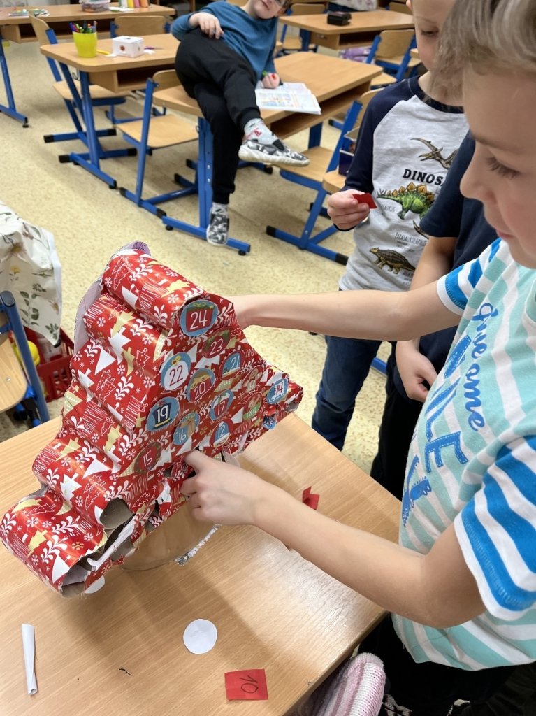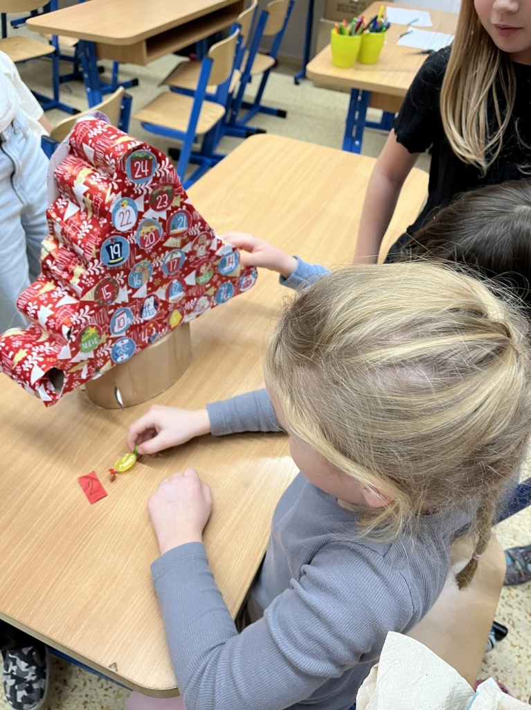 Ani my jsme nezůstali pozadu – máme svůj speciální adventní kalendář v podobě stromečku, ze kterého každý den losujeme sladkou odměnu a veselý úkol, který nám vykouzlí úsměv na tváři.