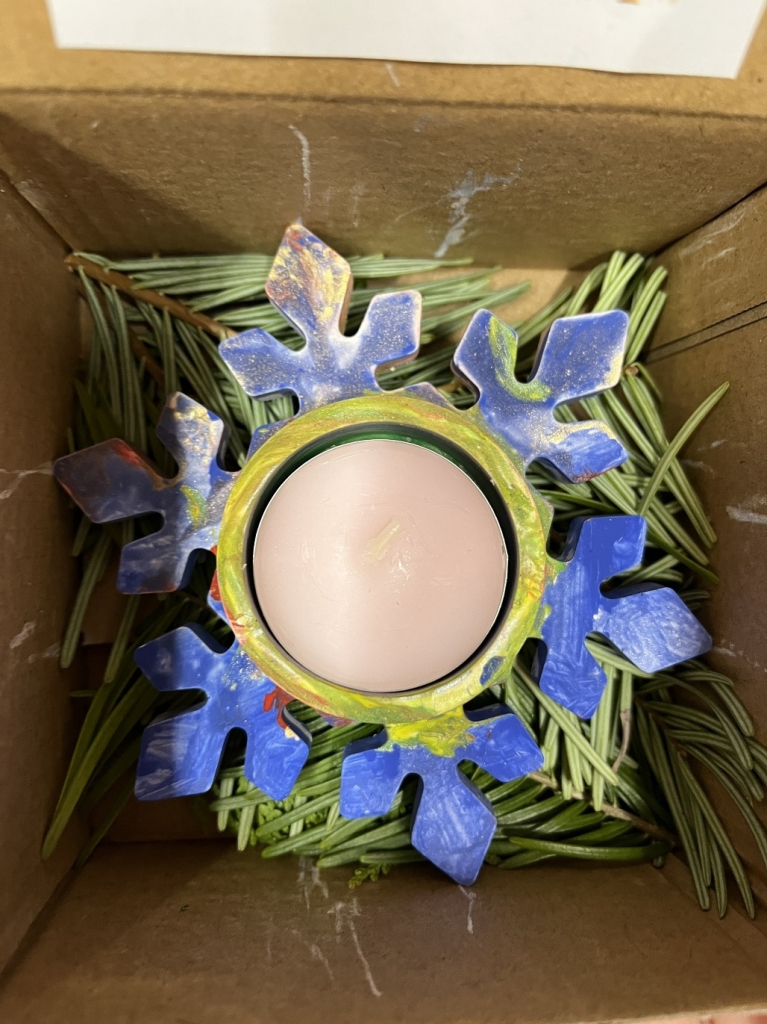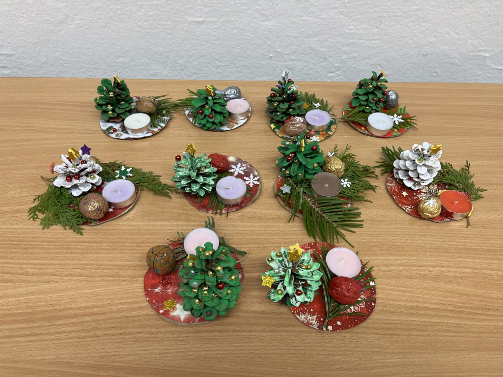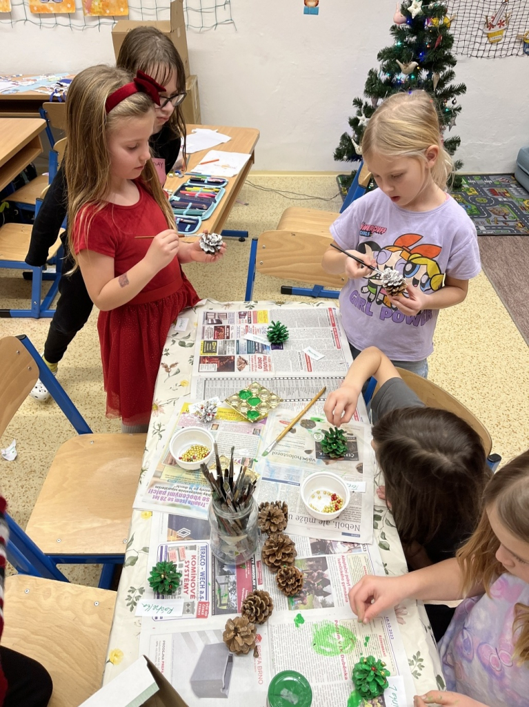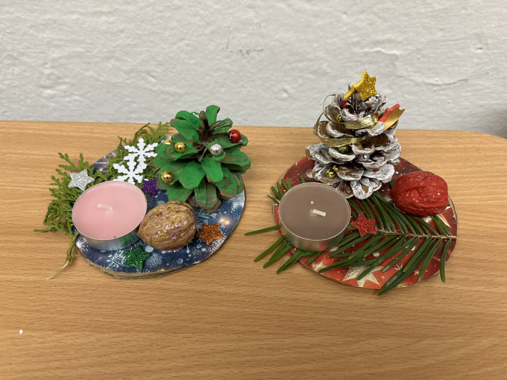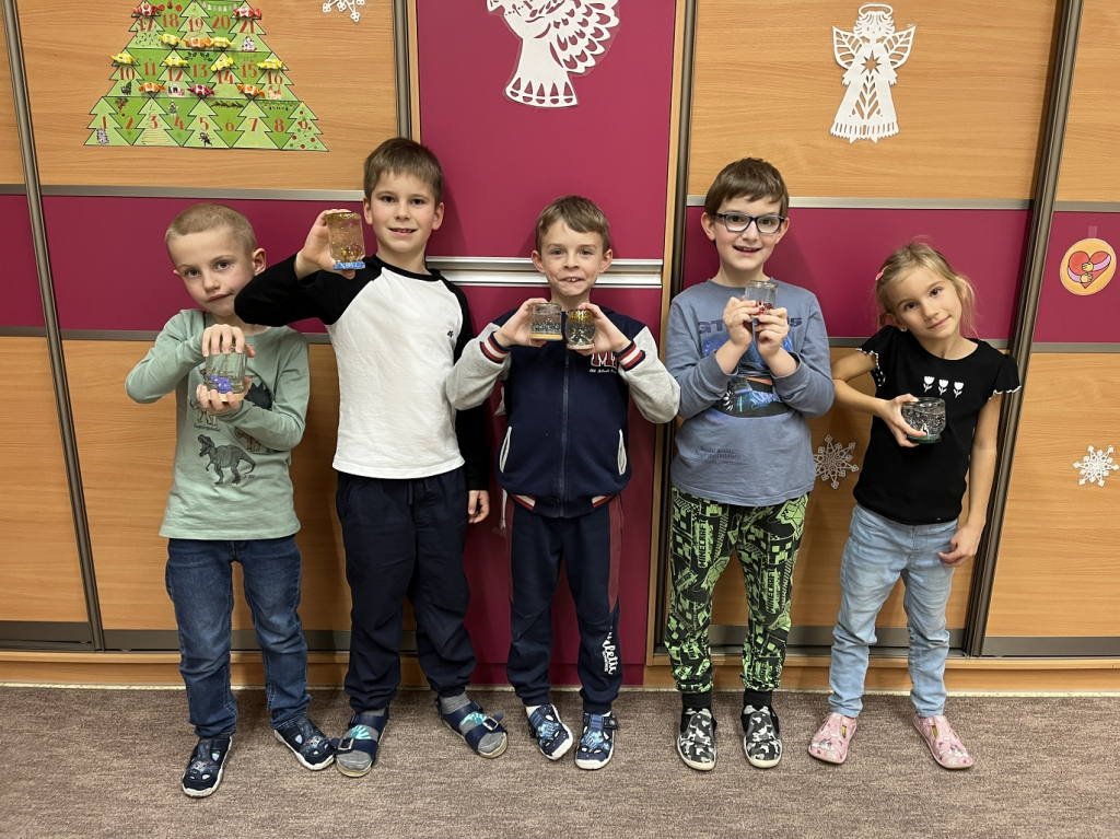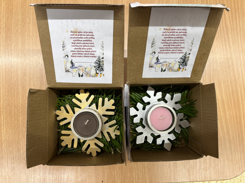 Společně jsme si vyrobili sněžítka, která nám doma připomenou zimní pohádku, a krásná vánoční přáníčka pro naše blízké. Mysleli jsme i na rodiče – pro ně jsme připravili svícny, aby jim doma svítilo teplo a světlo Vánoc.