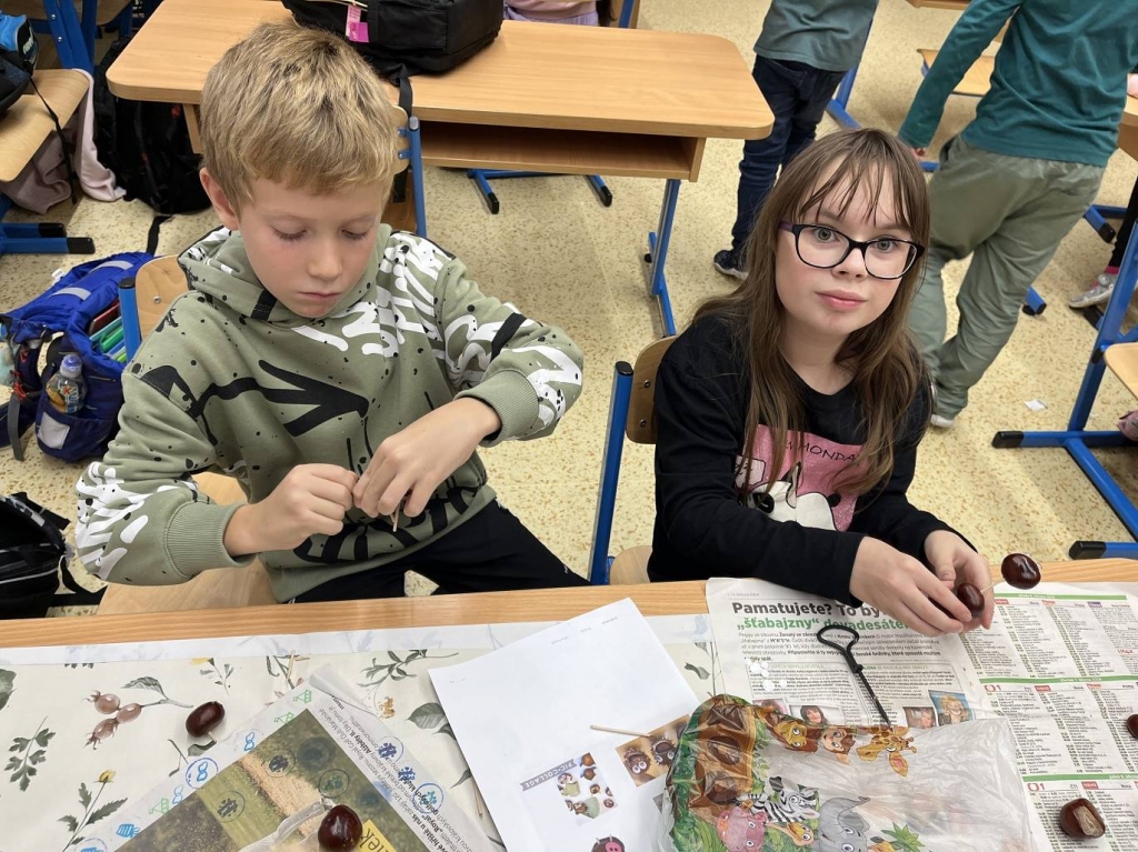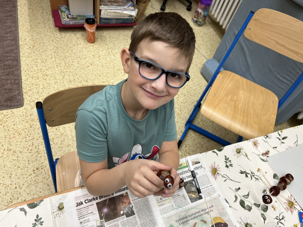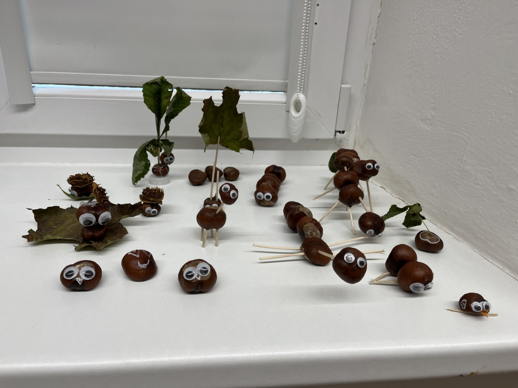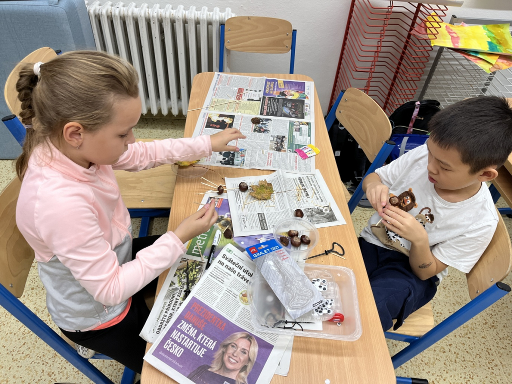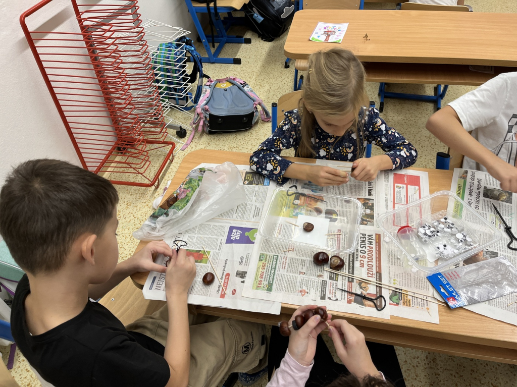 Říjen byl v naší družině opravdu pestrý a plný podzimních radovánek. Využili jsme krásné dary přírody a s chutí se pustili do tvoření. Děti vyráběly postavičky a zvířátka z kaštanů, listů a dalších přírodnin. Každý výtvor byl originální a ukázal, jak velkou fantazii a šikovné ruce naši malí tvůrci mají.