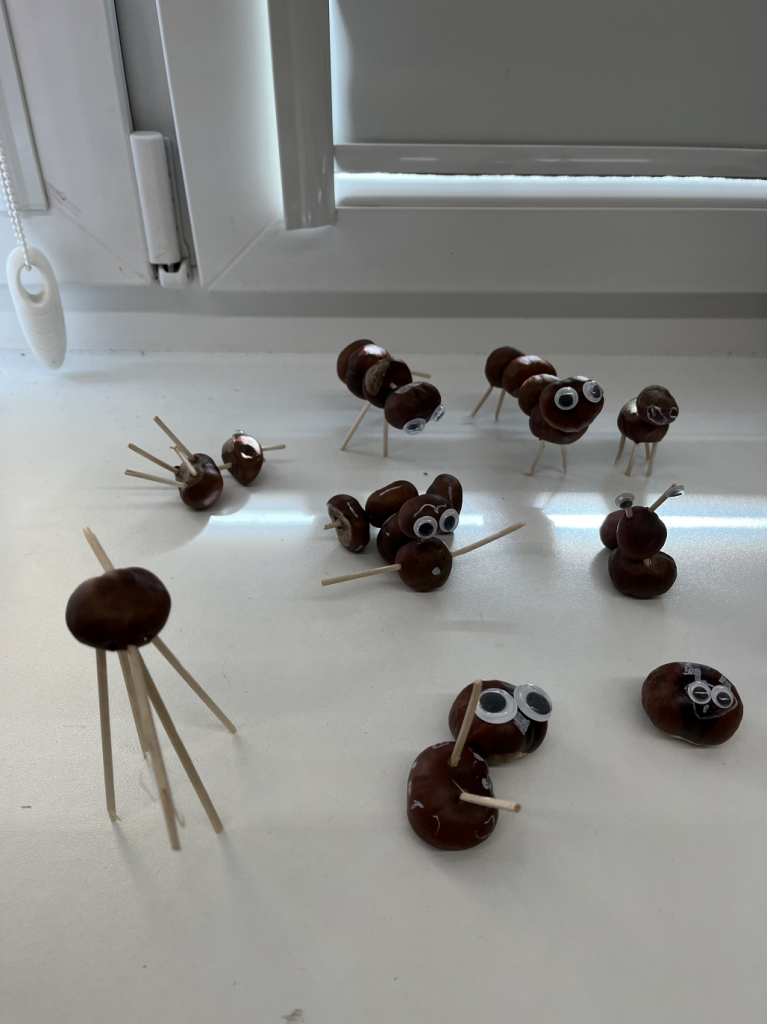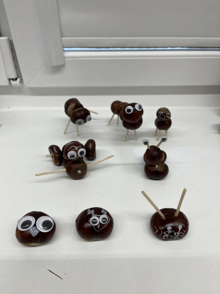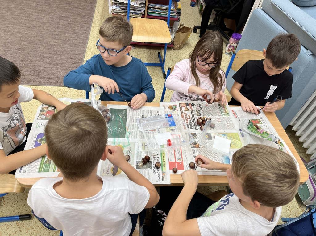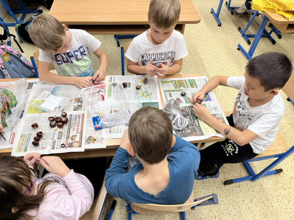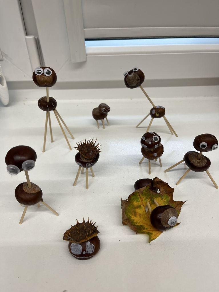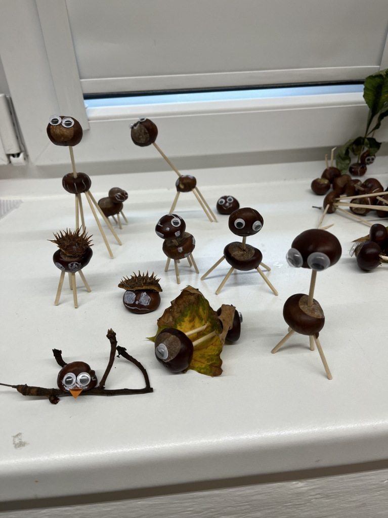 Říjen byl v naší družině opravdu pestrý a plný podzimních radovánek. Využili jsme krásné dary přírody a s chutí se pustili do tvoření. Děti vyráběly postavičky a zvířátka z kaštanů, listů a dalších přírodnin. Každý výtvor byl originální a ukázal, jak velkou fantazii a šikovné ruce naši malí tvůrci mají.