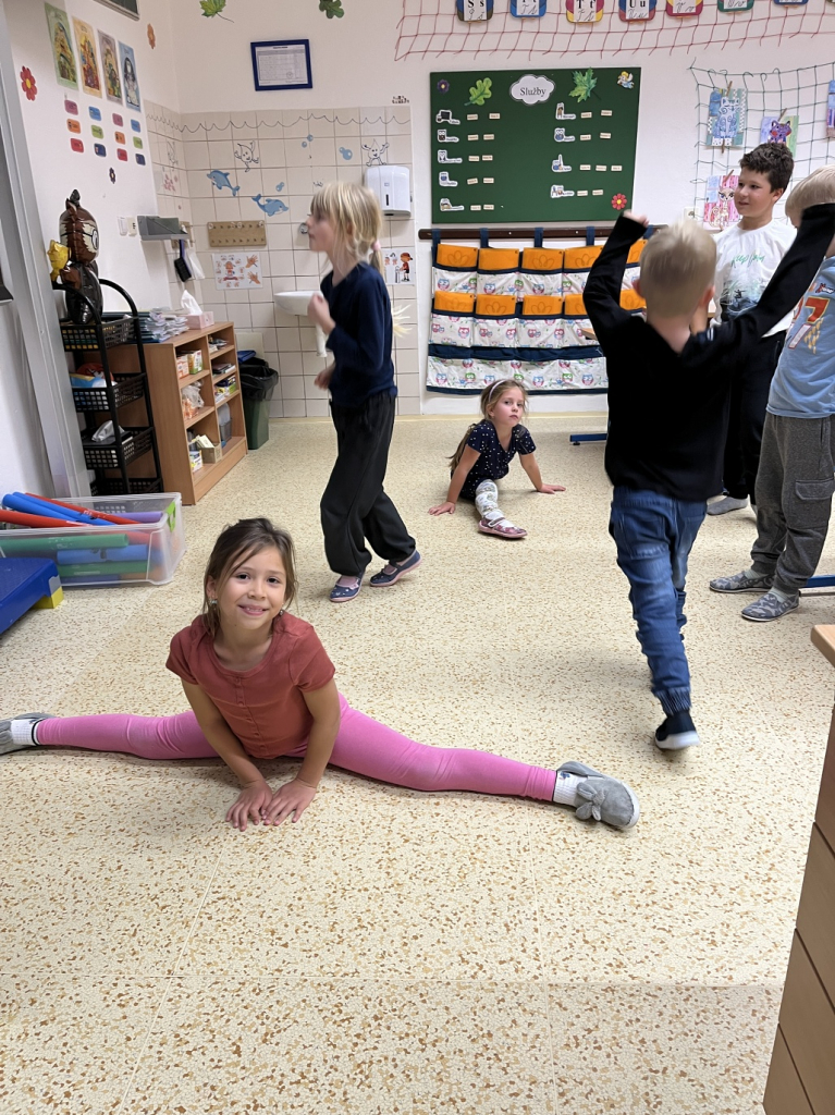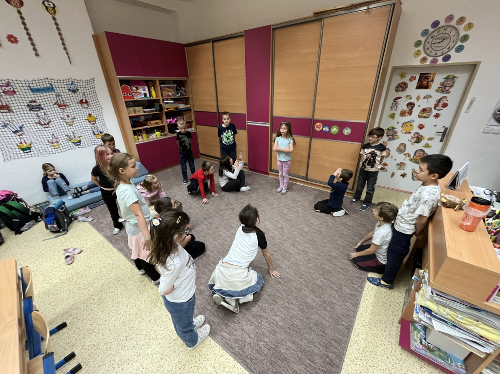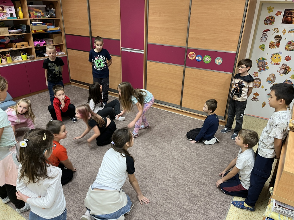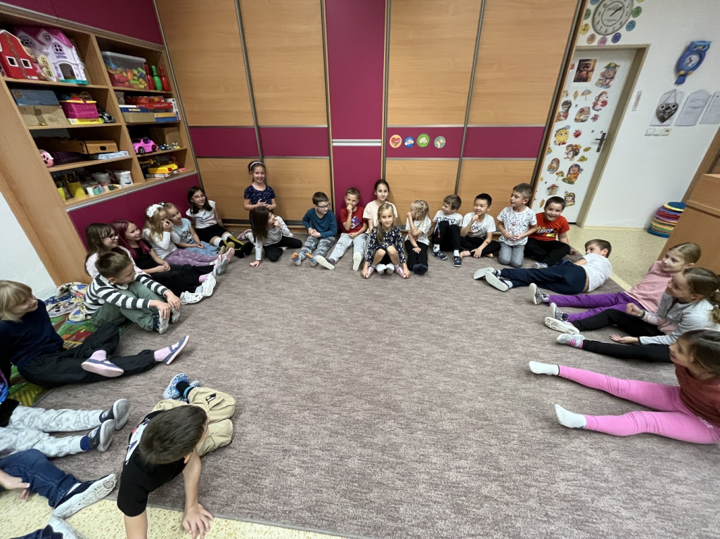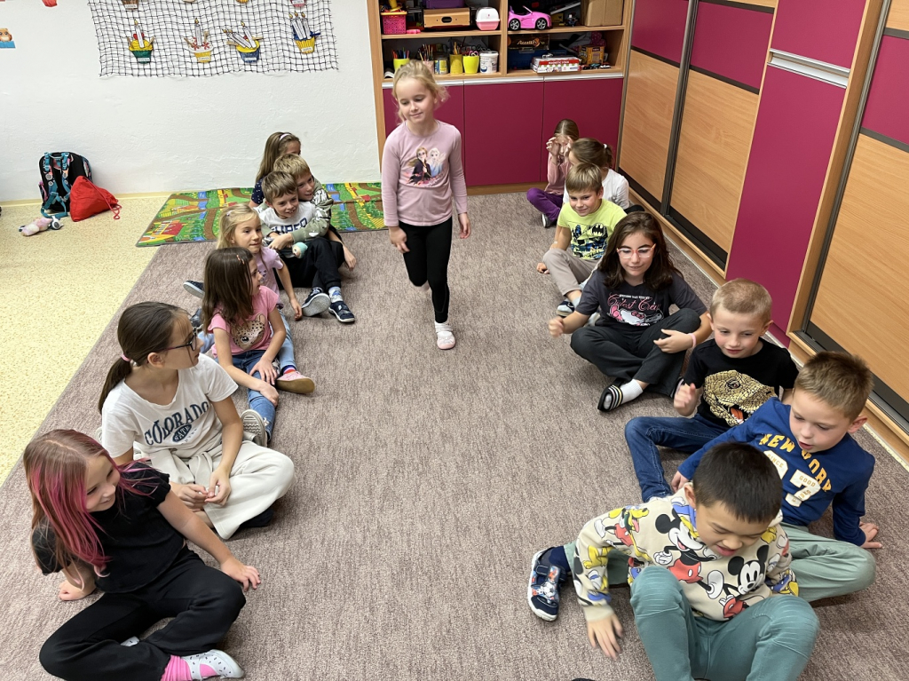 Nechyběly ani různé hry, které jsme si společně užili. Vrcholem měsíce byla podzimní stezka, kde děti plnily úkoly, poznávaly přírodu a sbíraly body za splněné výzvy. Všichni si to moc užili a odměnou jim byl nejen malý dárek, ale hlavně radost z pohybu a spolupráce.