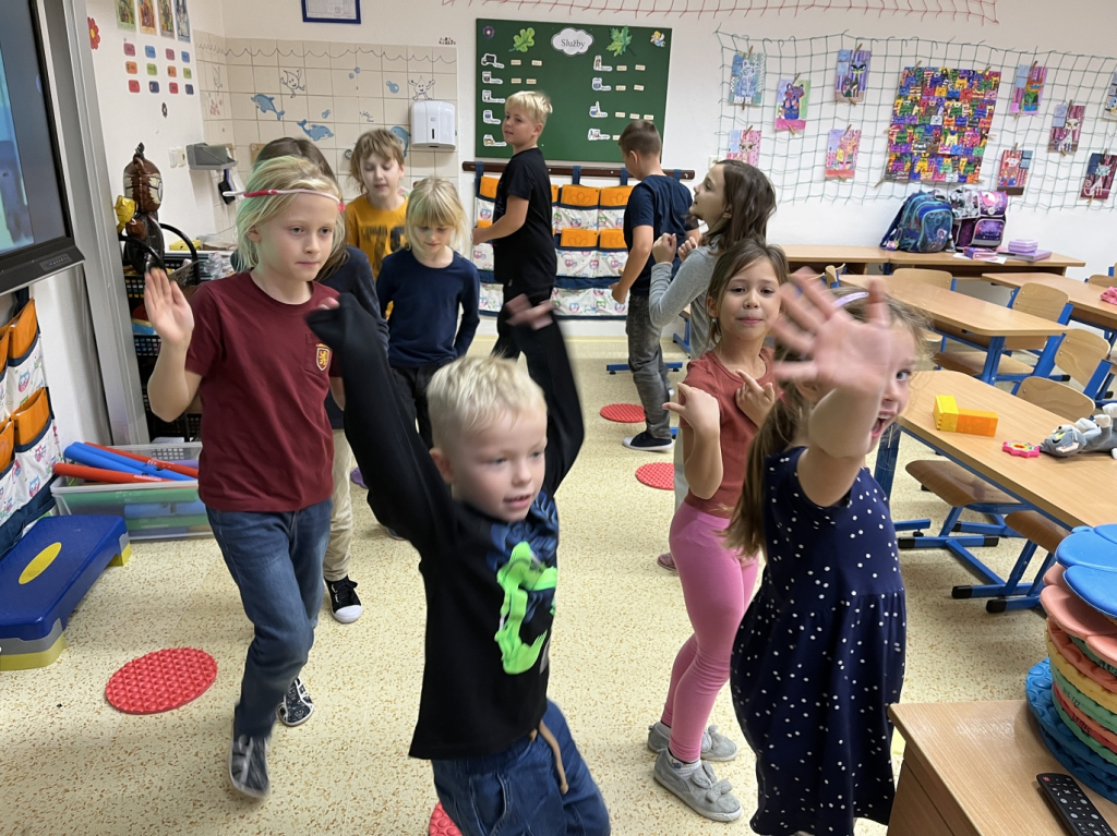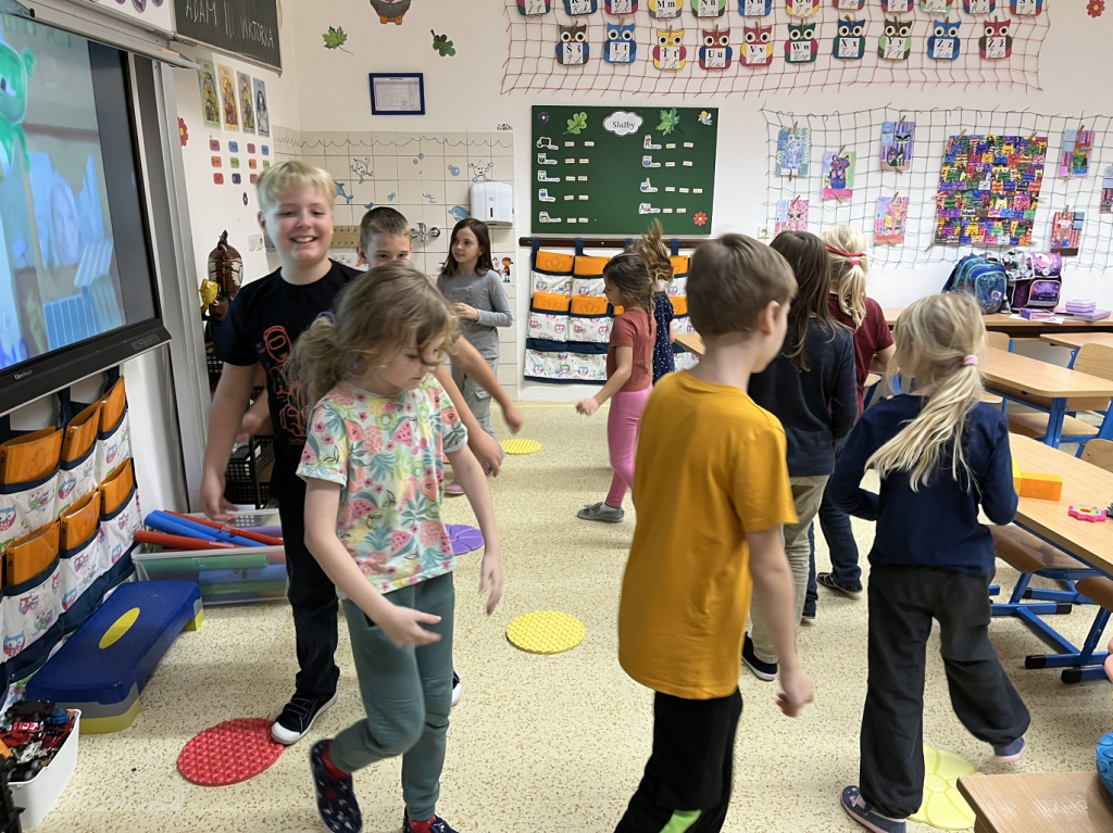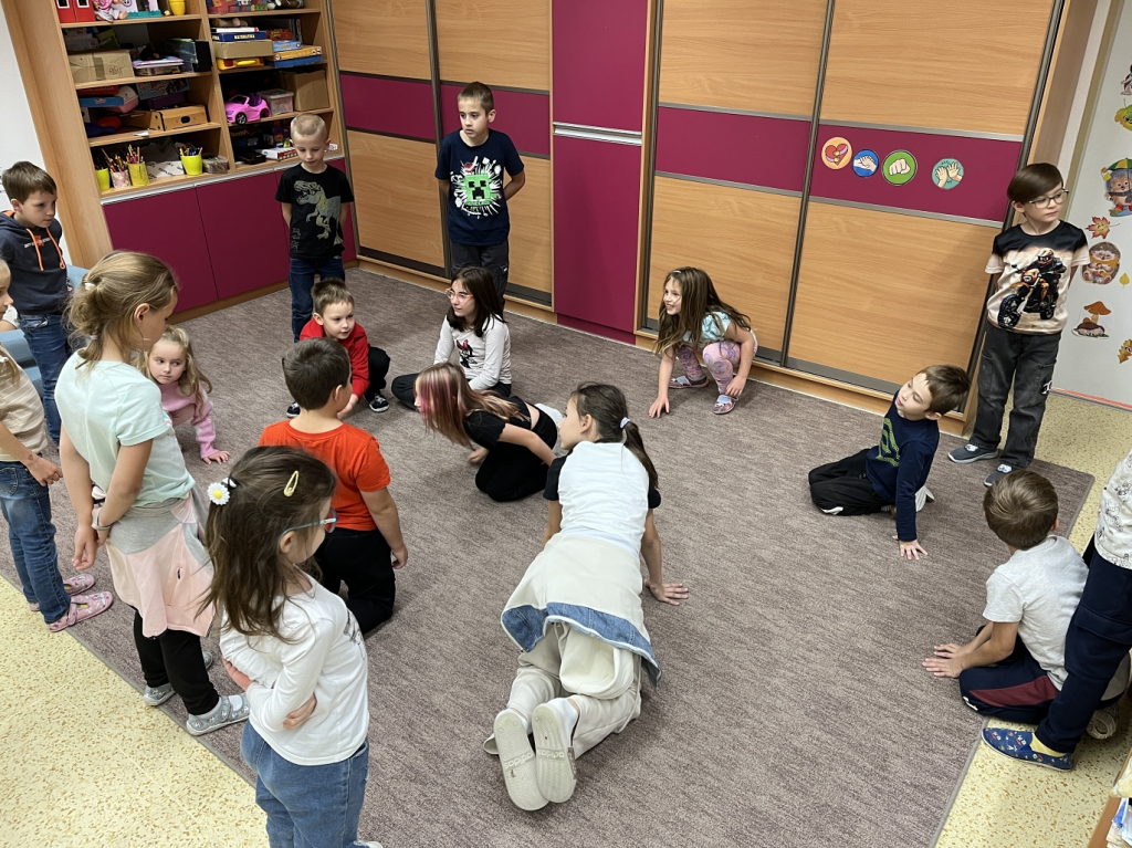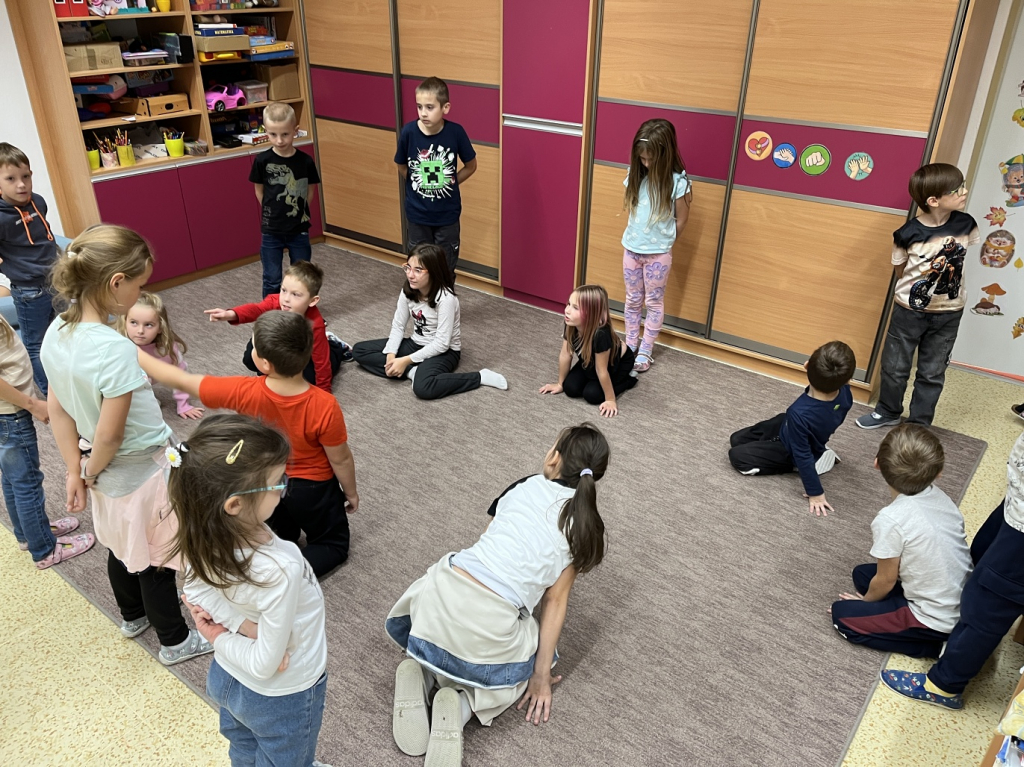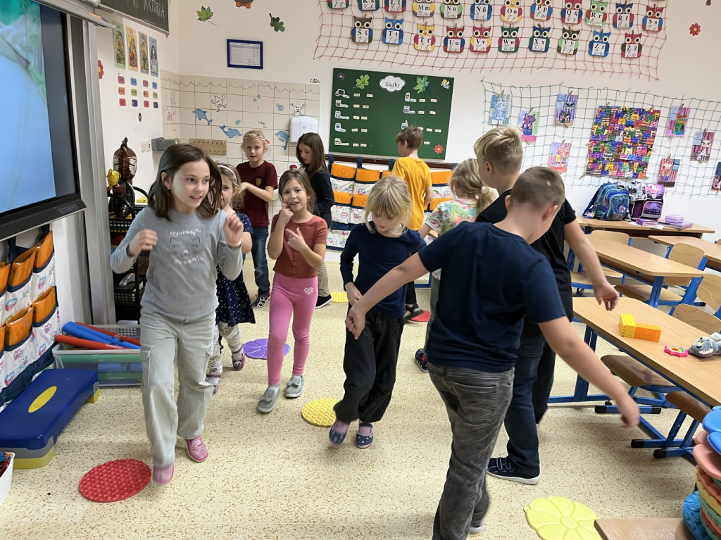 Nechyběly ani různé hry, které jsme si společně užili. Vrcholem měsíce byla podzimní stezka, kde děti plnily úkoly, poznávaly přírodu a sbíraly body za splněné výzvy. Všichni si to moc užili a odměnou jim byl nejen malý dárek, ale hlavně radost z pohybu a spolupráce.