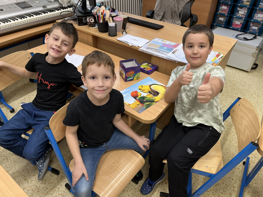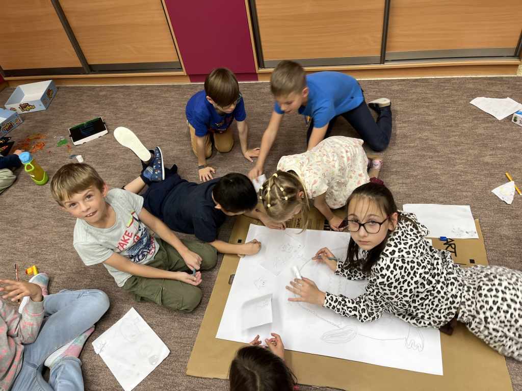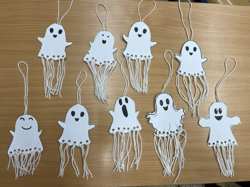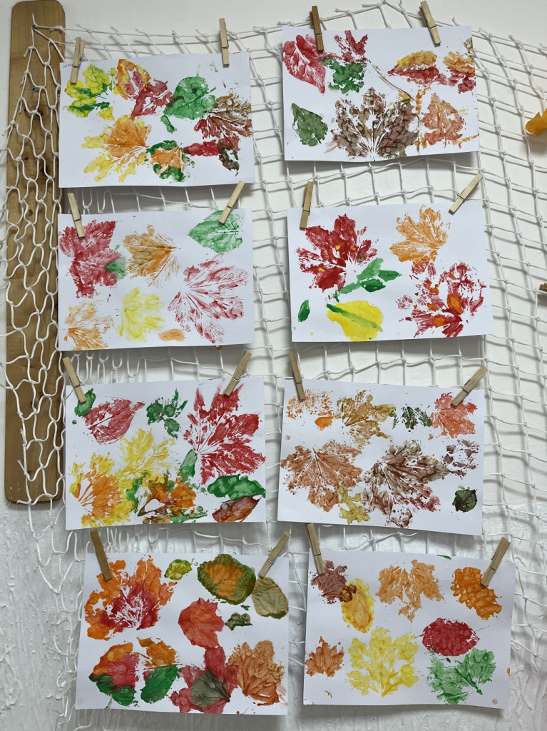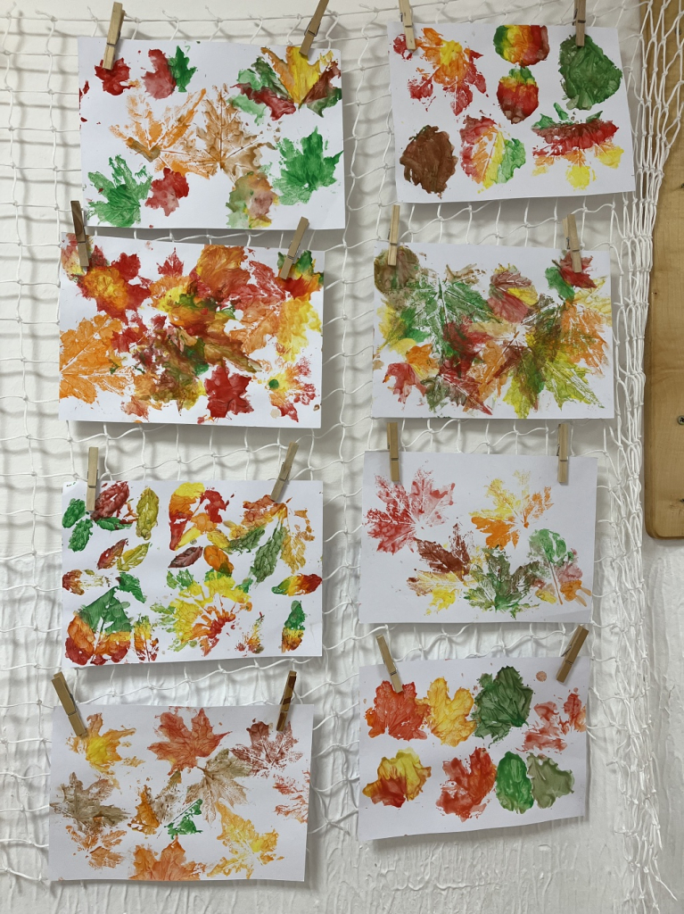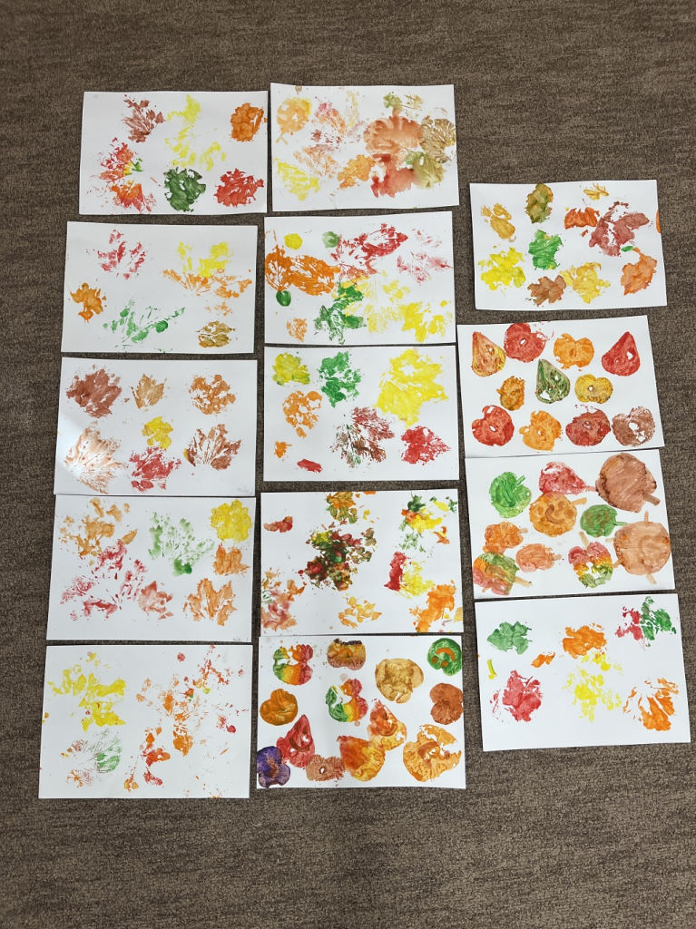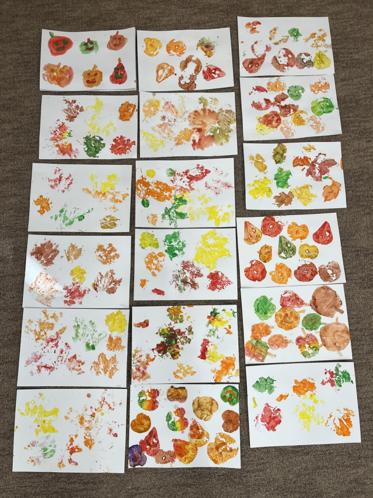 Výtvarné aktivity nás provázely celým měsícem. Vytvářeli jsme otisky listů, jablíček i hrušek na papír a vznikaly tak krásné a barevné obrázky, které nyní zdobí naši družinu. V rámci příprav na Halloween jsme vyráběli veselé i strašidelné duchy a další tematické dekorace, které navodily tu správnou podzimní atmosféru.
