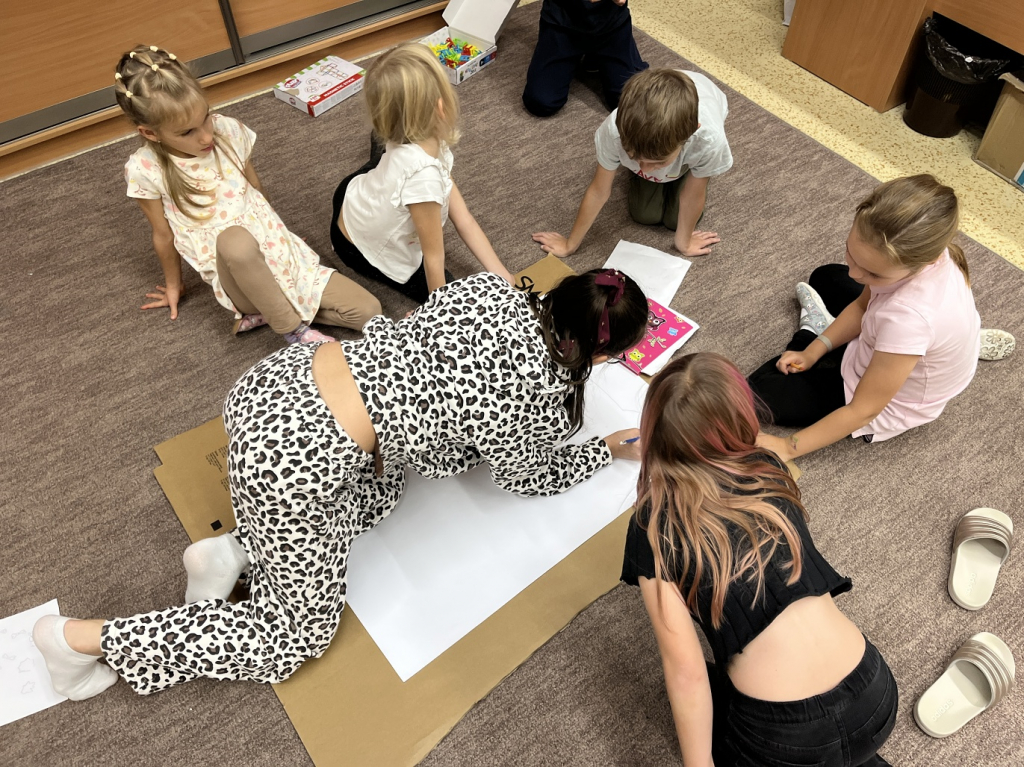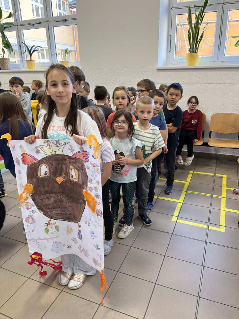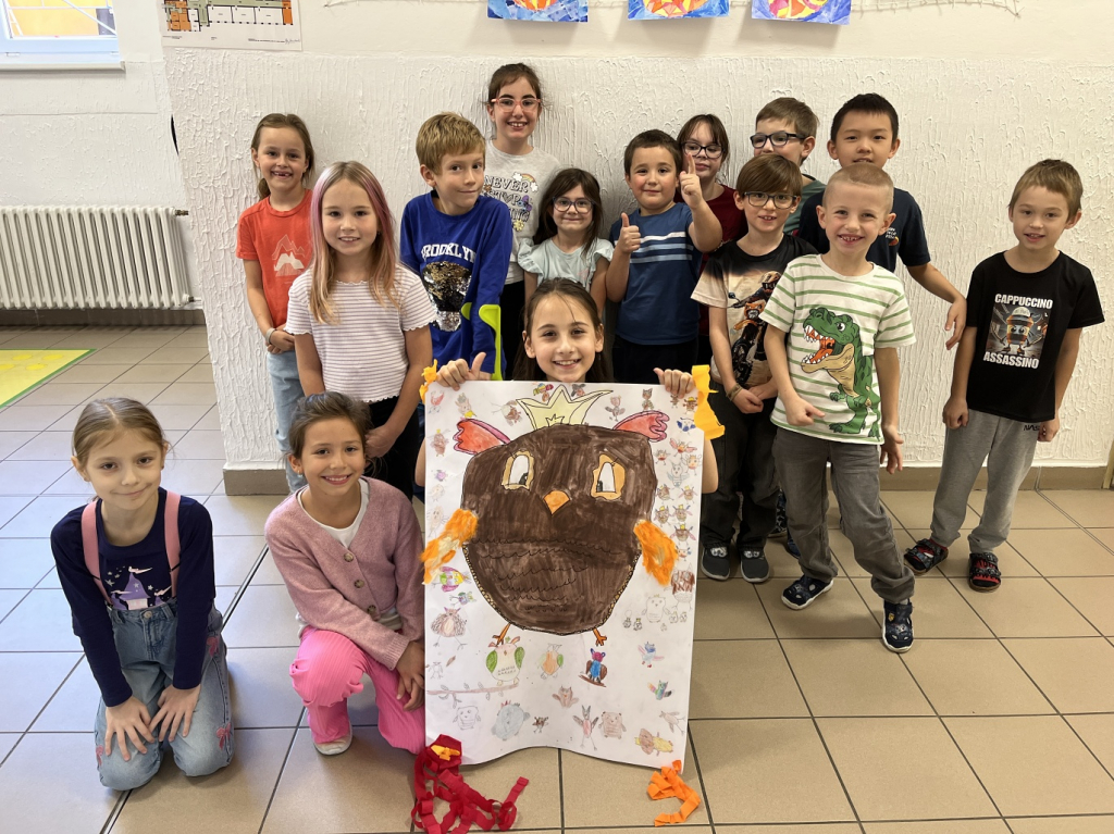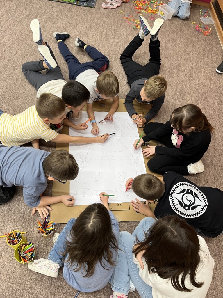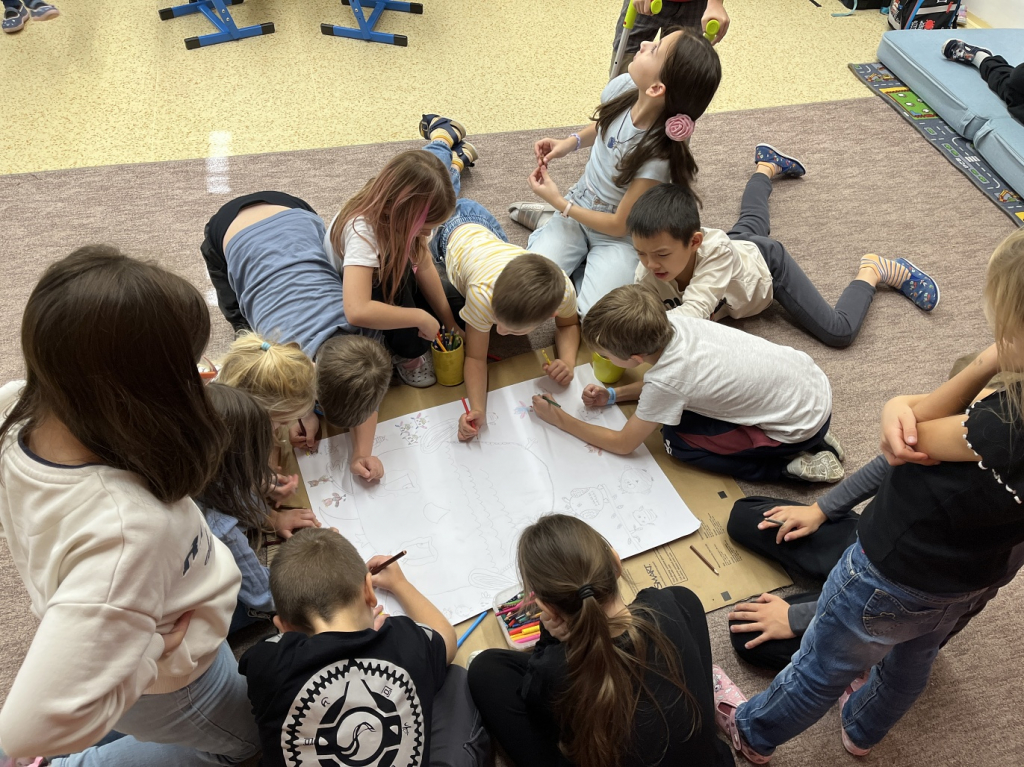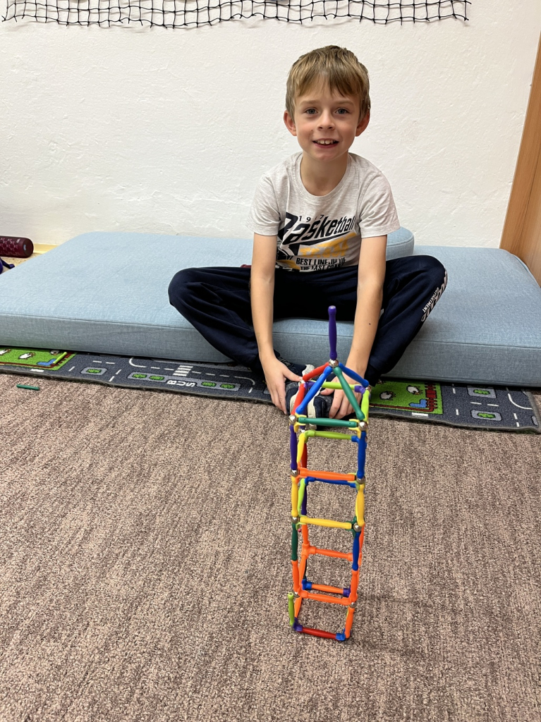 Jedním z největších projektů byla společná výroba velkého draka, který symbolizuje naši družinu. Každé dítě na něj nakreslilo svou malou sovičku – symbol moudrosti a přátelství. Uprostřed draka se pak vyjímá velká sova, která nás všechny spojuje. Tento krásný výtvor nyní zdobí naši nástěnku a připomíná nám, jak jsme jako tým silní, když spolupracujeme.
