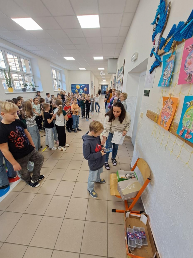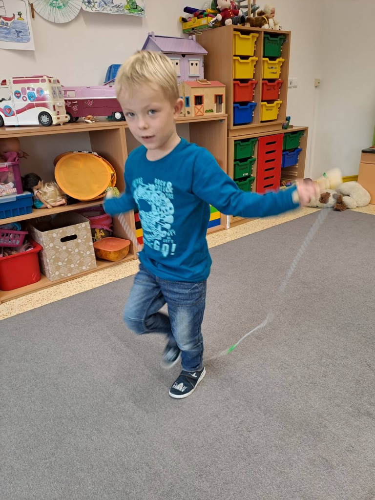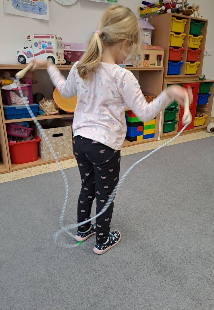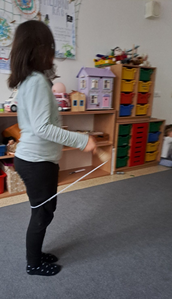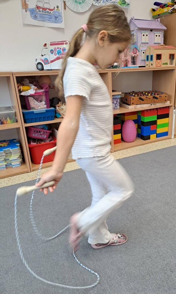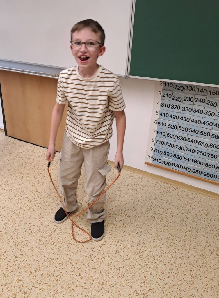 V listopadu se ve školní družině uskutečnila celodružinová soutěž v přeskoku přes švihadlo, která měla za cíl podpořit děti v pohybu a ukázat jim, že pravidelným tréninkem lze dosáhnout viditelných výsledků. Žáci měli po celý týden možnost zlepšovat své výkony, navzájem se povzbuzovali a soutěž probíhala v přátelské atmosféře. Na závěr byly vyhodnoceny výsledky a v každém ročníku od první do páté třídy byli oceněni tři nejlepší skokani. Soutěž přinesla dětem nejen radost z pohybu a drobné odměny, ale také motivaci pokračovat v aktivním životním stylu. Celá akce se stala příjemným zpestřením listopadových dnů a posílila kolektivního ducha v naší družině.