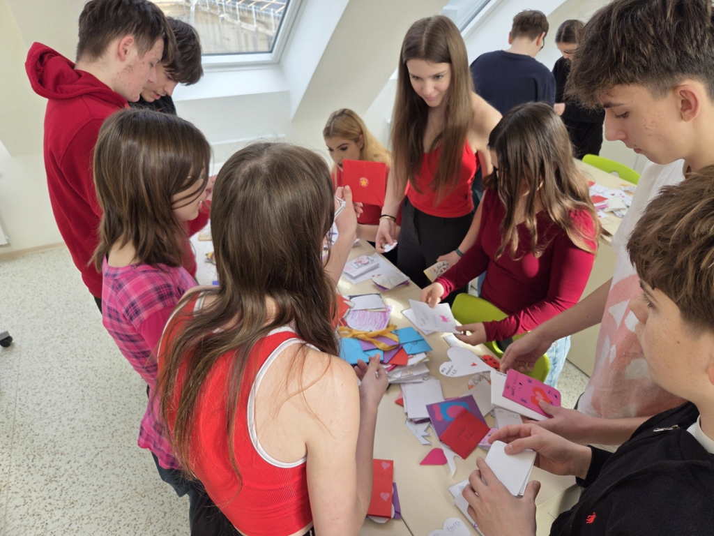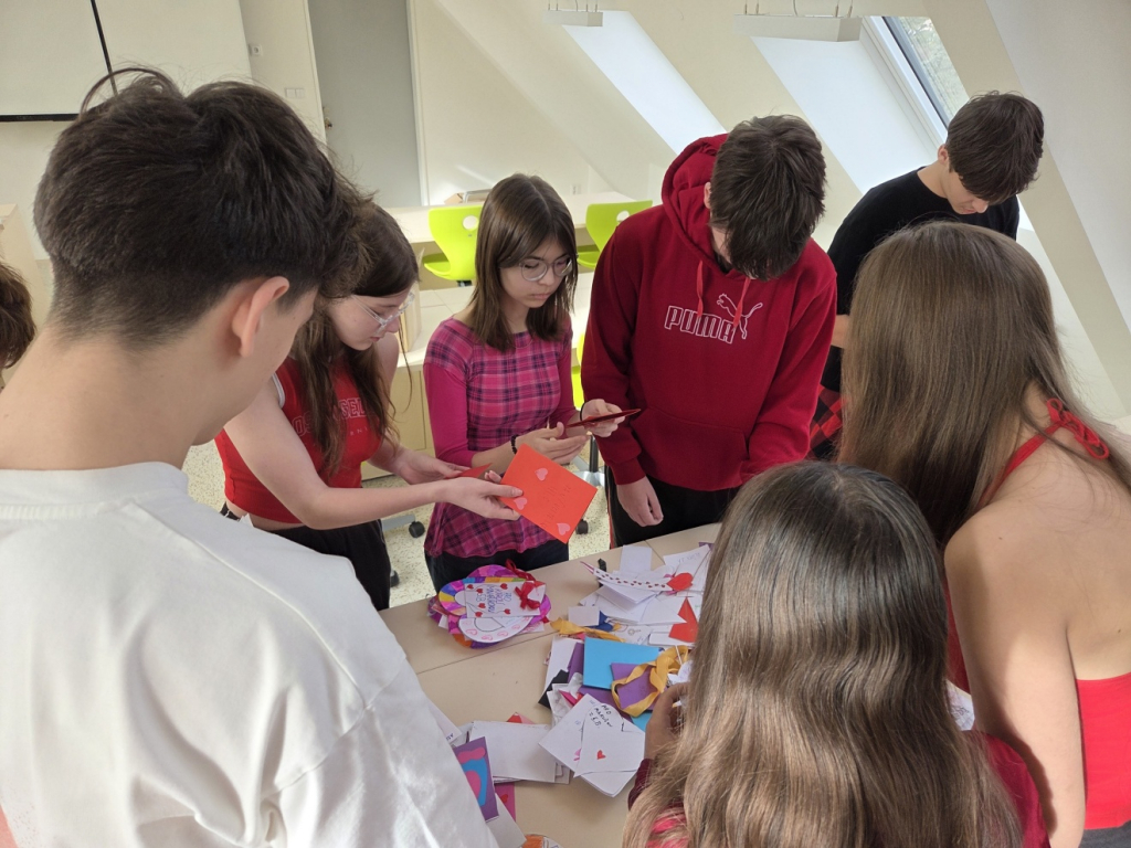Všechna přáníčka, která musela být označena správným jménem a třídou, se mohla vhazovat až do pátku 13. února do 10,00, kdy je část žáků třídy 9. A nejprve roztřídila podle jednotlivých tříd a poté doručovala mezi žáky a pedagogy naší školy.