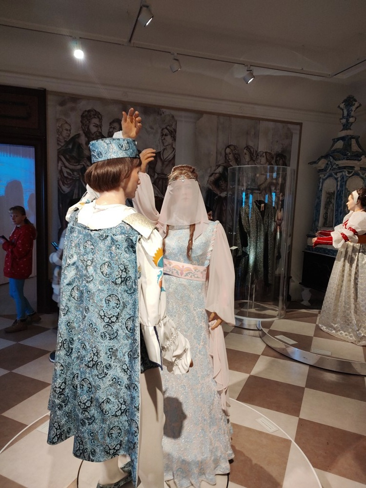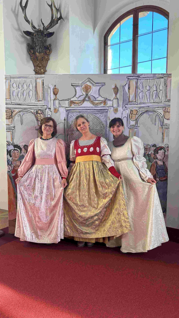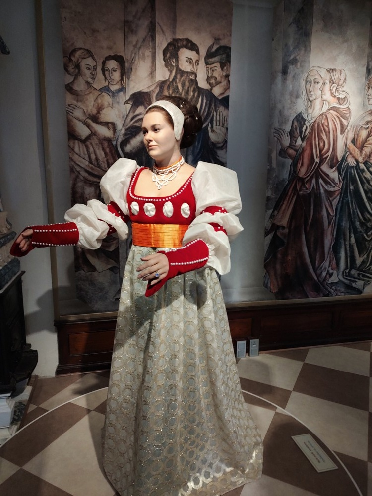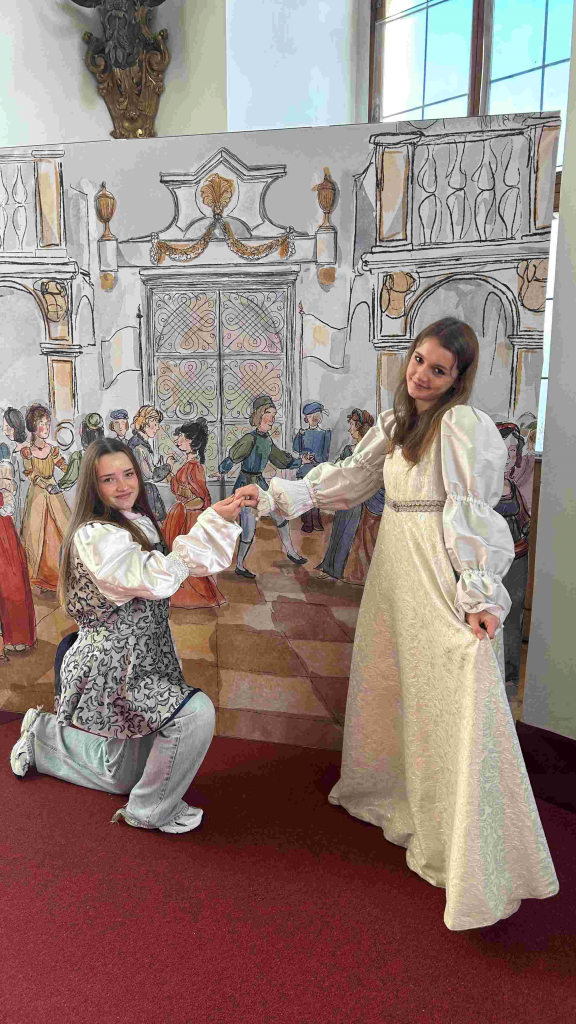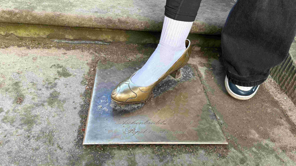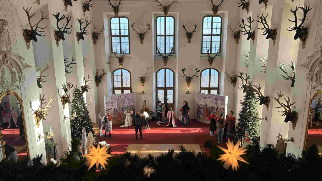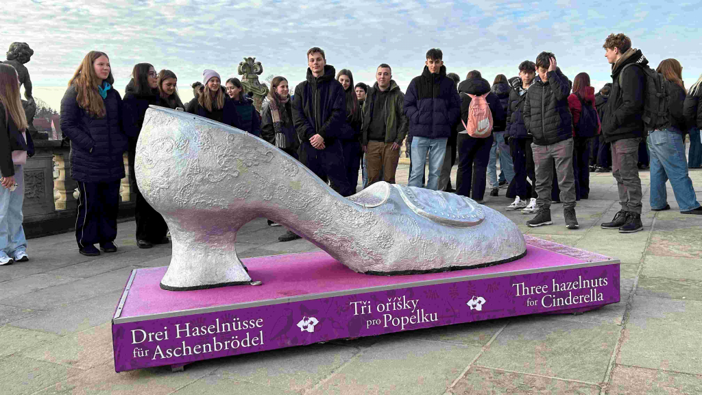 Nejprve nás tedy čekal Moritzburg, v jehož kulisách se natáčela známá česká pohádka Tři oříšky pro Popelku, bez které si dnes už jen málokdo z nás umí Vánoce představit. V interiéru zámku se tradičně koná zimní výstava věnovaná natáčení této pohádky: ve vánočně vyzdobených místnostech jsme mohli vidět postavy a herce z pohádky, kostýmy Theodora Pištěka, jejichž repliky jsme si také mohli vyzkoušet (kdo by nechtěl být aspoň na okamžik princeznou, že?), z interaktivních prvků jsme se dozvěděli o zajímavostech z natáčení, také jsme si mohli zahrát různé hry a získat tři kouzelné oříšky. Na schodech k zámku si zájemci zkusili obout Popelčin střevíček, vyfotili jsme se a pak už jsme zamířili do Drážďan.