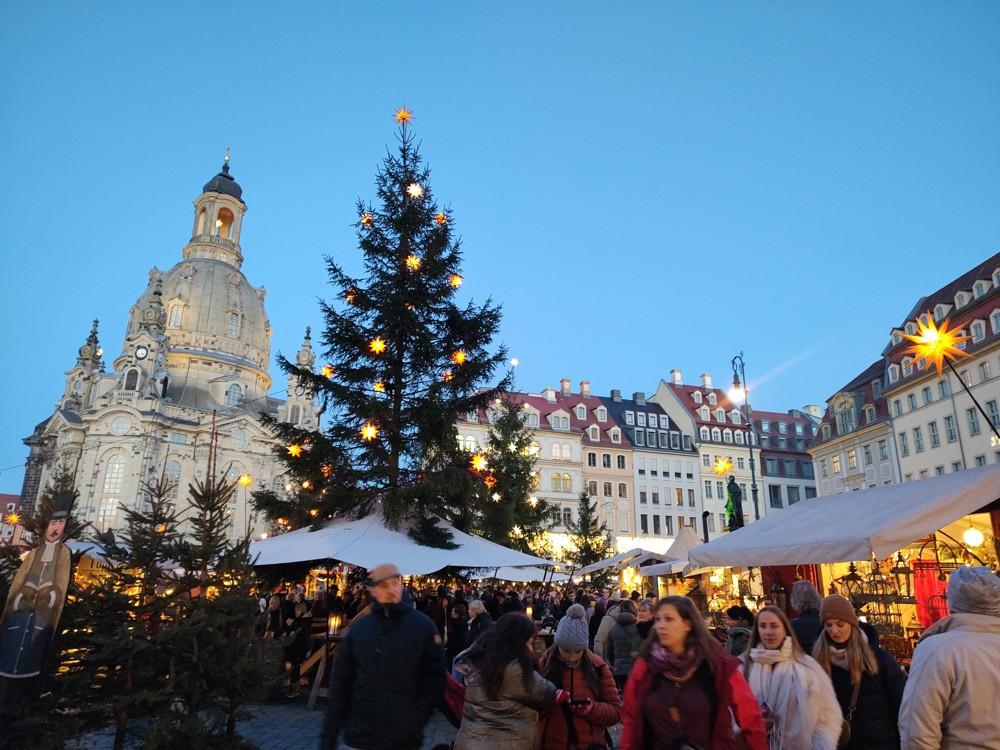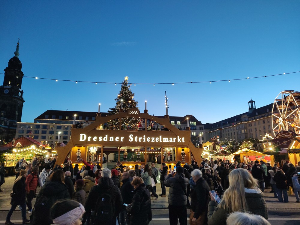 V prosluněném a vánočně naladěném centru Drážďan jsme se po prohlídce města vydali na vánoční trhy, kterých je v Dráždanech spousta: středověký s kostýmovanými prodejci v řemeslných stáncích, malý komorní Neumarkt nebo slavný Altmartkt (Striezelmarkt) s tradicí dlouhou téměř pět století. Samozřejmě jsme museli ochutnat místní speciality – proslulou drážďanskou štolu či bratwurst v chlebu.