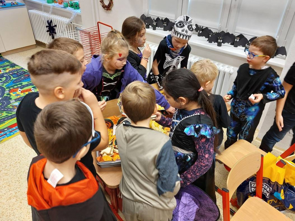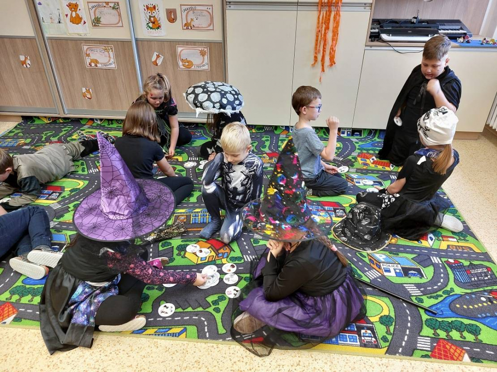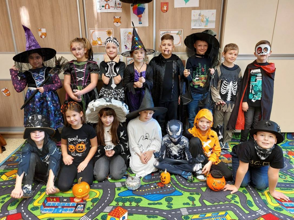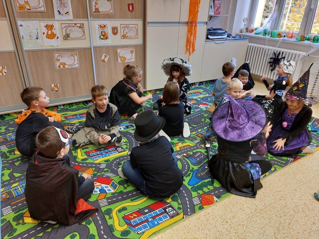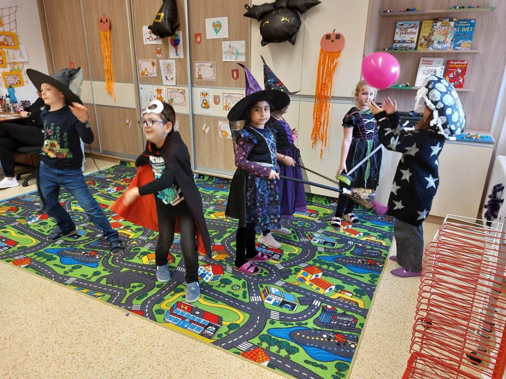 Konec října patří již tradičně svátku Halloween. Všechny aktivity jsme tedy zaměřili na toto téma. Veselou atmosféru doplňovaly i strašidelné kostýmy a masky dětí. Na závěrečné halloweenské párty nechybělo ani občerstvení a hudba.