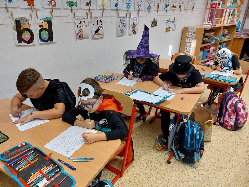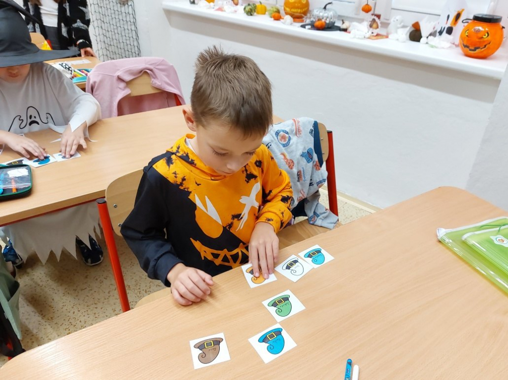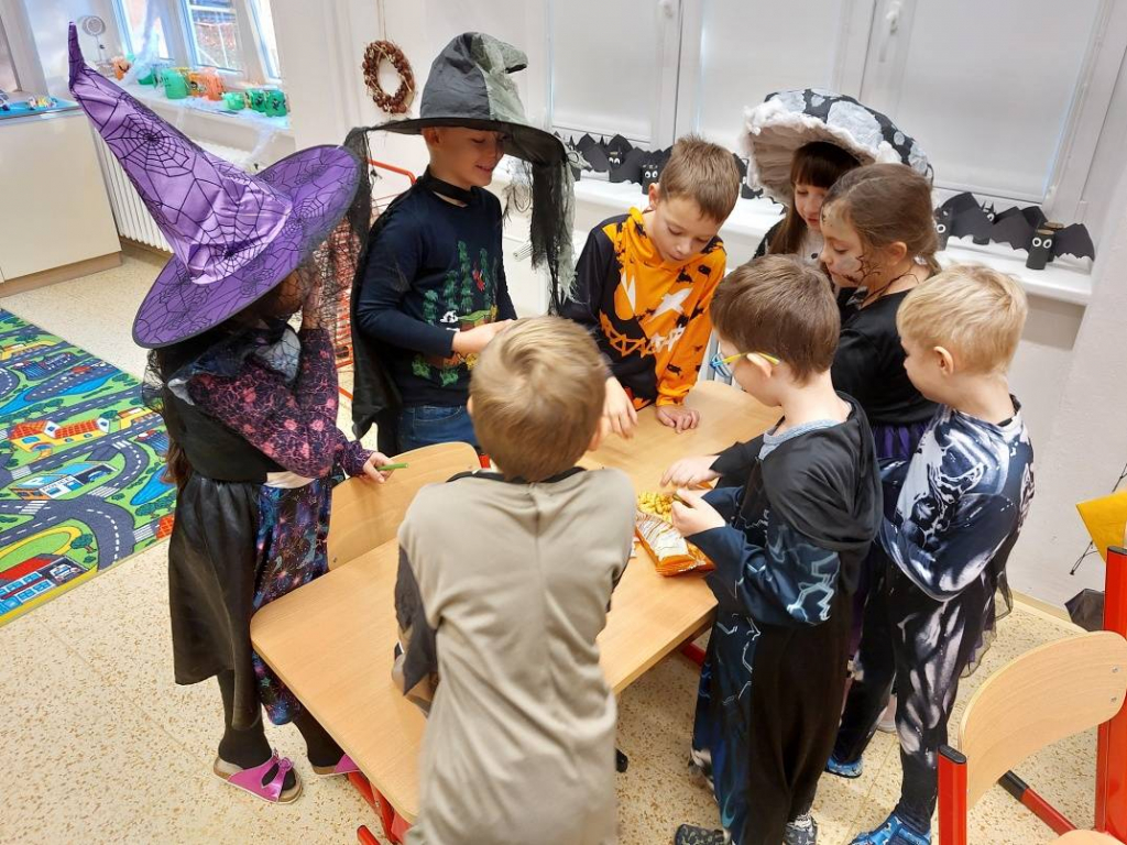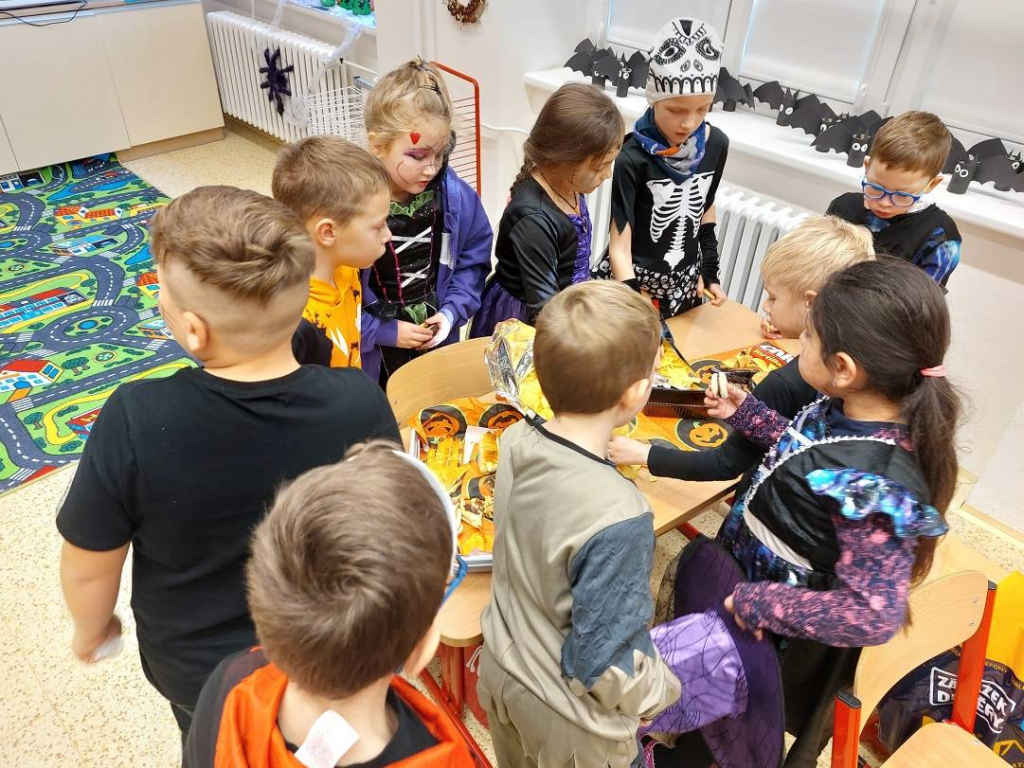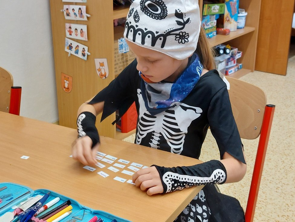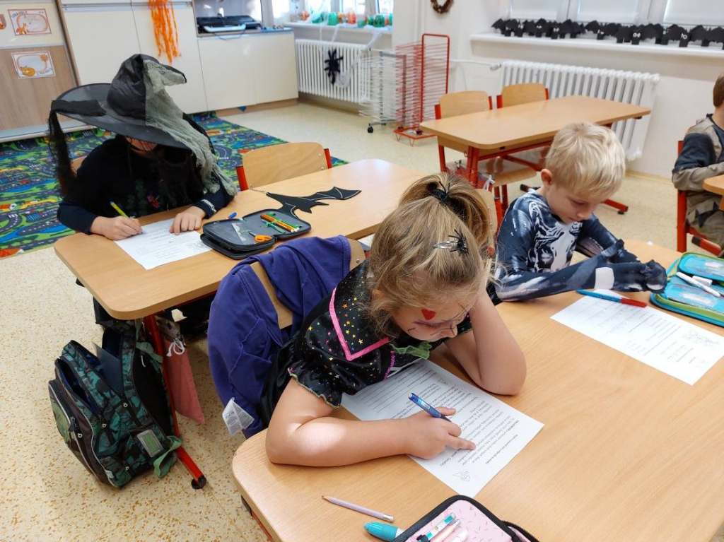 Konec října patří již tradičně svátku Halloween. Všechny aktivity jsme tedy zaměřili na toto téma. Veselou atmosféru doplňovaly i strašidelné kostýmy a masky dětí. Na závěrečné halloweenské párty nechybělo ani občerstvení a hudba.